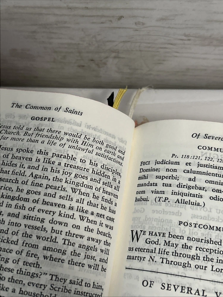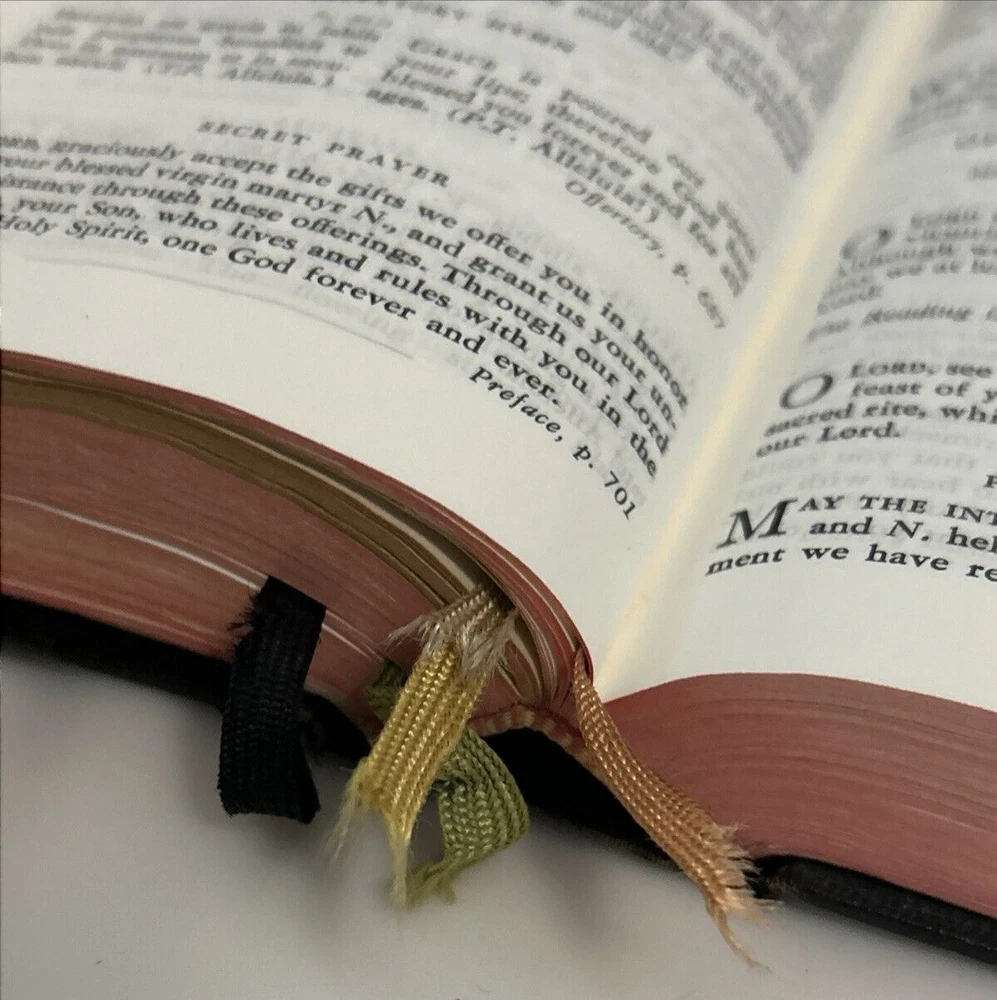 acceptable condition. Inside text is nice. One side of binding is ripped/torn. Bookmarks are aged and unattached to binding. Please see all photos. Ships fast from Florida....