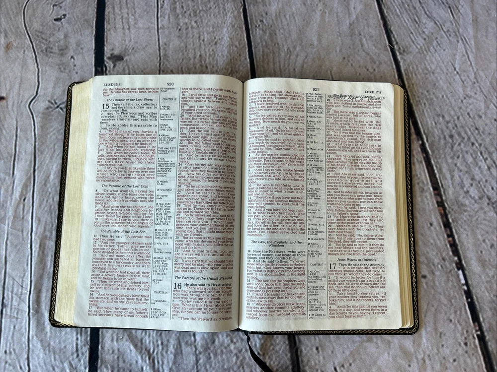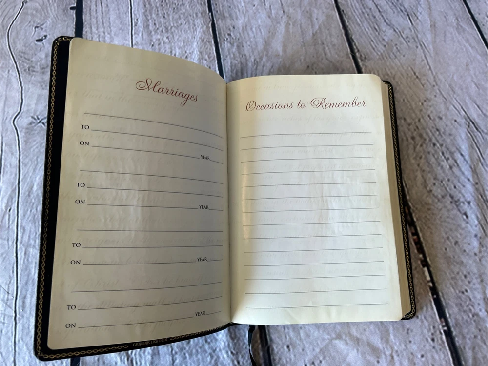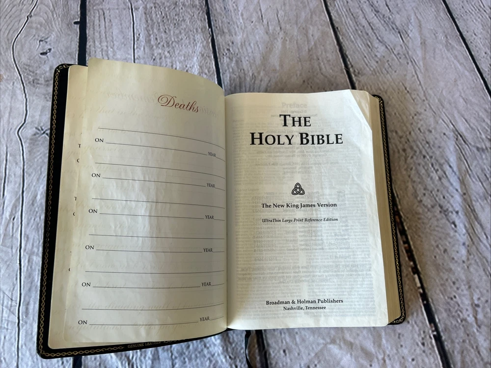 Vintage Holman Holy Bible Genuine Black Leather 1996 Large Print Ultra Thin. No writing in the front and very minimal writing or markings throughout....