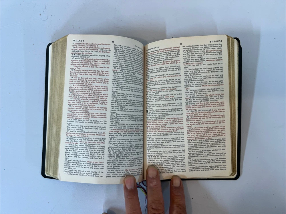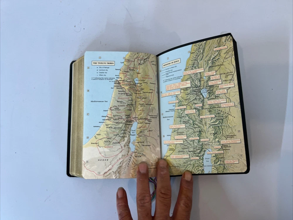 This vintage Holy Bible from 1989 is a special edition in red letter format, featuring the King James Version dictionary and study guide. With a faux leather bound and 595 pages, this Bible is a valuable addition to any collection. The words of Jesus are highlighted in red, making it a great resource for anyone interested in religious and spiritual topics. The Bible is in English and was published by Thomas Nelson in Chicago. It is intended for young adults, ages 9-12, and adults, with a focus on the literary movement of religion. The Bible is not personalized, inscribed, or signed, and is a limited/special edition. It is a great gift for anyone interested in religious and spiritual topics, and is sure to be a valuable addition to any collection.