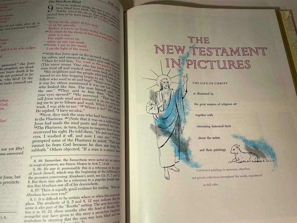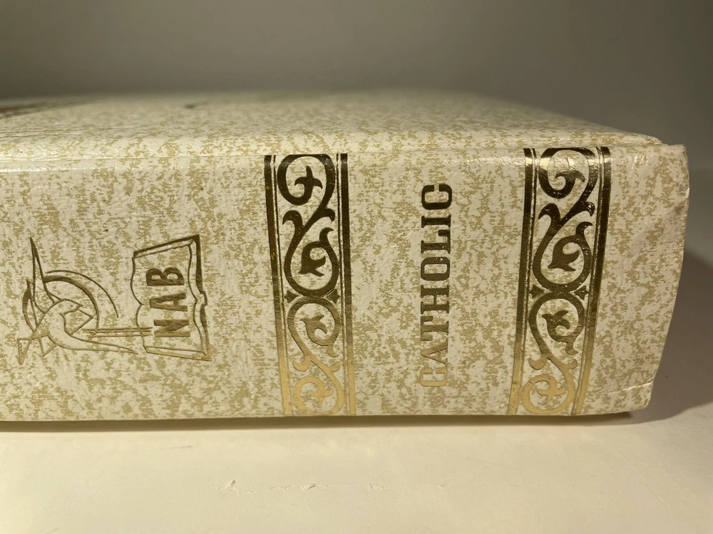 This vintage Catholic NAB Bible is a beautiful find! The leather cover has a classic, well-loved feel with only slight wear, and the pages are clean with no tears or markings. Perfect for anyone wanting a timeless, sturdy Bible—great condition for its age. Shipping was smooth with Media Mail. Highly recommend!