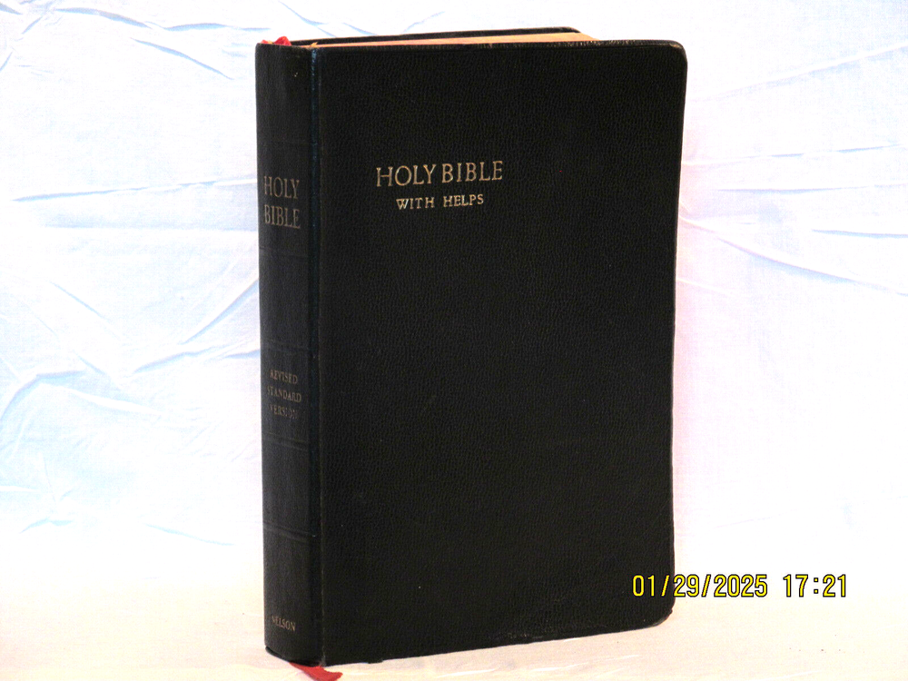 You are viewing my Vintage "The Holy Bible - With Helps" Revised Standard Version. (circa 1952). It is in very good condition, especially considering its age. Binding is tight; very little, if any, yellowing. I could find no markings in it - anywhere. Soft covers - made to look like leather, but it is not. No tears or folded pages. Please ask questions before bidding/buying. Shipping: Within three business days of cleared payment. Returns: No returns, unless not as described. Buyer pays for return shipment. Payment: Within three days of purchase. No international shipping. Only continental U.S.A.