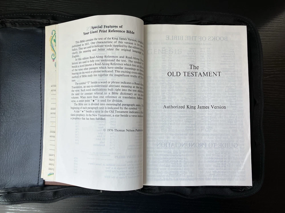 Size approximations: 9 1/4 inches tall x 6 3/8 inches wide x 2 inches deep . Weight approximation: 3 pounds, 6.4 ounces. Condition: the case has signs of age and use as pictured; the Bible is in very good condition vintage as pictured with minor imperfections from age and use as pictured. In overall good condition for its' age. In consideration of any purchase it is recommended that the zoom tool be used to thoroughly inspect all the photos. Sold as preowned and as pictured. This listing is for a Vintage Holy Bible, Giant Print Reference Edition, in Protective Faux Leather Case, 1976 as pictured. Published by Thomas Nelson Publishers, USA. The pictures are part of the description, what you see is what you get. Since we are not experts in authenticating this listing by any means, please inspect the pictures and be the judge. Shipping: for domestic orders only - if multiple items are purchased in one day we will gladly combine the shipping to reduce cost when feasible. Combined shipping is not available for international orders. Note we will only send the item to the original buyer and address and not to a third party. Participation in eBay’s Global Shipping Program is subject to change. The seller reserves the right to cancel any international order that does not meet the terms and conditions of eBay’s Global Shipping Program policies. Payment: buyer agrees to pay within two days. Applicable state taxes will be applied to your invoice if you are ordering from a state that legislates state taxes be collected by online platforms. Additionally, any applicable fees, taxes, customs charges, insurance, etc, as determined by eBay’s Global Shipping Program will be the responsibility of the buyer as per eBay’s policies. Return/ refund policy: no returns, no partial refunding. Exceptions to “no return” policy: 1) item description does not substantially match the item. If a return request is accepted, we will refund the amount of item(s) that was paid (ie not shipping) once the item is returned. Buyer must provide tracking number and pay return shipping. Fees may apply. 2) item is broken/ damaged in transit. Items damaged during transit will be refunded upon timely notification (maximum 7 days from tracked delivery of the item) and receipt of photographic evidence of damage, including photos of the packing. Buyer agrees to keep the damaged item and packing for at least 14 days and present it to a local carrier’s office if requested to aid in the processing of an insurance claim. Fees may apply. Unless specifically noted in a listing, any base, plate stand or teacup stand is for display purposes only and will not be shipped with the item. More listings are added weekly. Please visit our store on eBay, https://www.ebay.com/str/MKantiquesArts Loc: DS