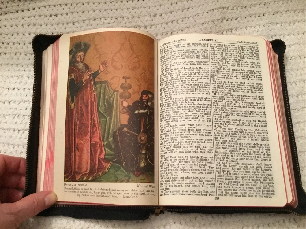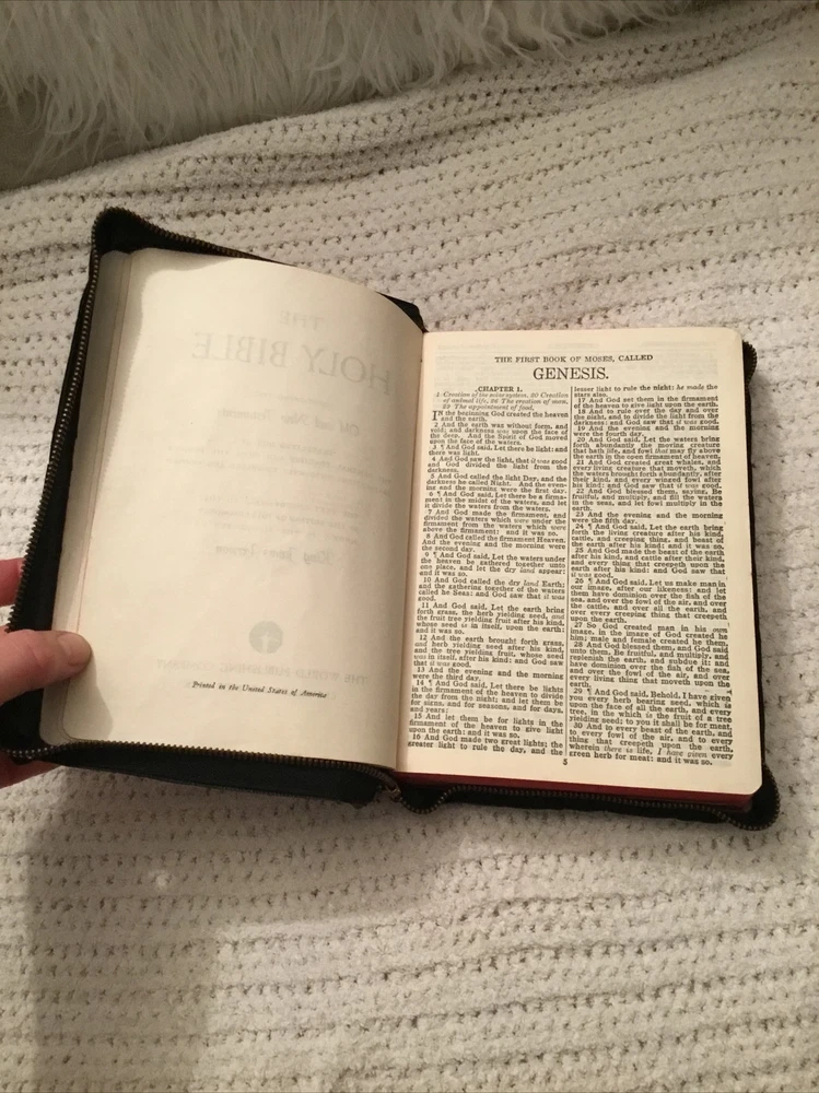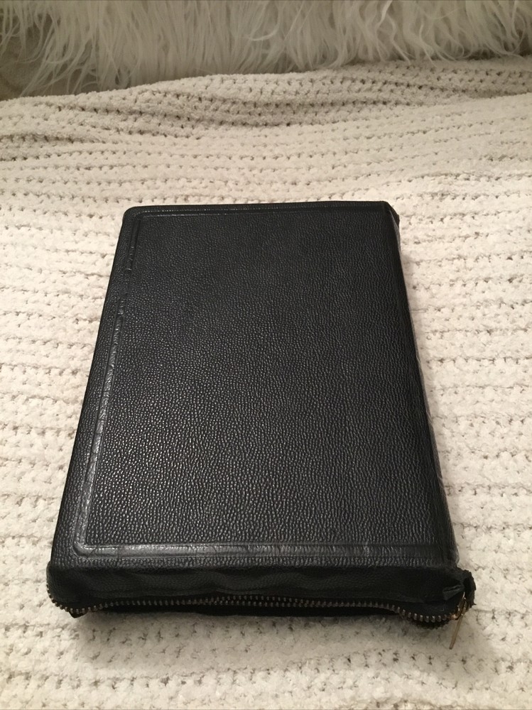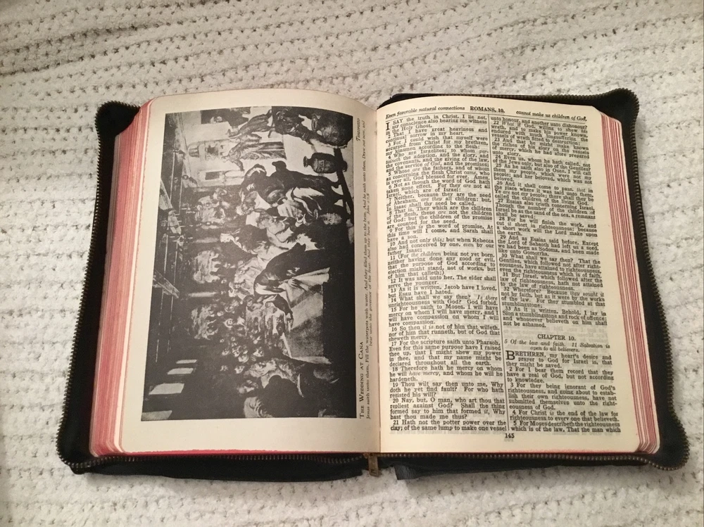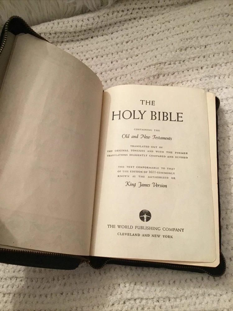 Vintage 1940s KJV Holy Bible Black Leather Zip-Up Illustrated by World Publishing