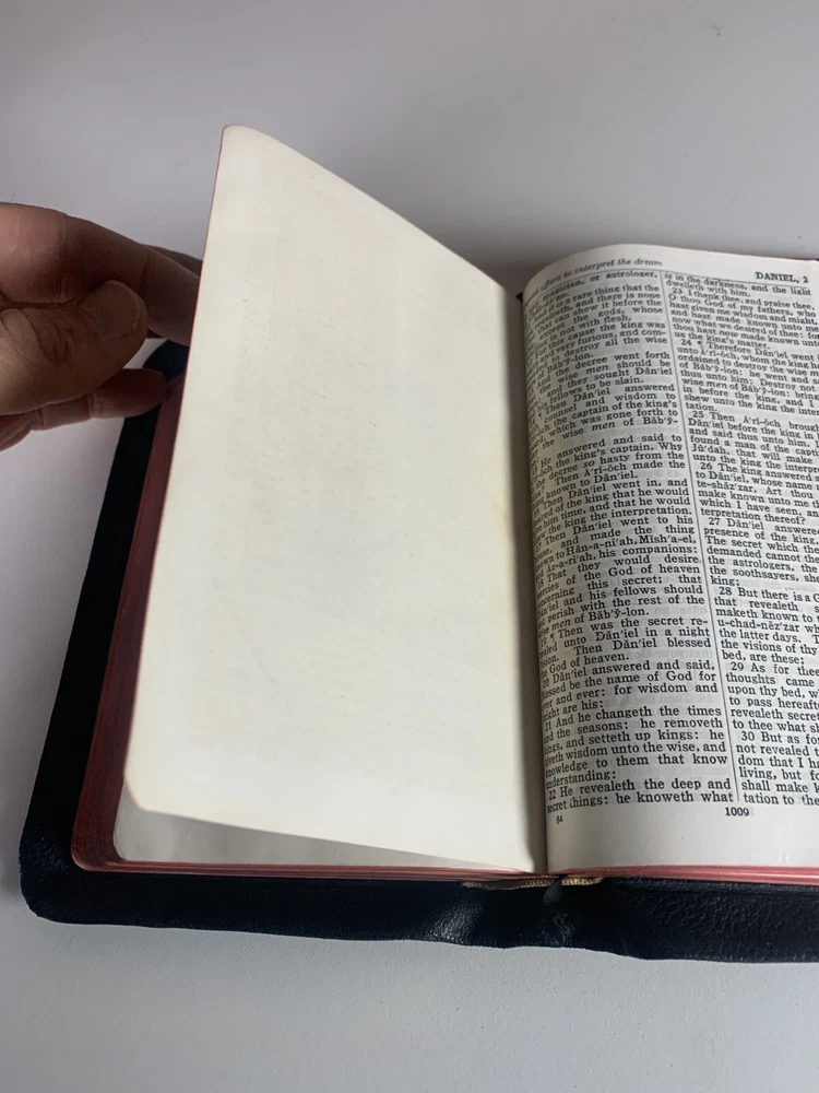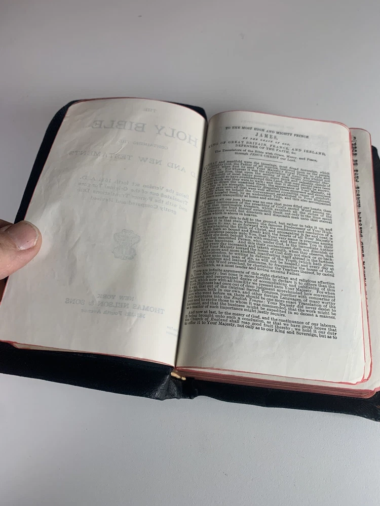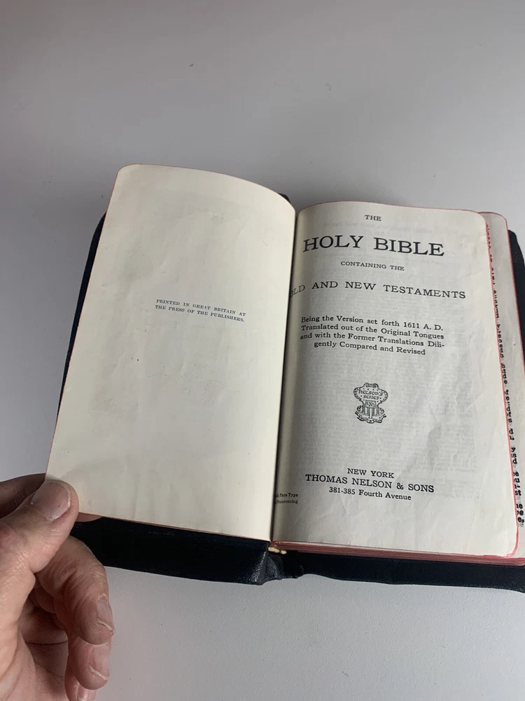 Thanks for looking. All sales final so please feel free to ask questions and request more photos. Guaranteed to arrive as photographed. Please see photos and use zoom function for cosmetics. No odor or damage. Sale includes only items in photographs—nothing more. PLEASE NOTE I SHIP ONLY ON TUESDAYS AND FRIDAYS. Sorry I wish I could ship every day but my real job gets in the way. Thanks for your understanding. Ships Via Media Mail DRG -AI Generated Description- This vintage Holy Bible is a treasured item for any collector or religious enthusiast. With its beautiful red text and leather binding, it is a stunning piece that can be admired for its aesthetic value alone. The Bible was published by Thomas Nelson & Son in the United States and features the King James Version, making it an important historical artifact. The Bible's subject matter is religion and spirituality, with a specific focus on the Bible as a character family. It is a rare and unique item, and its authenticity can be confirmed by its country/region of manufacture, the United States. This antique book is a true collector's item and is sure to be a valued addition to any collection.