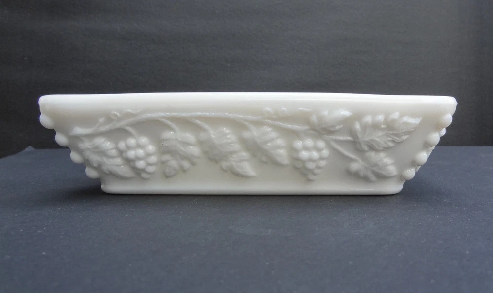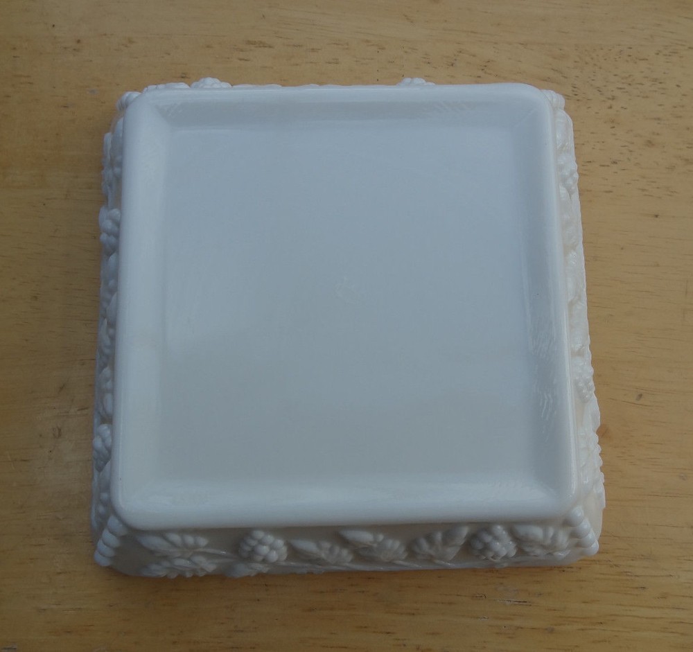 Available for purchase is a vintage large size Westmoreland Glass milk glass ash tray in beaded grape pattern. Ash tray measures 6 ½” by 6 ½” and marked with the Westmoreland mark. No chips or cracks, excellent condition. There is a faint tan mark inside of one side which I have tried to show in the picture. Please see pictures. Ash tray is from a smoke free home. Payment is required within 3 days. Thank you!