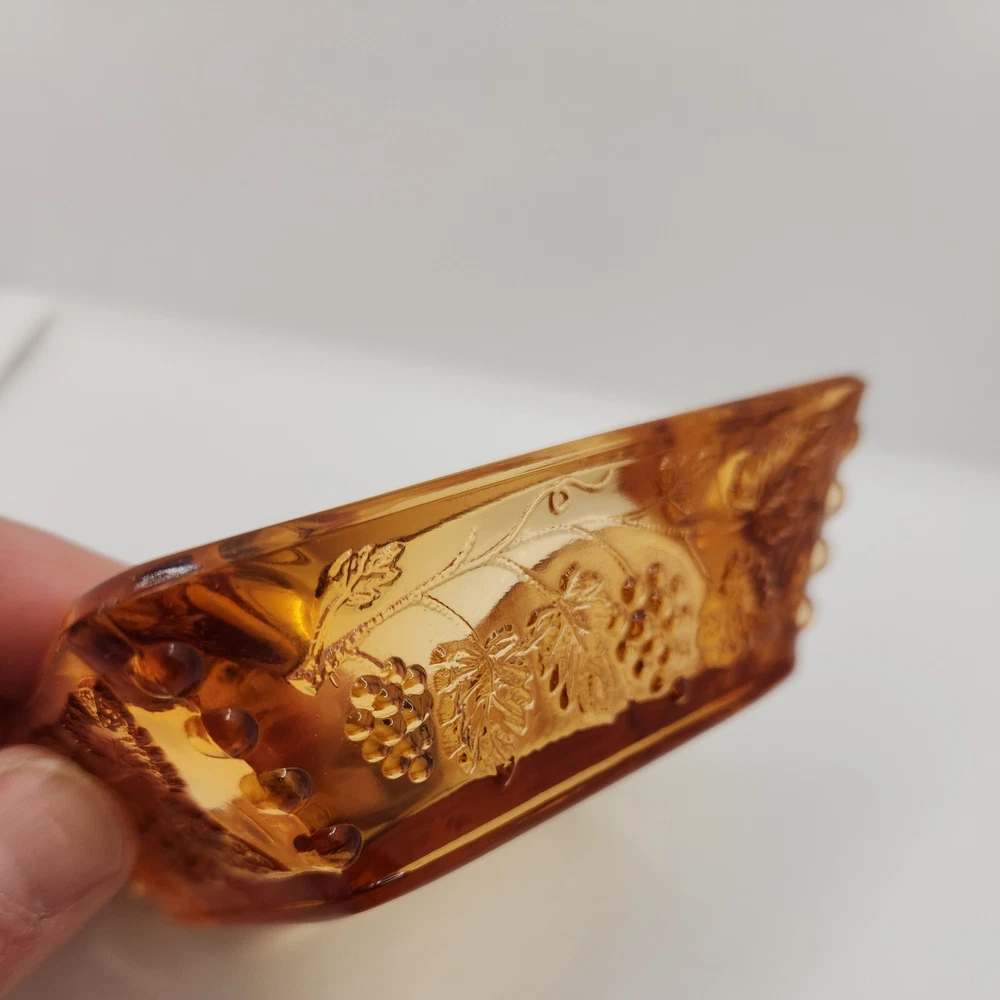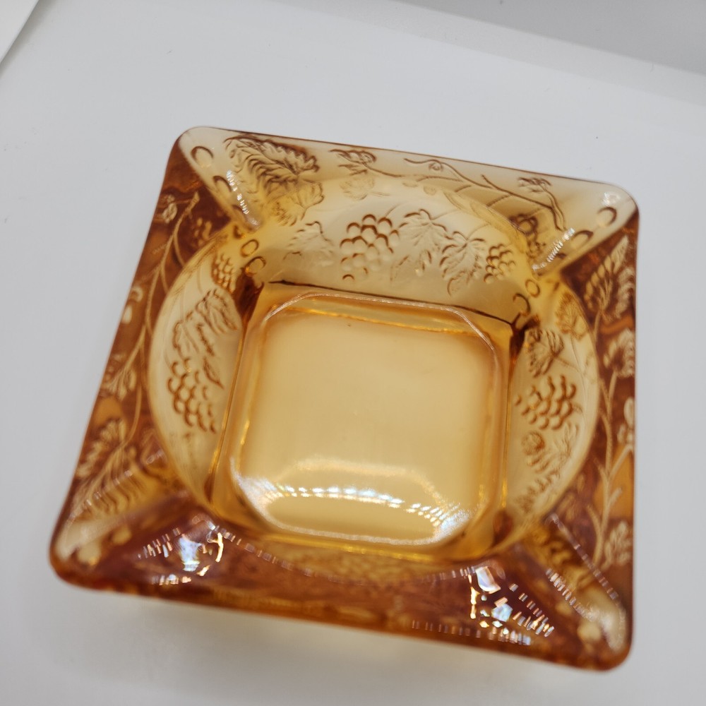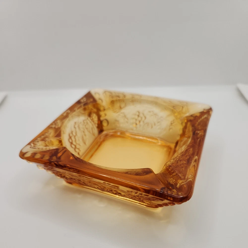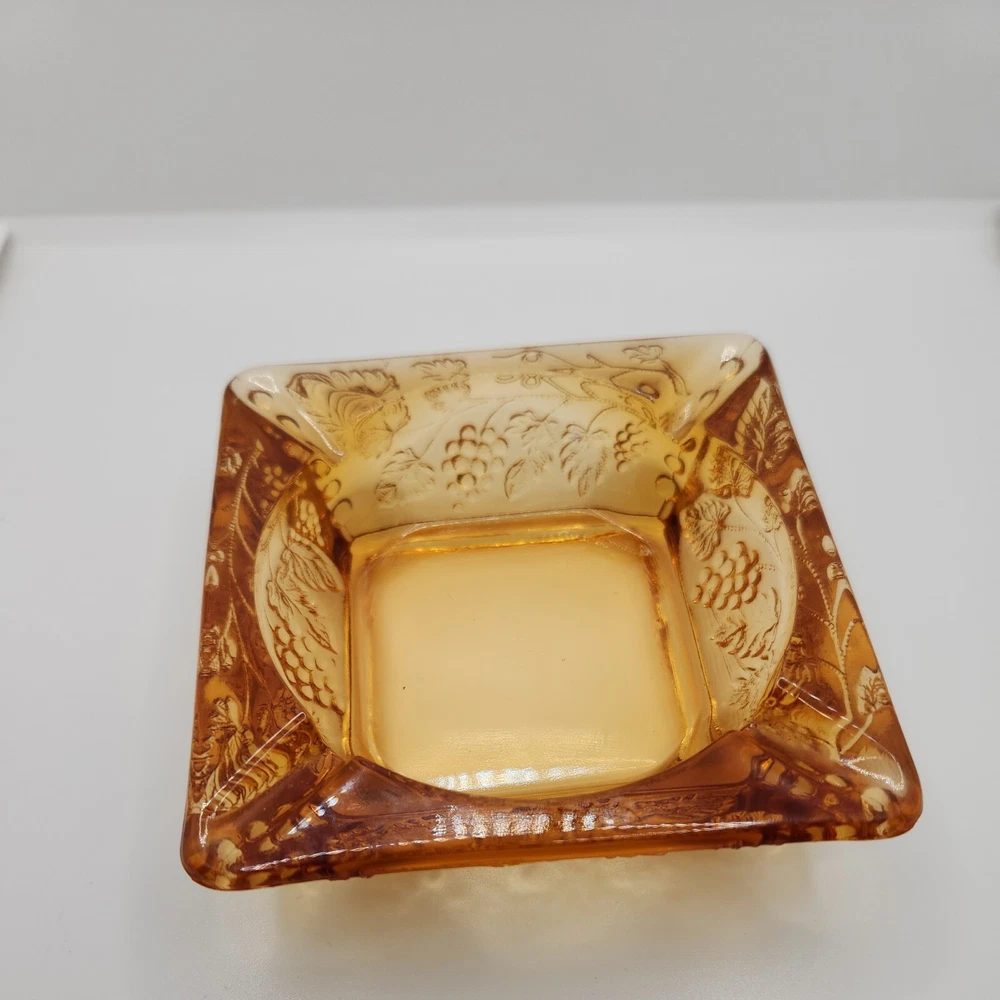 Vintage MCM Westmoreland Heavy Peach Glass Ashtray 4 Slots Panel Grape Square. Item is stamped westmoreland glass. No chips or cracks great condition...