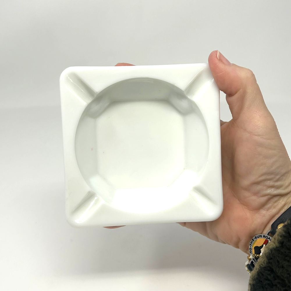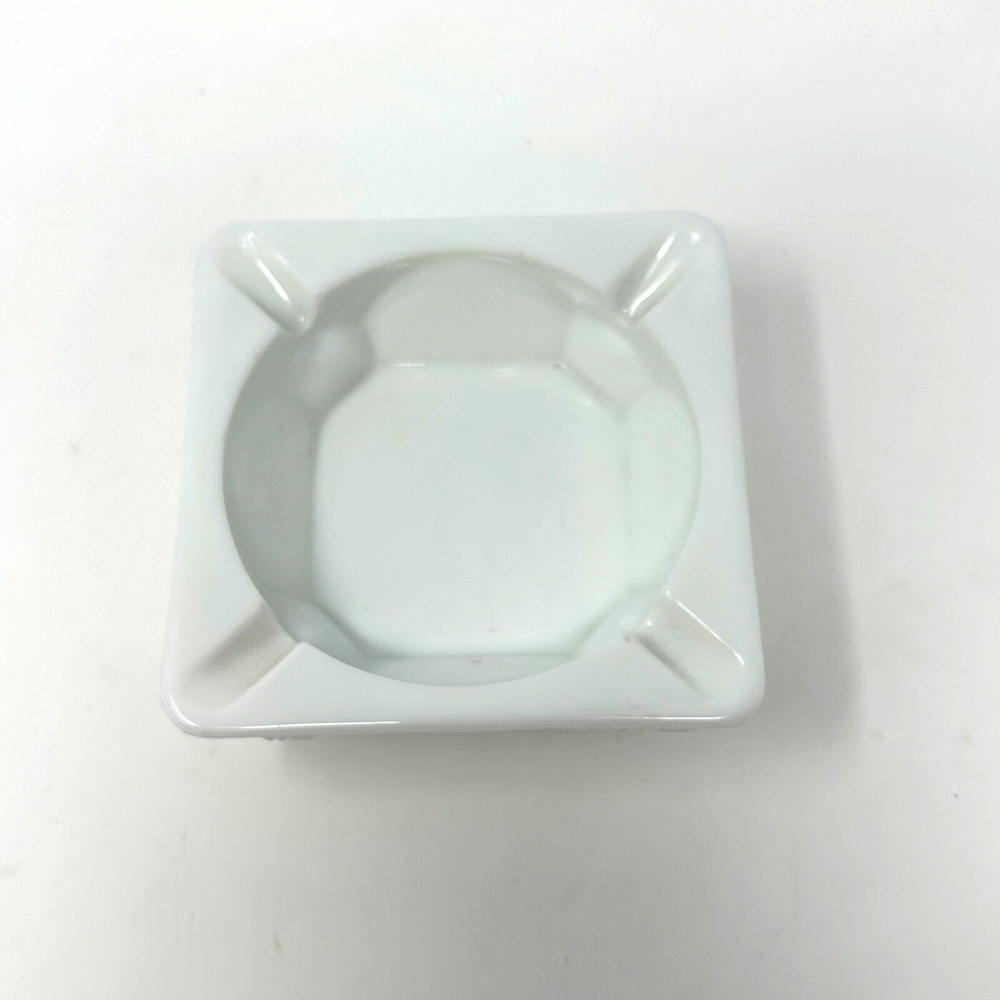 This vintage ashtray is in very good shape for its age. There is one mark on one side, probably nicotine, pictured. No other flaws. Measures ~3.5 inches square....