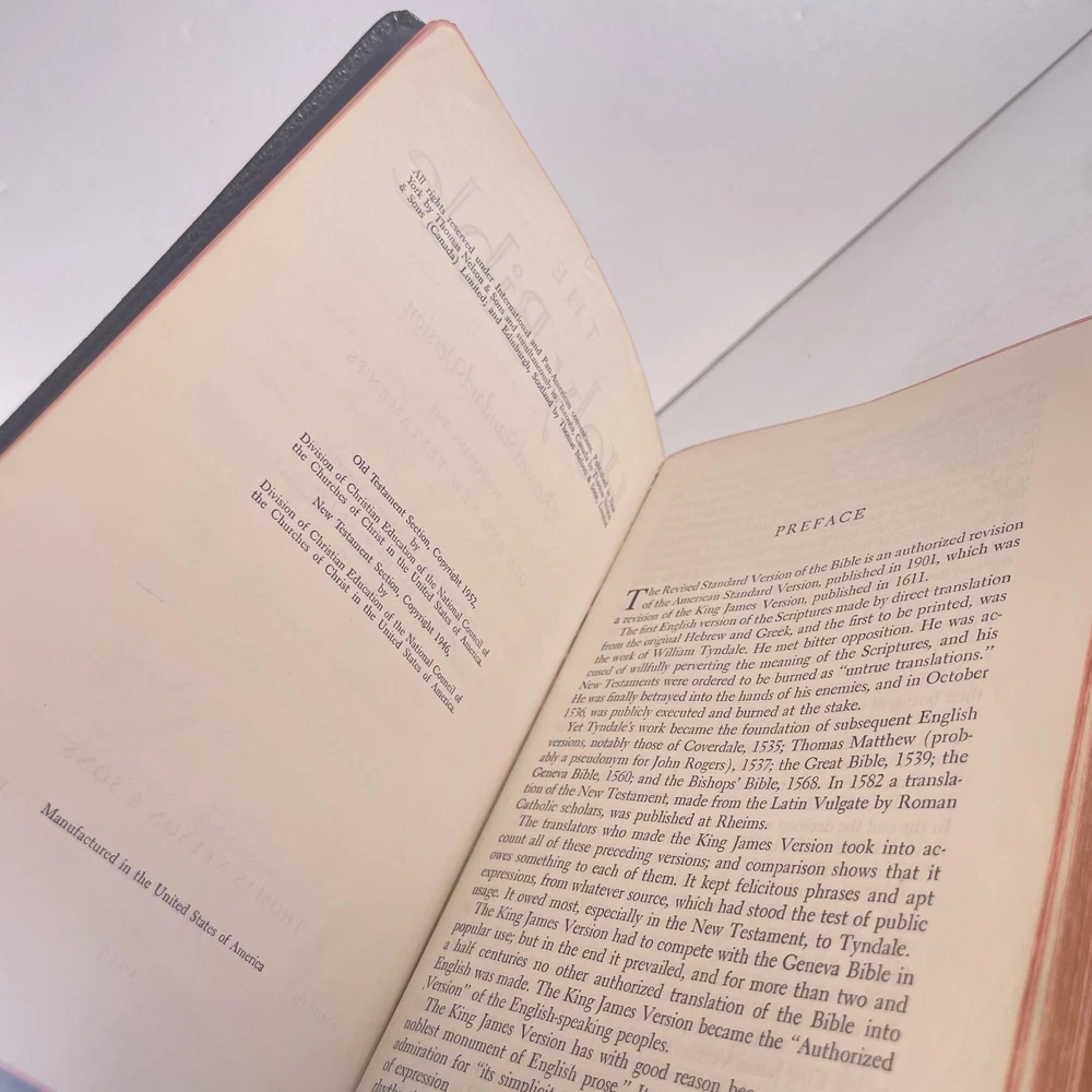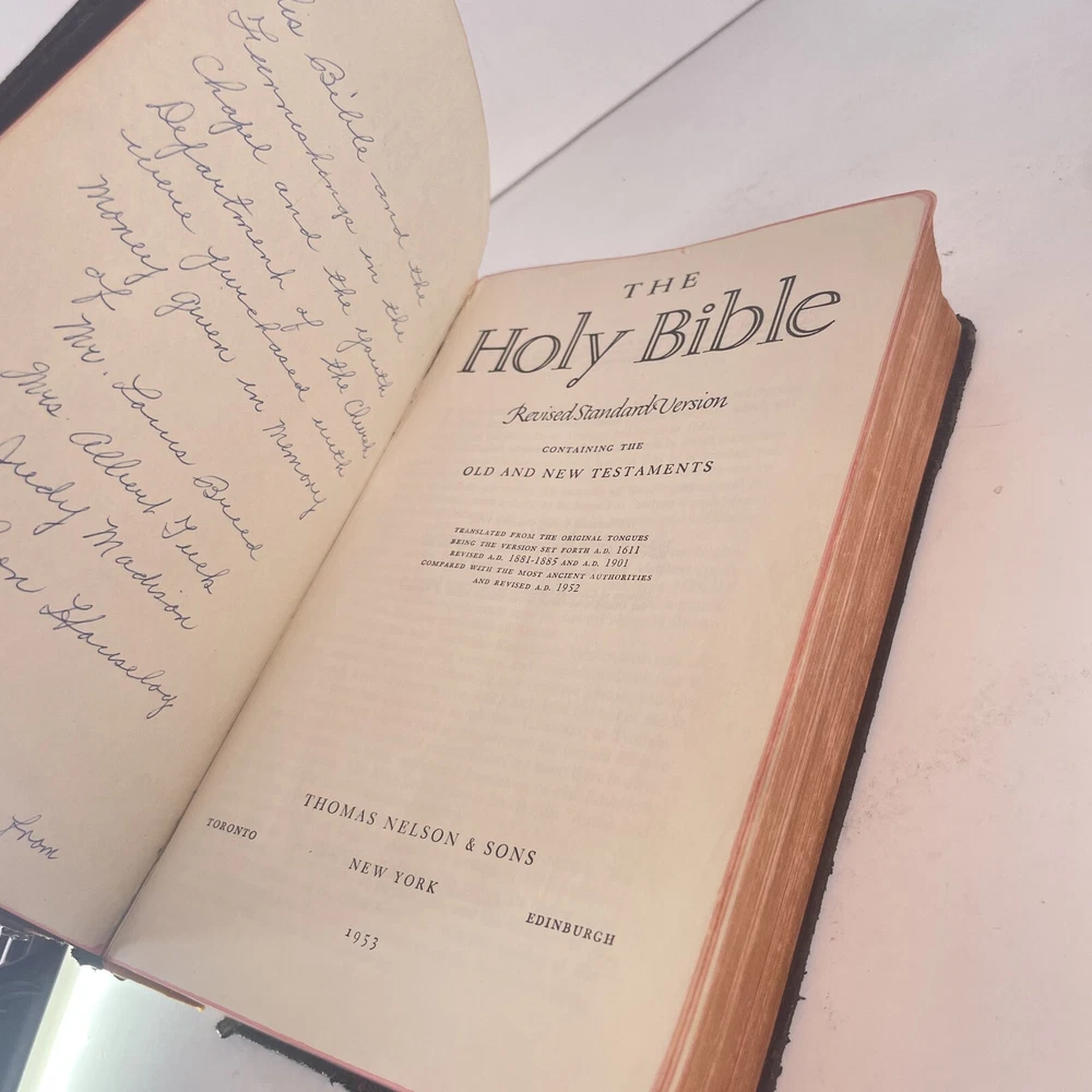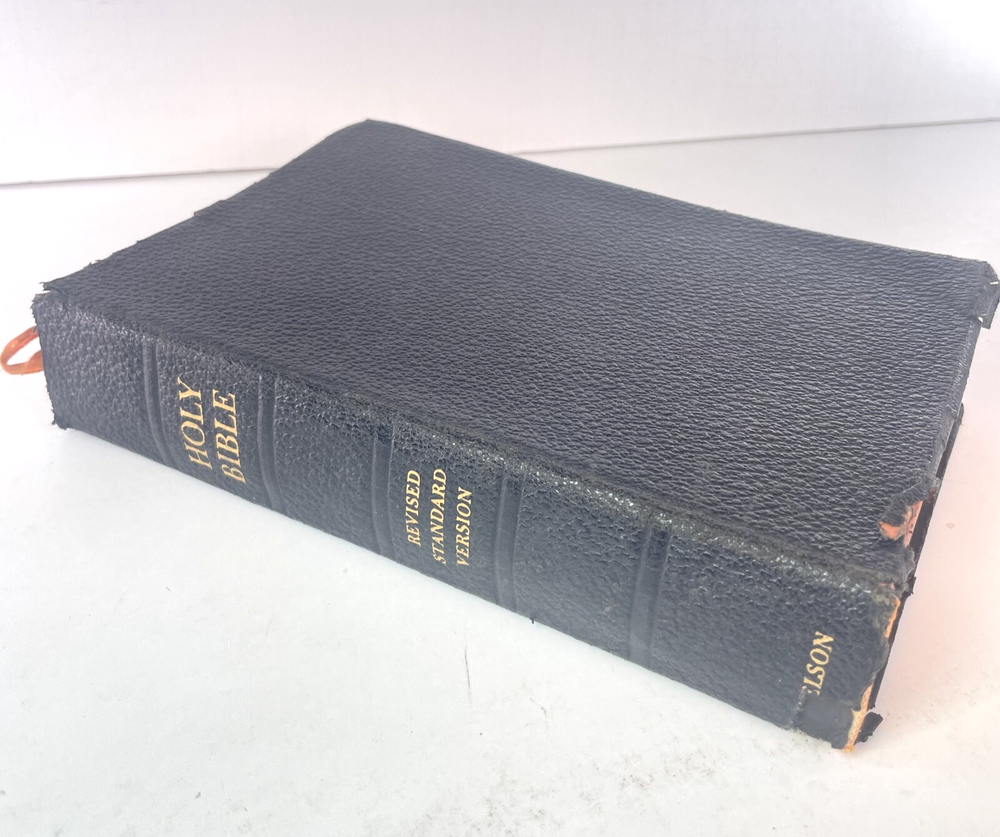 Vintage Nelson Holy Bible Revised Standard Version Black 1952 1953 Some shelf wear on cover, sticker and writing inside cover, see pics Book pictured is the exact one you will receive. -- We try hard to photograph to the best of our abilities any flaws and conditional issues so please see all photos for best idea of overall condition and complete details. Please check our other listings for more great book deals!