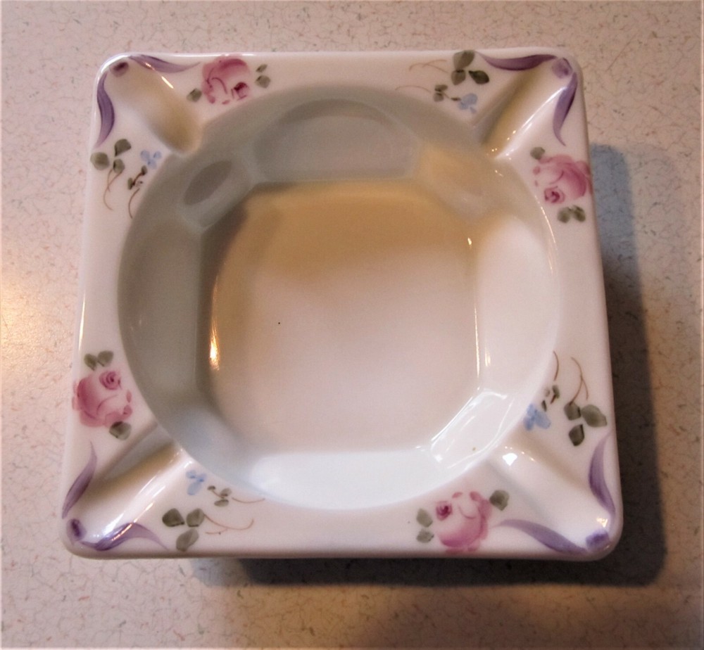 Vintage WESTMORELAND MILK GLASS Ashtray Hand Painted Pink Roses 4" by 1.25 ". Very Good Pre-owned Vintage Condition. Approximately 4 inches by 1 1/4 inches WESTMORELAND mark on bottom of ashtray. Hand painted.