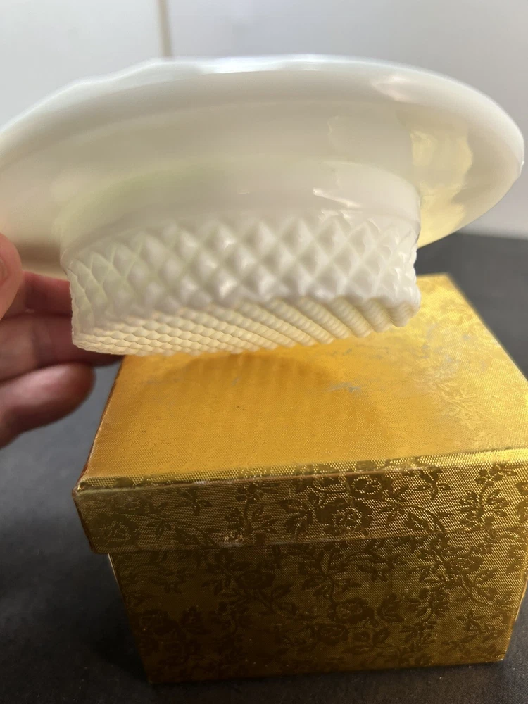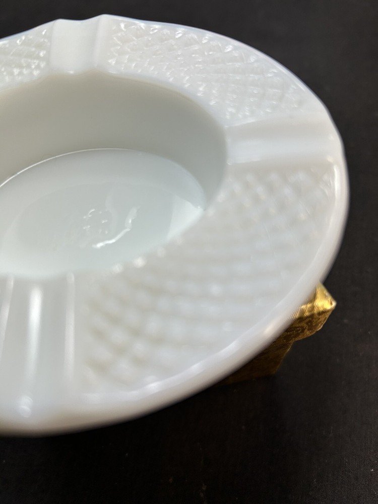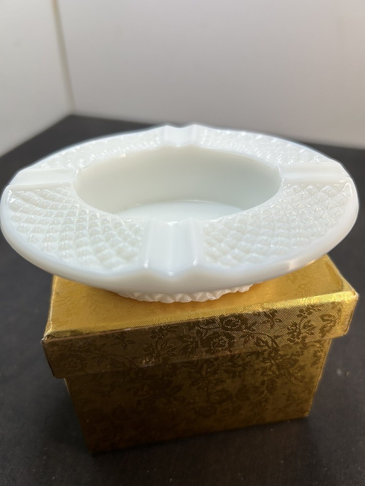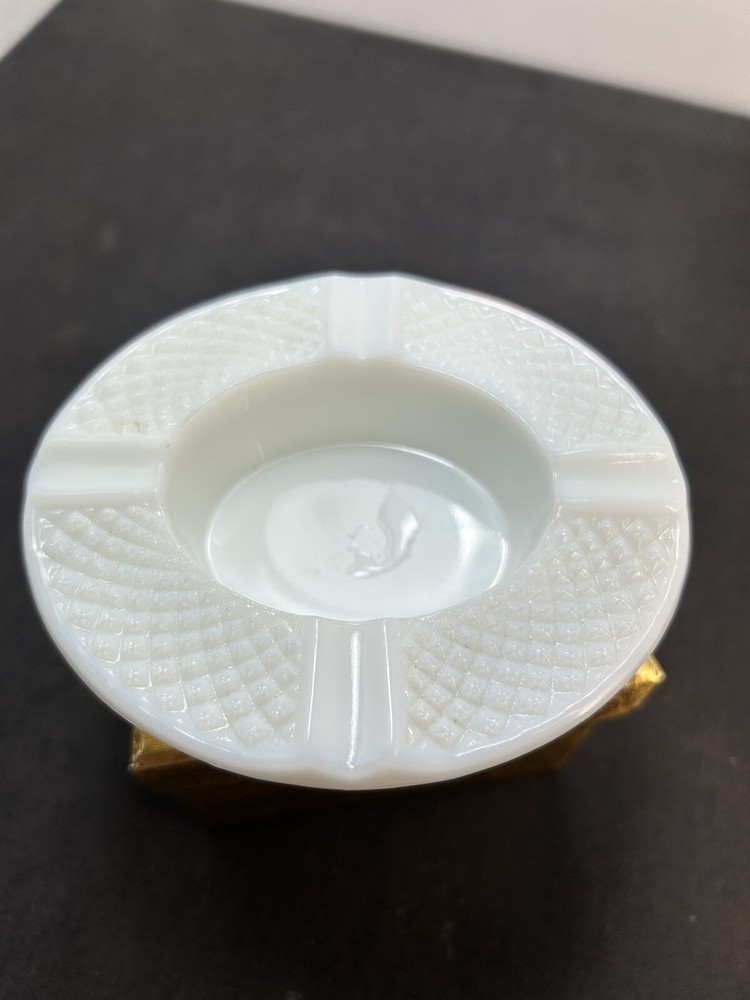 Vintage Westmoreland Ashtray White Milk Glass Diamond Cut Pattern 4 Slot 4.25 in. Condition is Used. Shipped with USPS Ground Advantage.