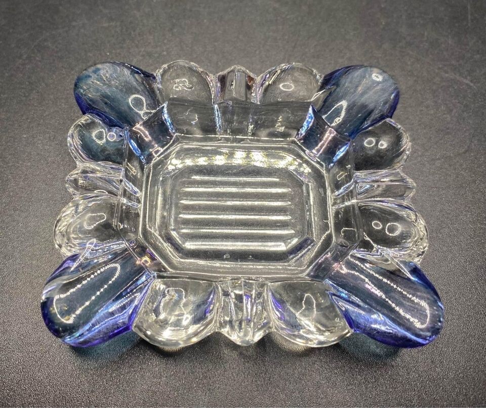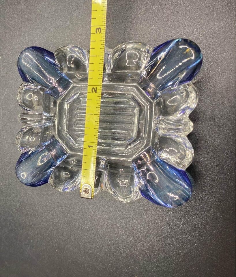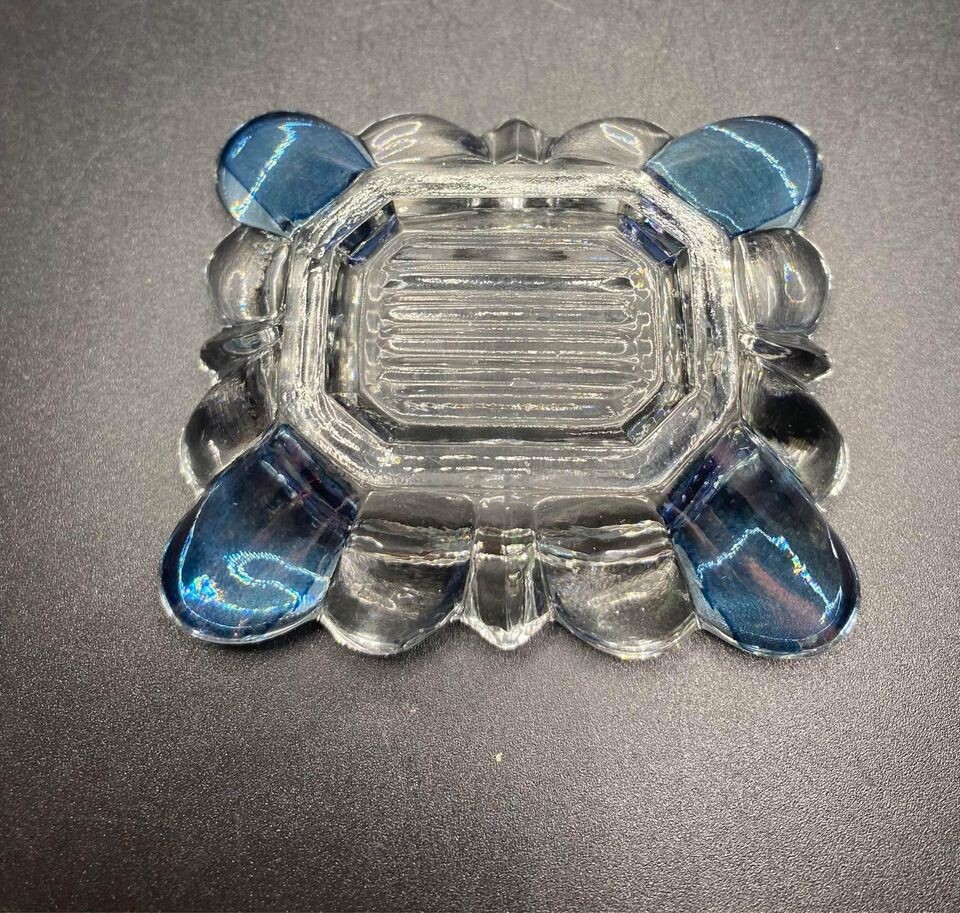 This is a small ashtray from the 1950's, about 2.5 x 3". The glass is beautiful and glowing with royal blue at the corners. Good Vintage Condition. Rare find!...