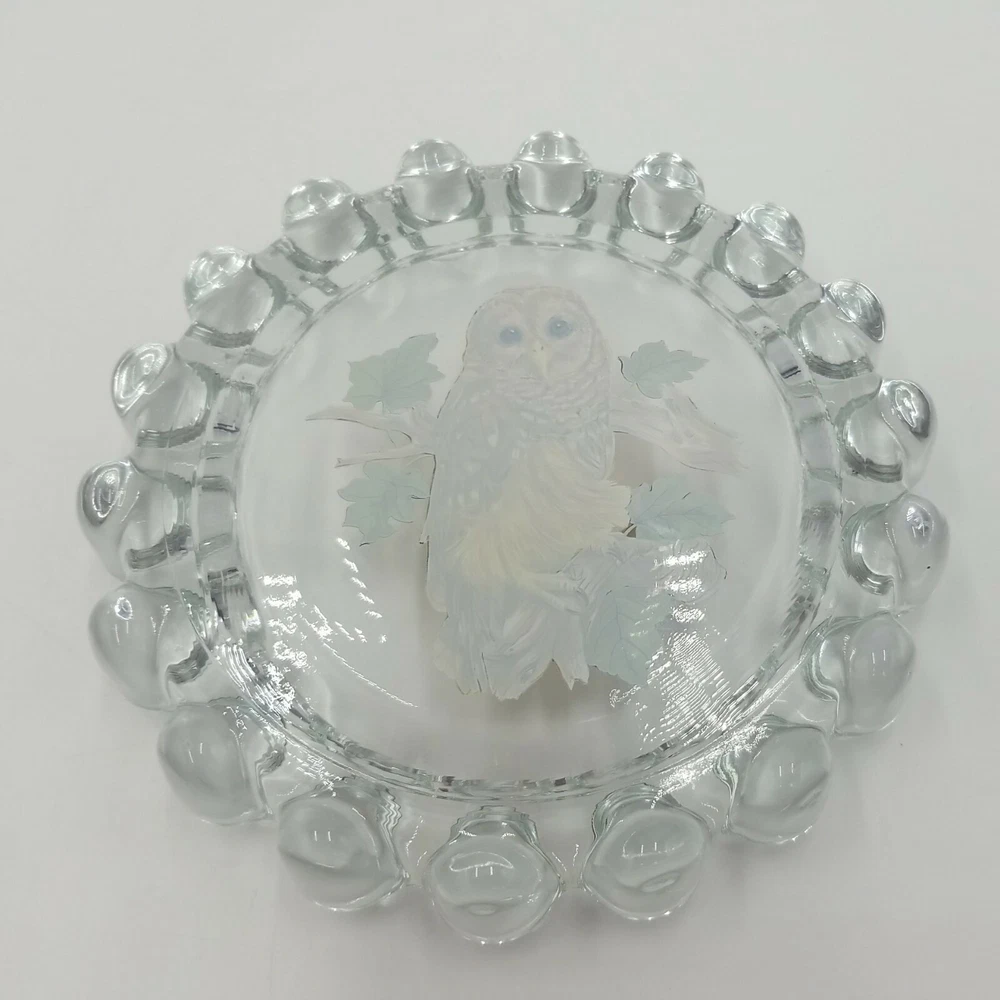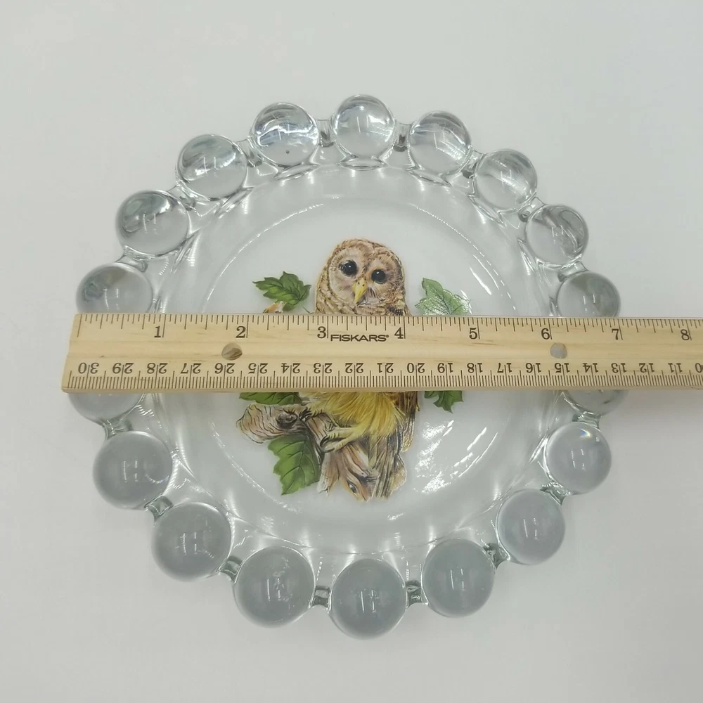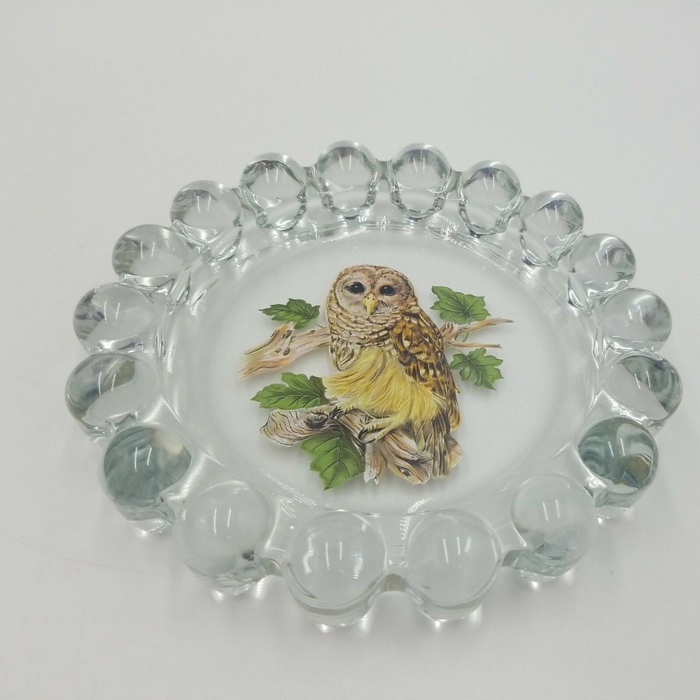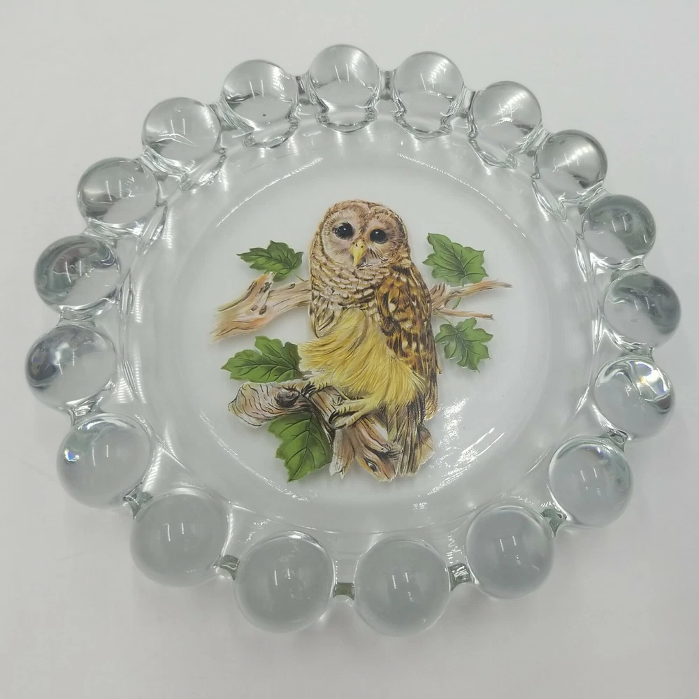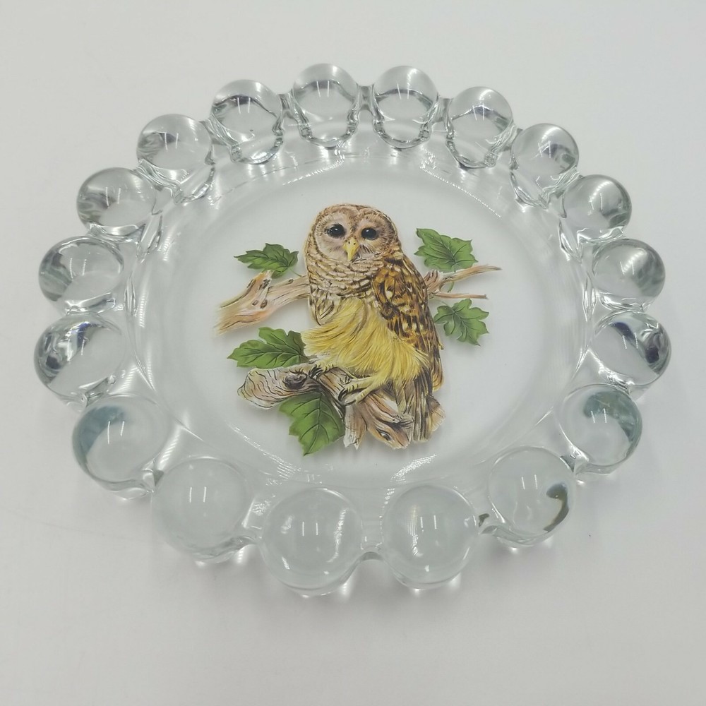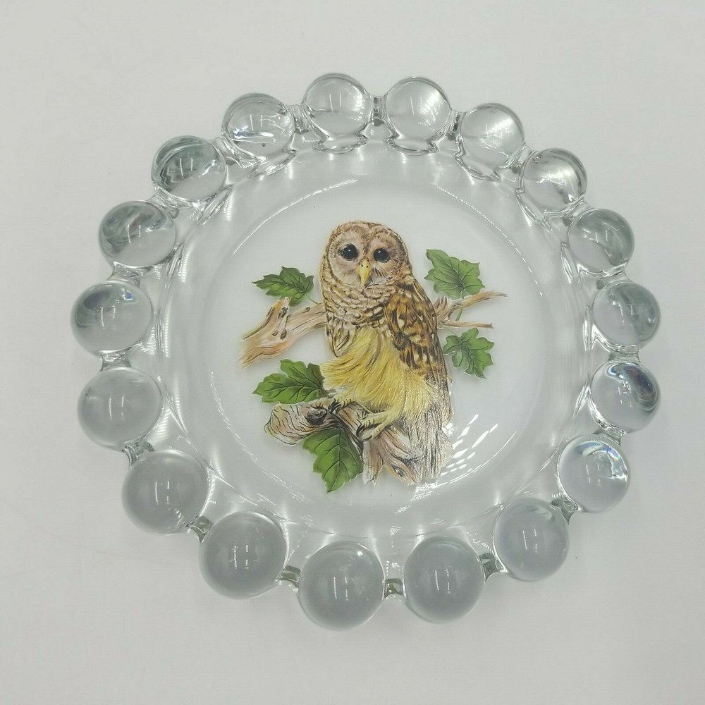 Vintage Westmoreland Clear Glass Barred Owl Crystal Ball Ring Ashtray 7 1/2" D. Good condition, does contain some small scratches. Measures: 1.5" high, 7.5" long Please see photos for more details. SHIPPING & HANDLING We ensure that all of our items are packaged with care. Handling Time - Our handling time is set to ONE BUSINESS DAY. We ship packages Monday - Friday, with the exception of holidays. Calculated Shipping - Our shipping fees are calculated based on weight and dimensions. We primarily use USPS Priority Mail for shipping service. Shipping service cannot be changed after payment is received. If an alternate shipping service is requested, please contact us prior to purchase so that we can adjust the listing to meet your request. Combined Invoices - We will combine shipping if purchases can be safely combined. Combined invoices are sent Monday - Friday, with the exception of holidays. PAYMENT Payment - Payment is expected at the close of auction unless an agreement is made prior to auction close. Non-Paying Bidders - Unpaid item cases are opened after three days of non-payment. Non-paying bidders are blocked from future transactions. Cancelled Transactions - If a winning bidder requests to cancel the sale, they will be blocked from future transactions. BIDDING Retracting Bids - Bids can be cancelled through the HELP section of eBay. If a bidder cancels bids excessively, they will be blocked from future transactions. Shill Bidding - If a buyer appears to be bidding and retracting suspiciously to manipulate bids, they will be blocked from future bidding and reported to eBay. THANK YOU!