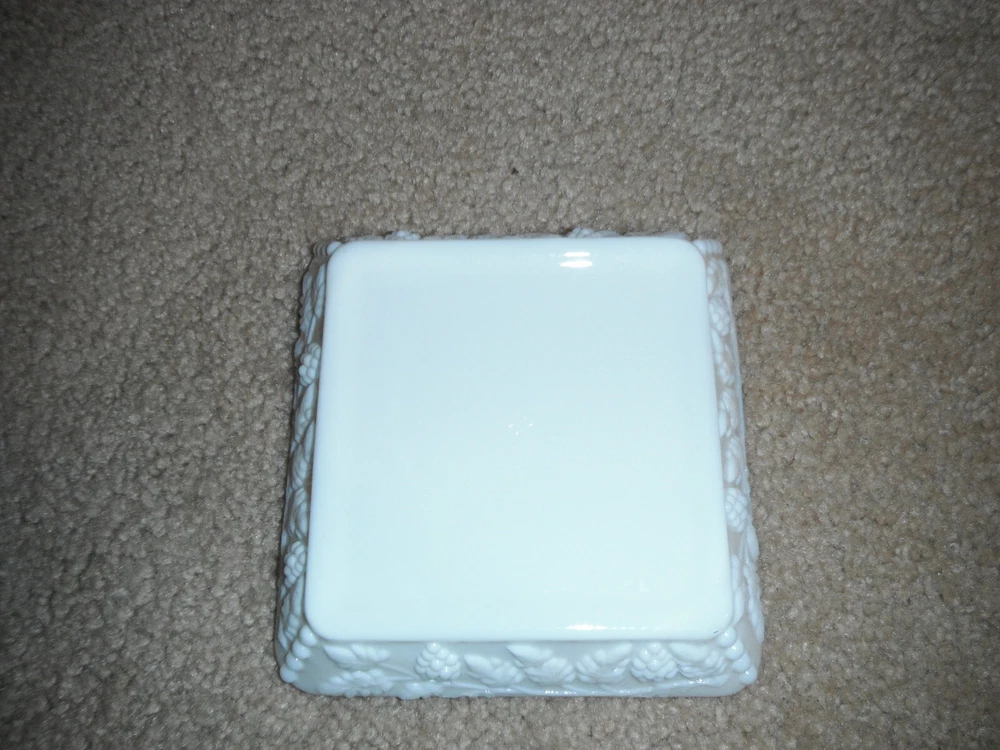 Vintage Westmoreland Glass Grape Ashtray Milk Glass Large Marked. Item in great used condition. Dimensions of the item height is 1.75", top diameter is 6.5", and base diameter is 5". One corner has a small chip on the inside of the ashtray (shown in picture). Thanks for looking, check out my other listings of milk glass and much more!