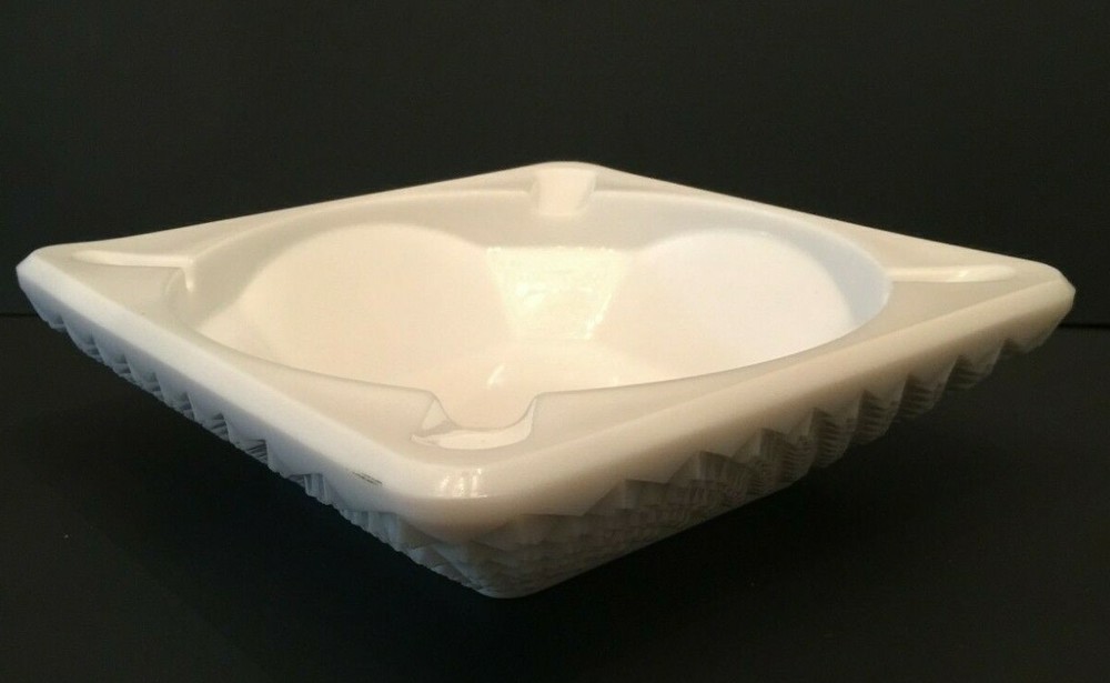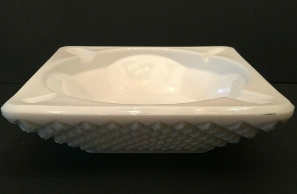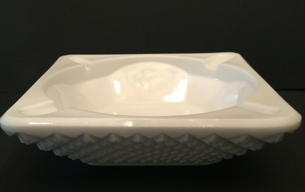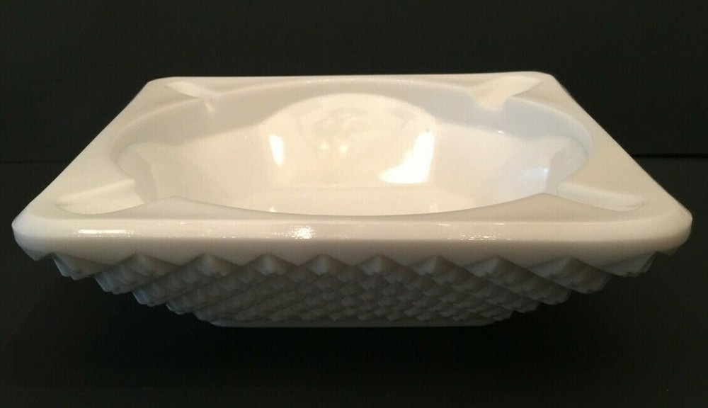 Vintage Westmoreland Glass Milk Glass Square Ashtray English Hobnail Marked English Hobnail "Marked" Vintage Opaque Milk-White English Hobnail Pattern Large Square Ashtray Measurements Are Approximate: 7-1/2 Inches Wide (Square) 1-1/2 Inches Deep 2-1/4 Inches Tall All Items From Smoke Free/Pet Free Environment SHIPPING POLICY : All items are shipped within 3 business days of purchase and are carefully wrapped to protect during transit. International bidders pay actual shipping costs. International Buyers - Please Note: Shipping costs to foreign countries are determined by EBAY GLOBAL SHIPPING and not the seller, check with them for shipping costs to your country before you bid. Import duties, taxes, and charges are not included in the item price or shipping cost. These charges are the buyer’s responsibility. Please check with your country’s customs office to determine what these additional costs will be prior to bidding or buying. RETURN POLICY : All items come with a 30-day money back hassle-free guarantee. If for any reason you are not satisfied with your purchase, a full refund will be issued. Please note: Buyer will be responsible for all shipping fees with returned purchase. Item must be returned in original condition; with tags attached if applicable. THANK YOU FOR YOUR BUSINESS ! Please feel free to ask any questions you may have about the merchandise you are bidding on. Our goal is to provide our customers with an outstanding customer experience. FEEDBACK : Your feedback is important! If for any reason you are not completely satisfied with your purchase, please contact us immediately through the Ebay messaging service, and we will do our very best to resolve any issues.