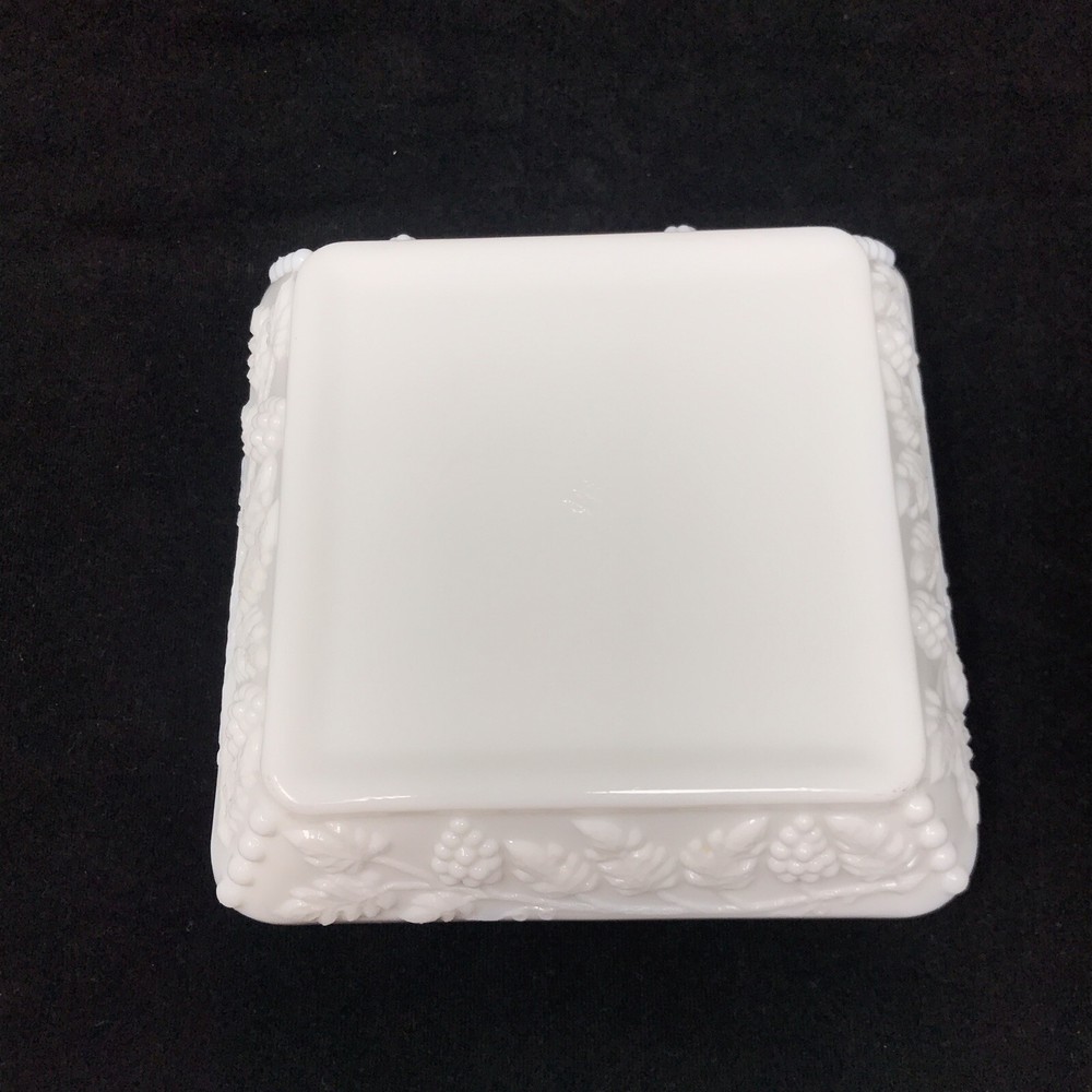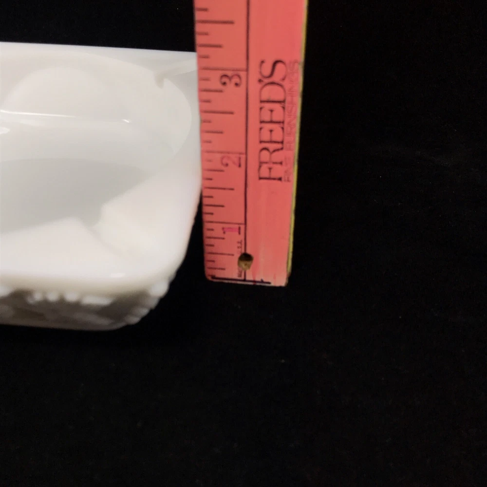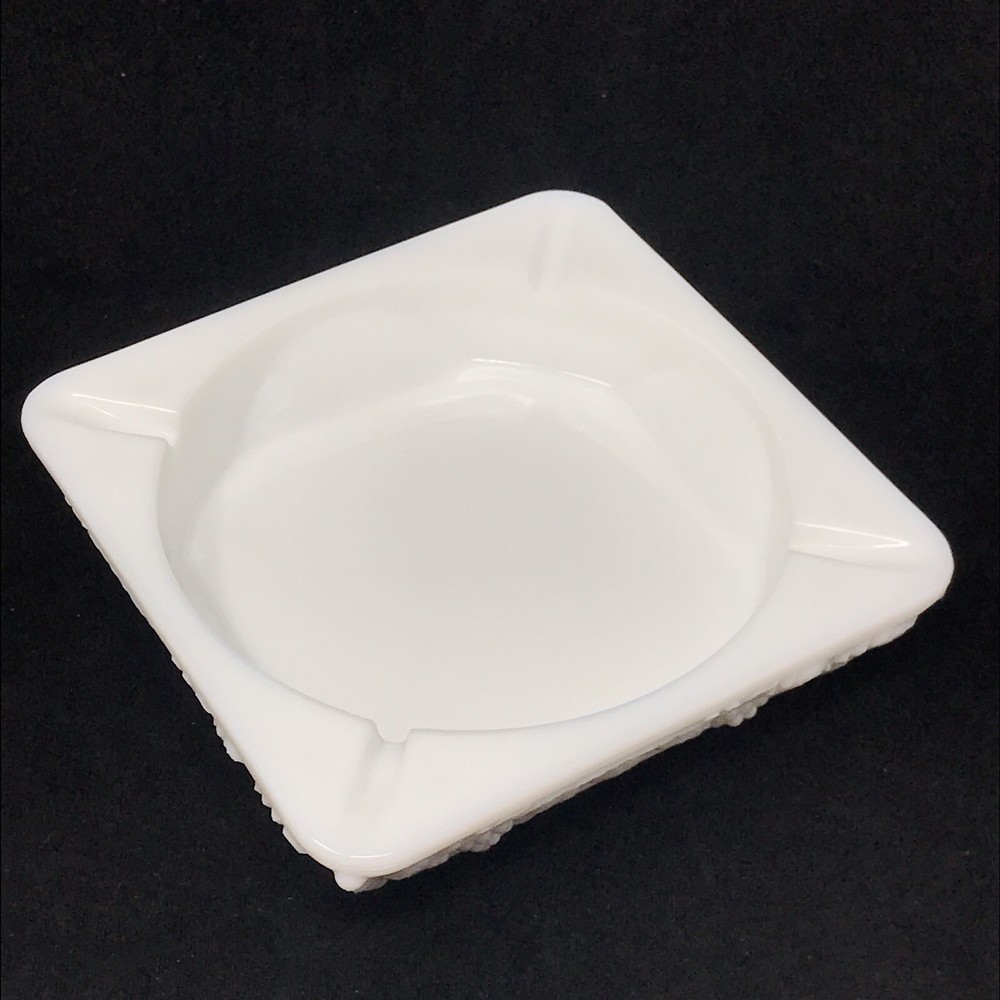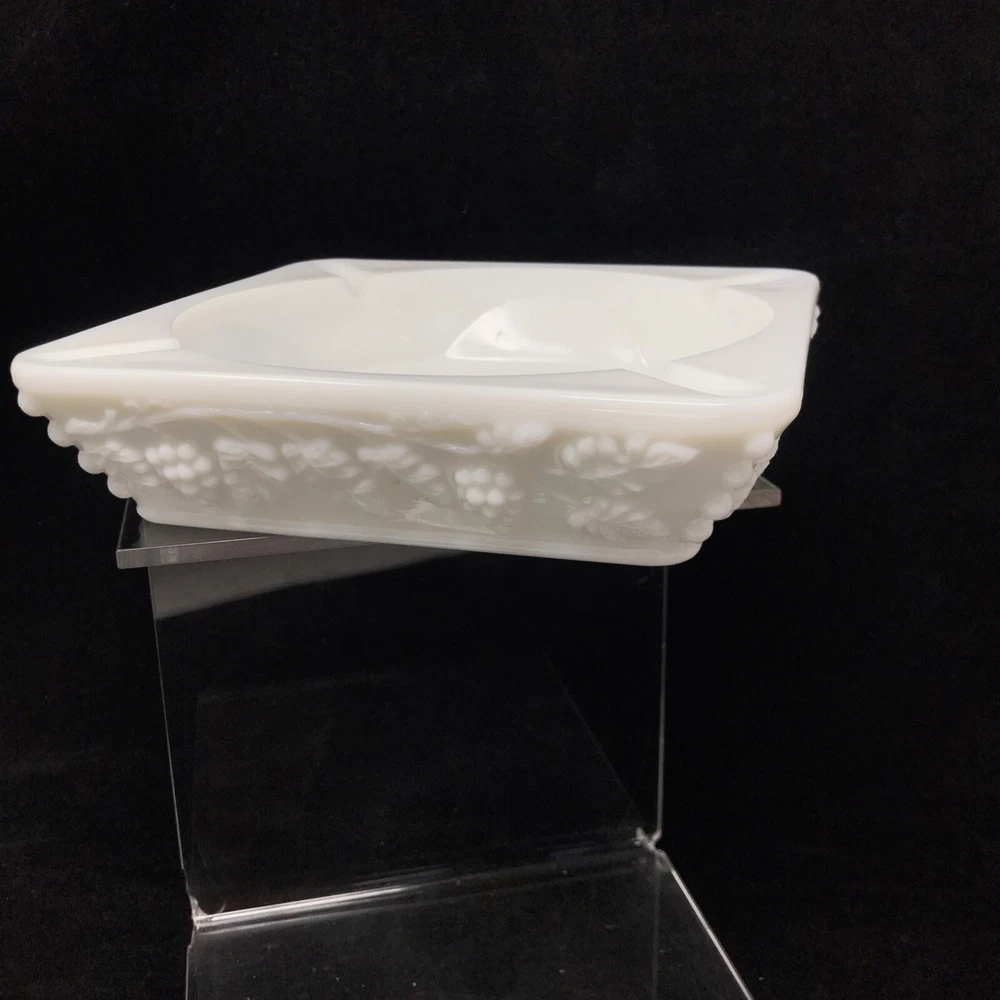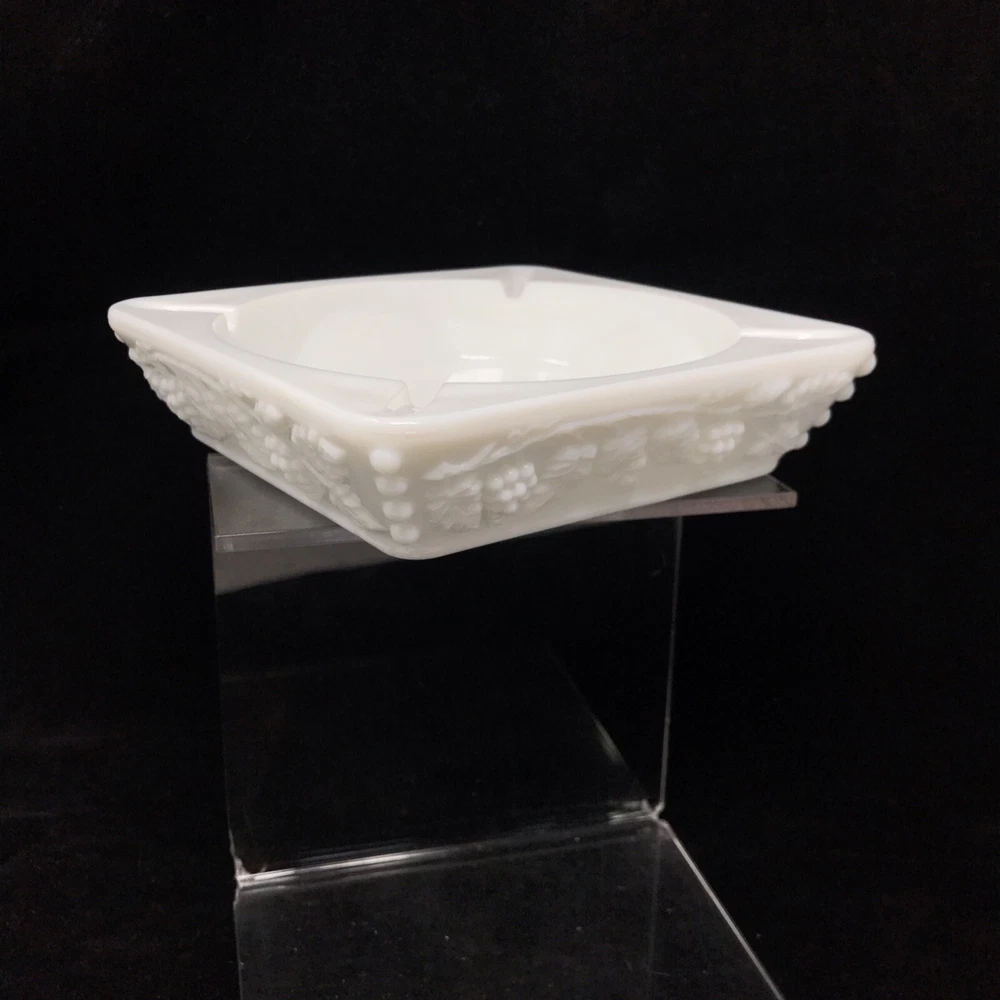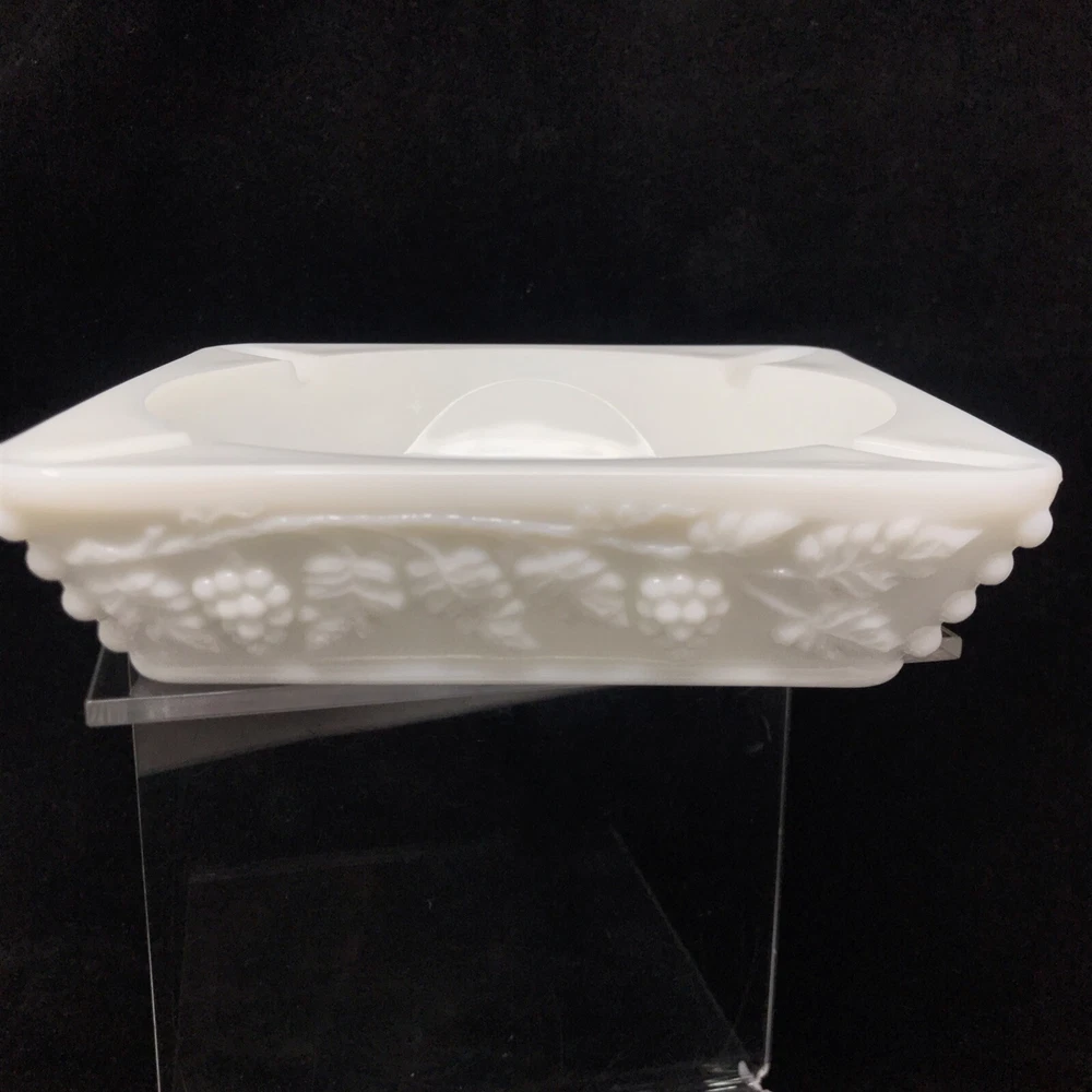 This is a Vintage Westmoreland Glass WG White Milk Glass 6.5" Square Ashtray with Grape and Vine on the side...
