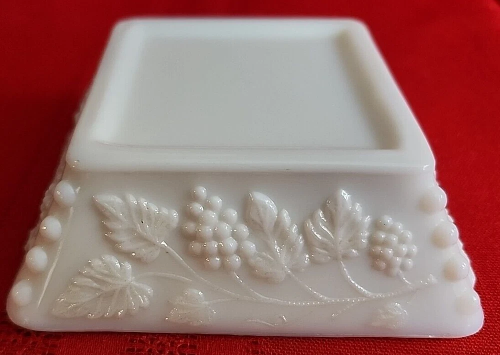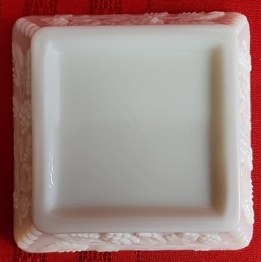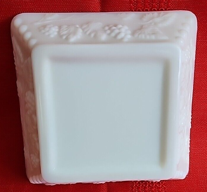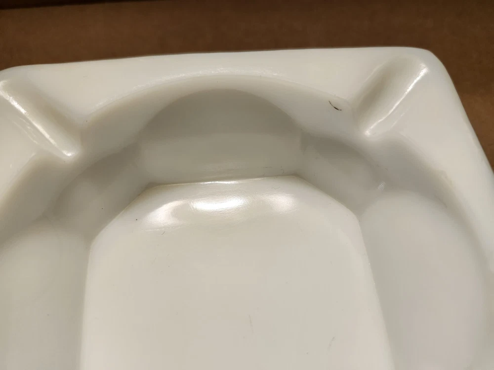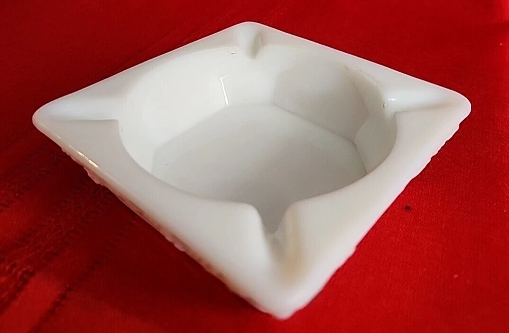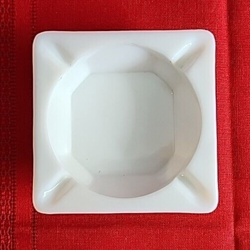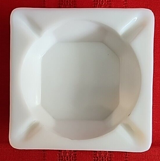 We are offering a vintage Westmoreland ashtray that measures 4" square and 1 1/4" tall. Marked on bottom with Westmoreland stamp. Near fine condition with one tiny black speck as shown in second to last photo. We have other vintage milk glass pieces. Combined orders save on shipping!