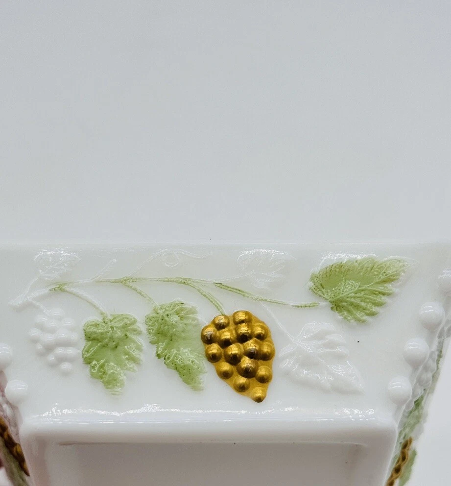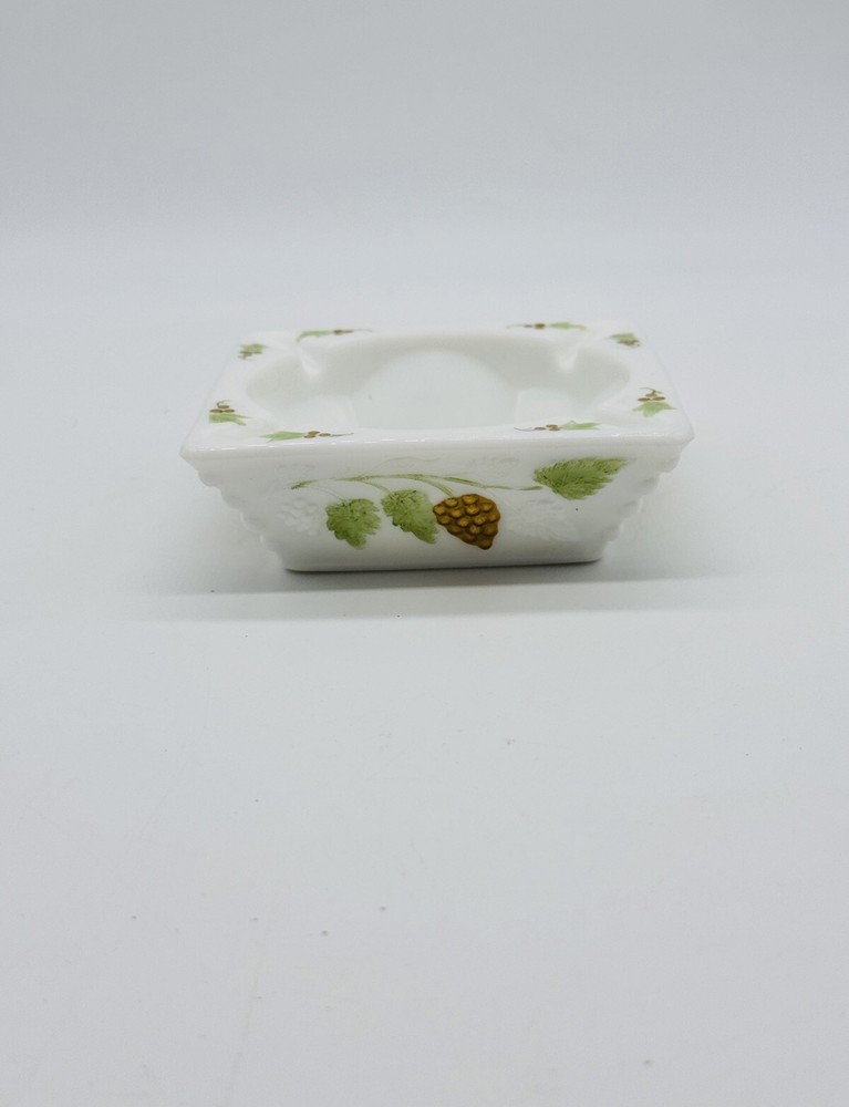 Vintage Westmoreland Milk Glass Ashtray with Hand-painted Gold Grapes & Green Leaves. Measures 4". Preowned in very good condition....