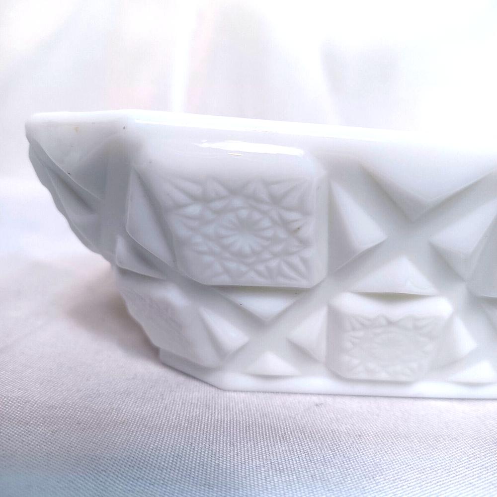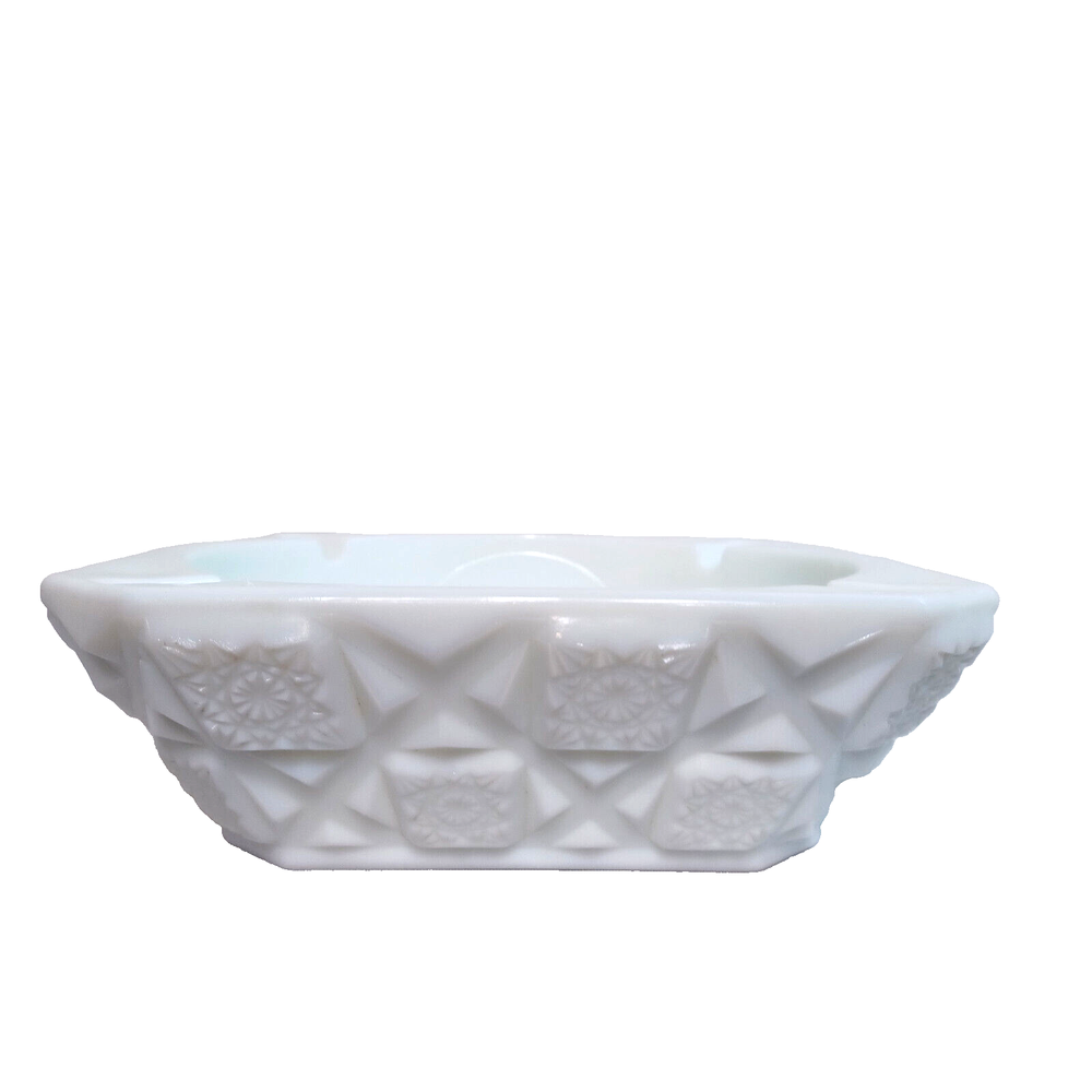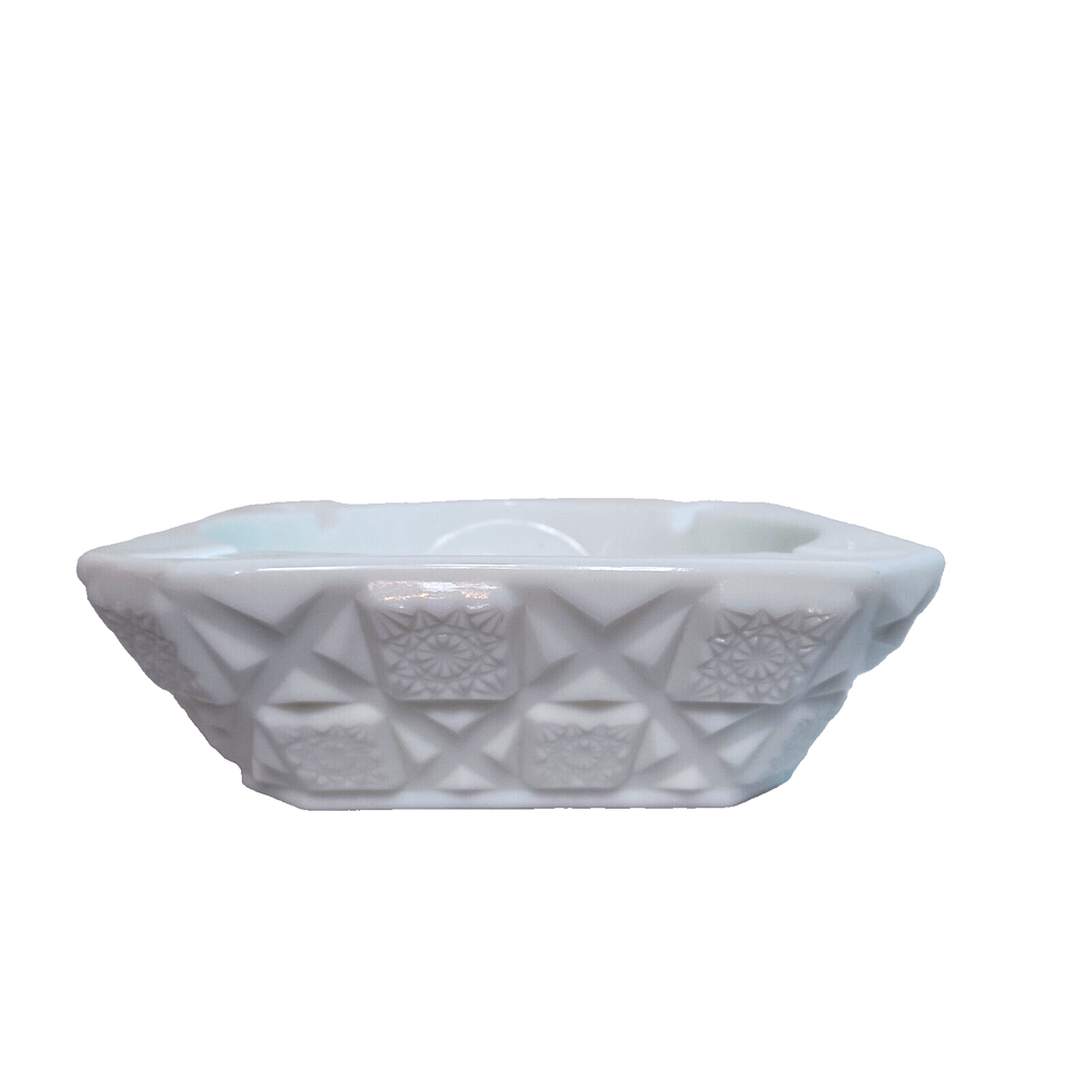 This vintage Westmoreland ashtray is a beautiful addition to any tobacciana collection. Made of milk glass with a unique old quilt design, this ashtray is perfect for both decorative and functional use. The white color and production style add to its charm, while the brand name adds to its value. Crafted with care and precision, this ashtray is a true treasure for any glassware enthusiast. 4 inch square and 1 1/2 inches high.