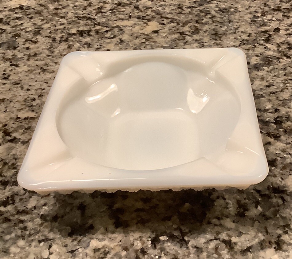 Vintage ~ Westmoreland Milk Glass Ashtray ~ Paneled Grape Design ~ 4" x 4". Condition is Used. Shipped with USPS Ground Advantage....