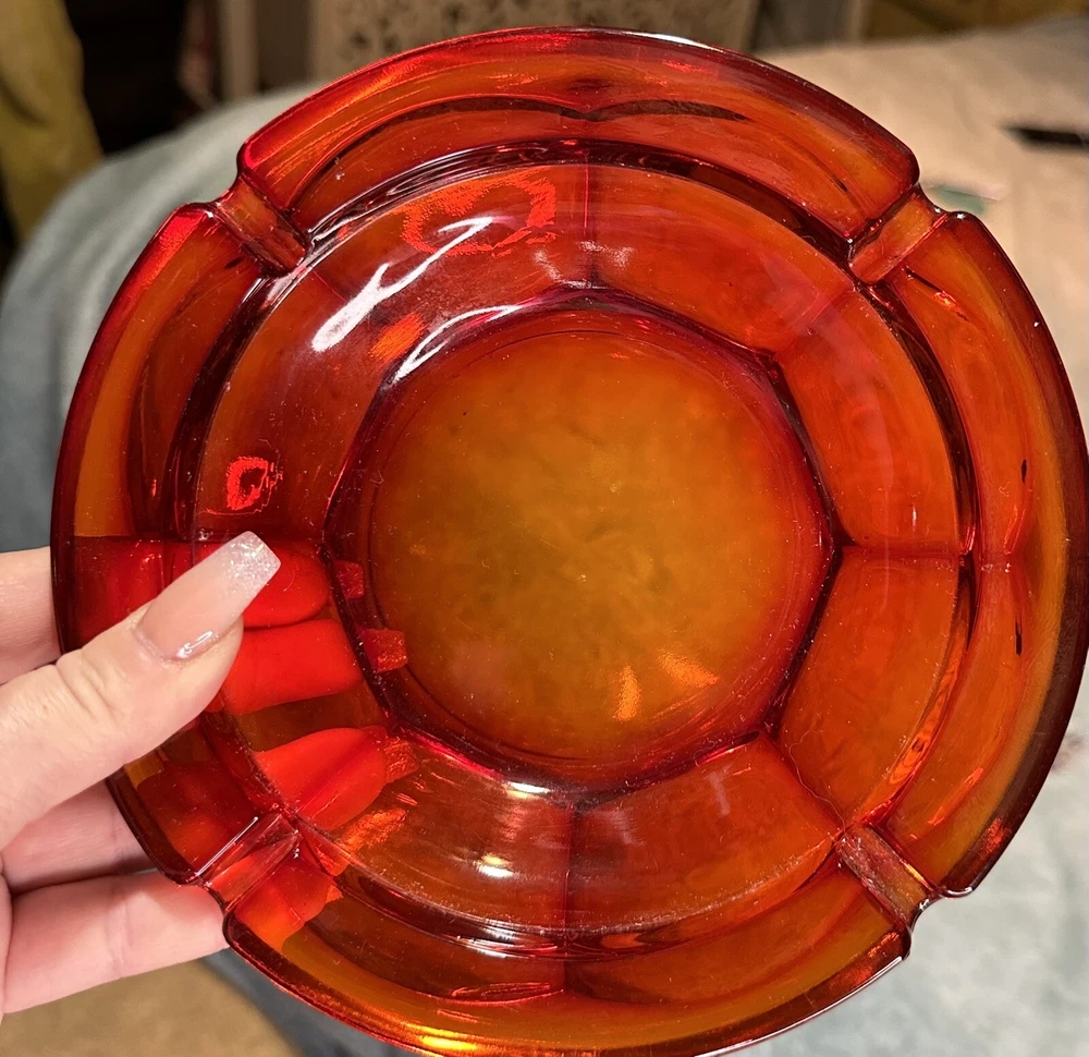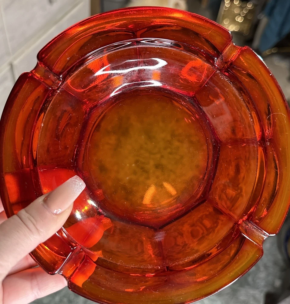 Absolutely love this vintage Westmoreland ashtray! The rich ruby red and amberina hues give it such retro charm, and the glass work is flawless. It’s a gorgeous decorative piece that adds instant mid-century character to my space—perfect for collectors or anyone who appreciates unique vintage finds. The craftsmanship shows in every detail, and it’s surprisingly sturdy too. A true standout!