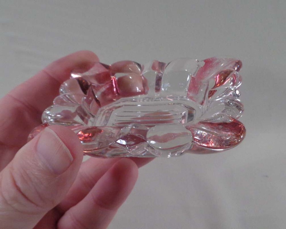 Vintage Westmoreland Ruby Red & Clear Flashed Glass Ashtray A vintage Westmoreland ruby red & clear flashed glass ashtray. Measures approx. 3" x 3-1/4". Excellent condition with no chips or cracks. The red has mostly worn off. If you have any questions, please let me know. Calculated shipping (w/delivery conf. tracking - 1 business day handling). 30 day return privilege on all items. *Image may change or be removed after listing ends.