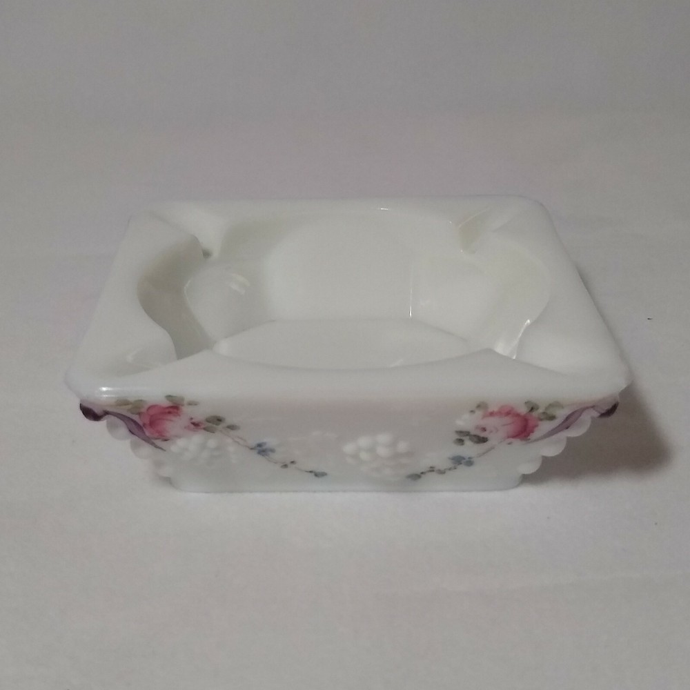 Vintage Westmoreland Square Milk Glass Painted Ashtray Preowned condition. Good shape no notable issues. Please see all photos Shipped USPS Priority Mail