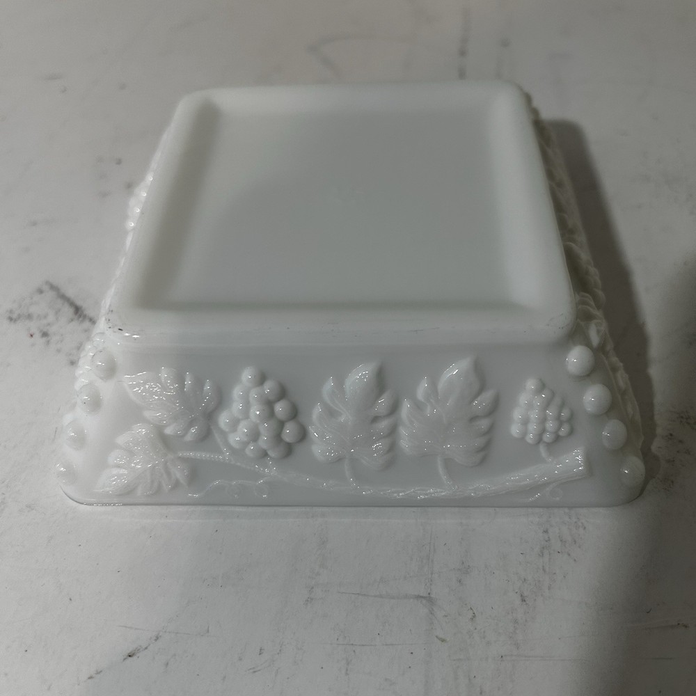 The Vintage Westmoreland White Milk Glass Grape Leaf 5” Ashtray is a decorative piece made of milk glass with a white color. Produced by the Westmoreland brand, this ashtray features a unique grape leaf design that adds a touch of elegance to any space. Perfect for collectors of decorative pottery and glassware, this ashtray is a charming addition to any vintage-inspired decor.