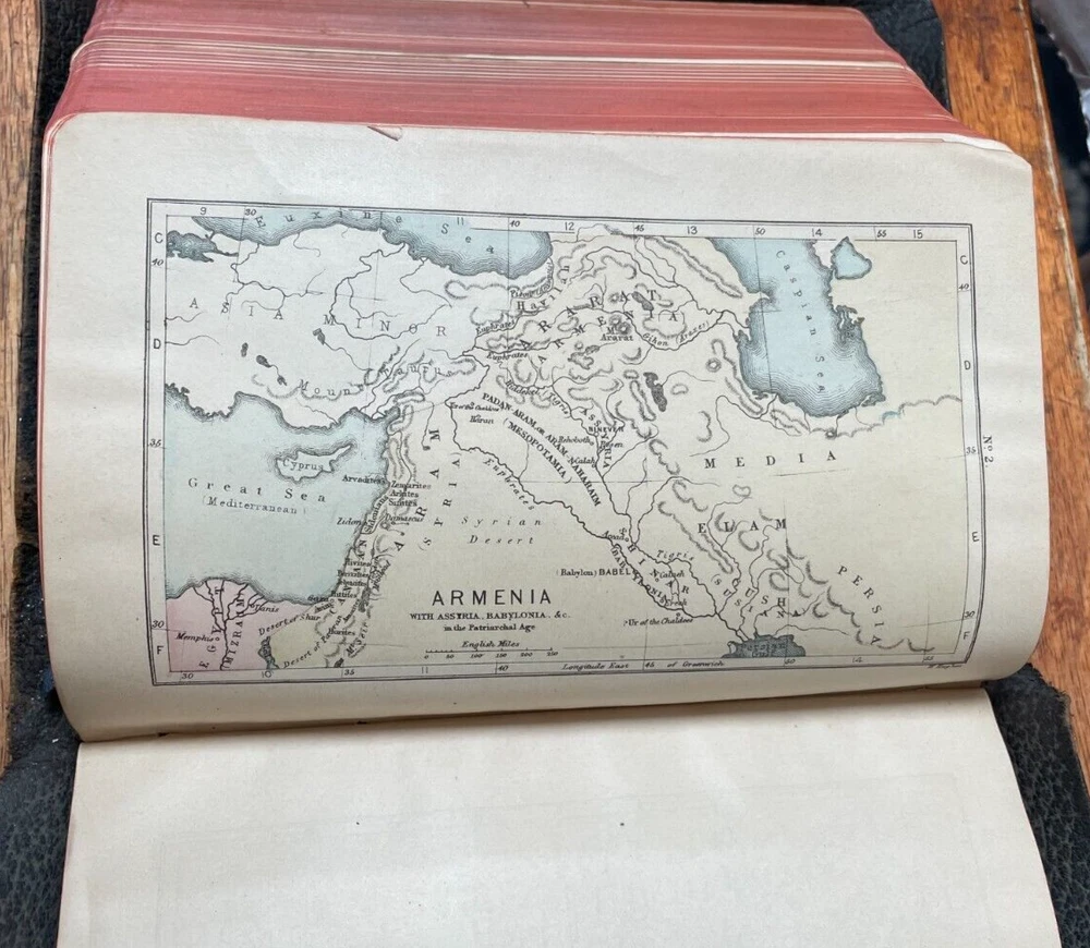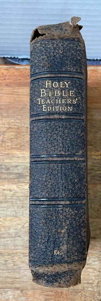 Antique 1895? Holy Bible Leather Holman E. & S. Teachers Edition King James Old & New Testaments Eyre & Spottiswoode Measures Approx. 6 1/2" x 541/2" x 1 1/2" Thick Book is in Good Condition for its age. I could not find a Date with the exception of the first page which it was presented to December 25, 1895 Alsatian Levant Silk Sewn Binding is tight, no Loose Pages...Cover corner flaps are folded with some wear. (please see all pictures