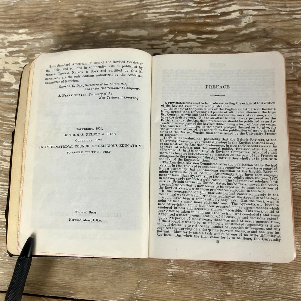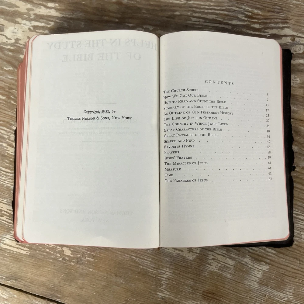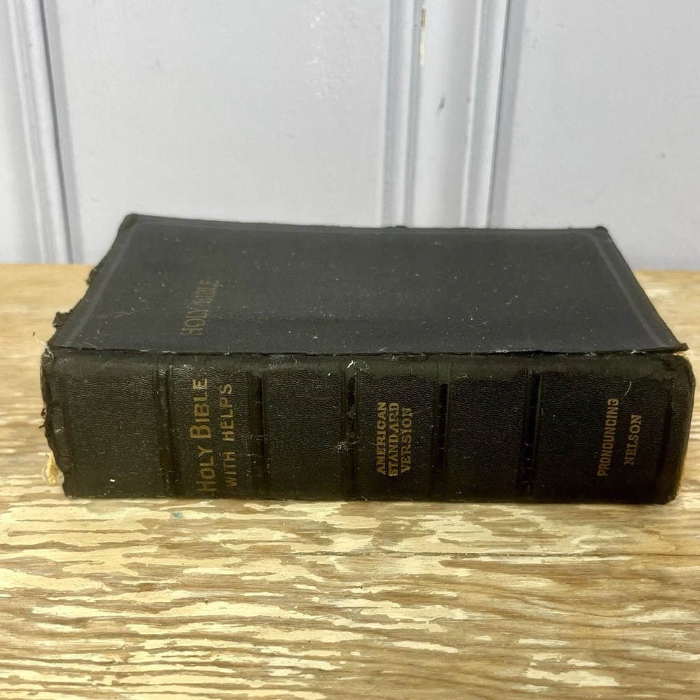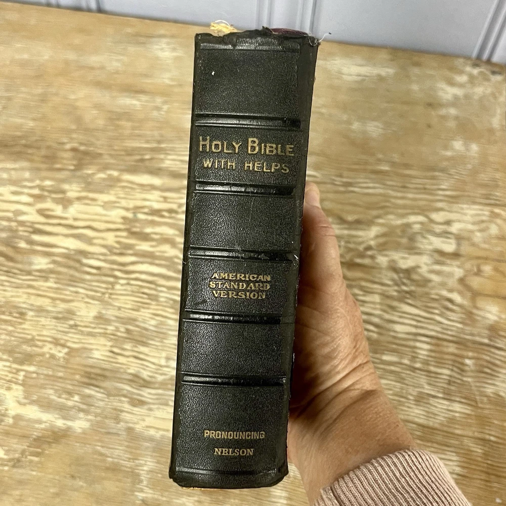 Vtg 1932 Bible With Guide American Standard Version Thomas Nelson Illustrated good vintage condition. Has some yellowing, minor dog ears, some staining. It is inscribed. Cover has some wear, edge wear. Binding is good. spine is good. Some minimal separating of 1st page from spine nice small compact size. Has a good feel in the hand leather cover has that wonderful old book smell 842 pages plus study aids "helps" in the back of 62 pages published by Thomas nelson, Norwood press, Norwood, Connecticut by International Council of Religious Education Standard American Edition of the Revised Version of the Bible Please check photos for condition as they are part of description Fast shipping All reasonable offers considered Please check my store for more fun items to bundle & save, Please msg with questions Thanks!