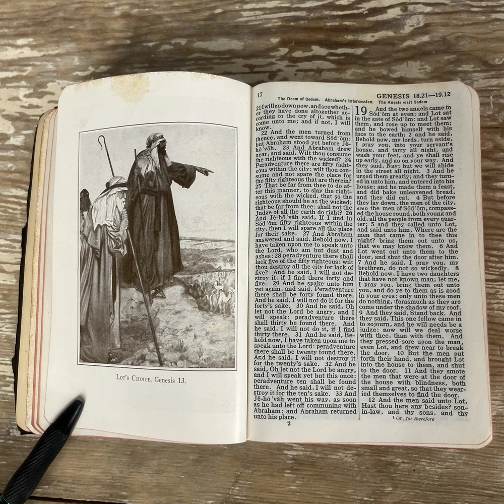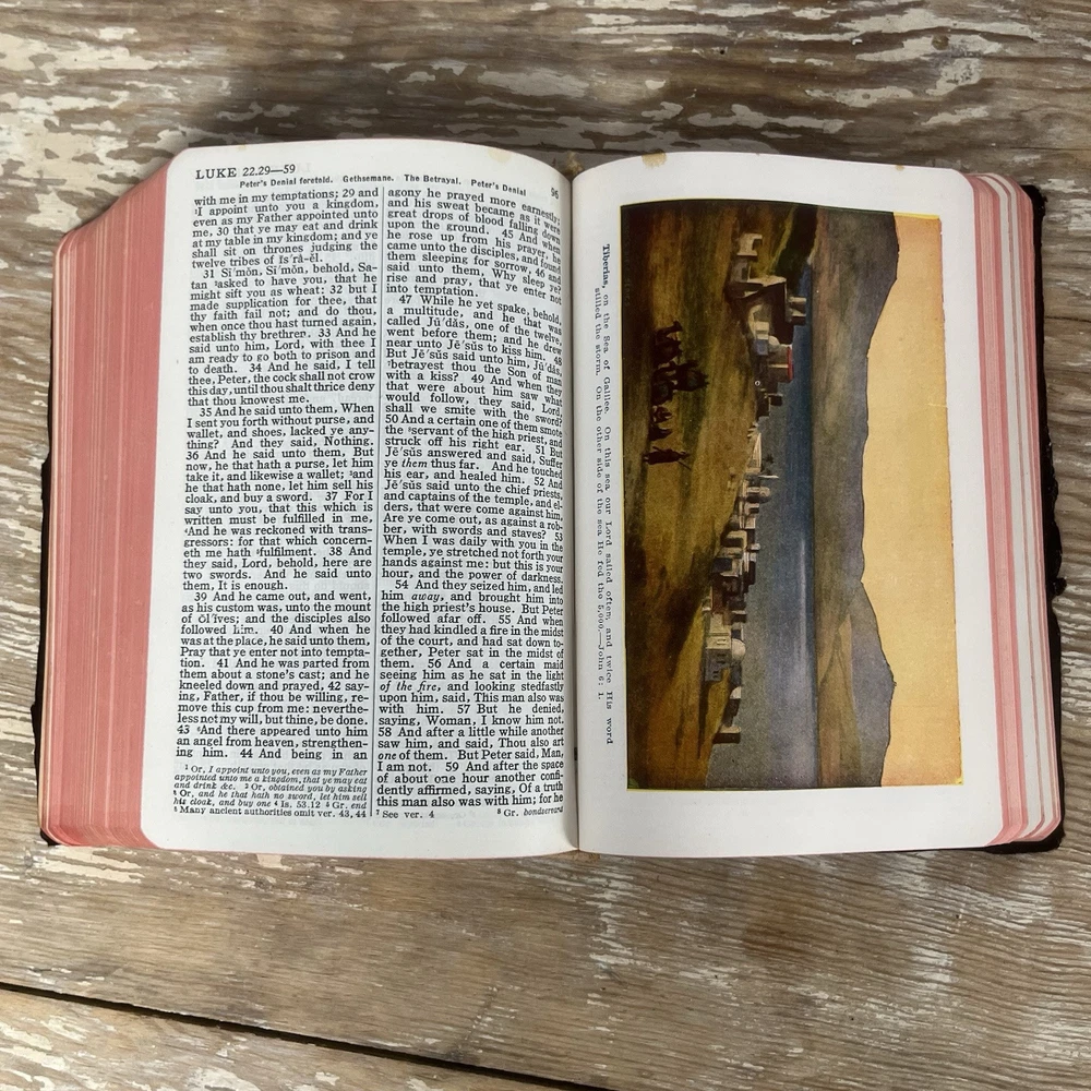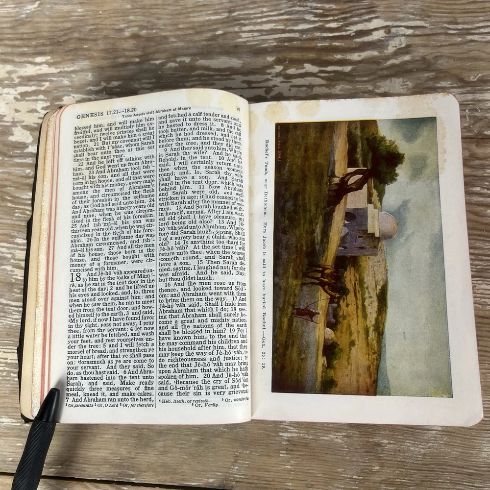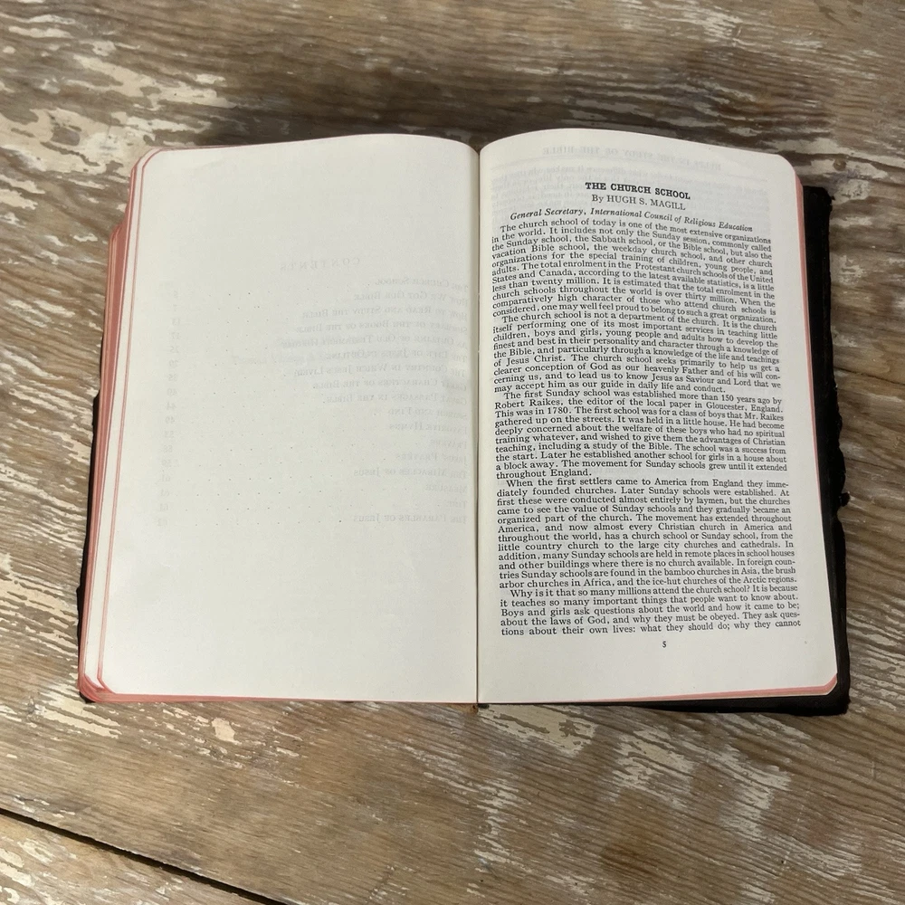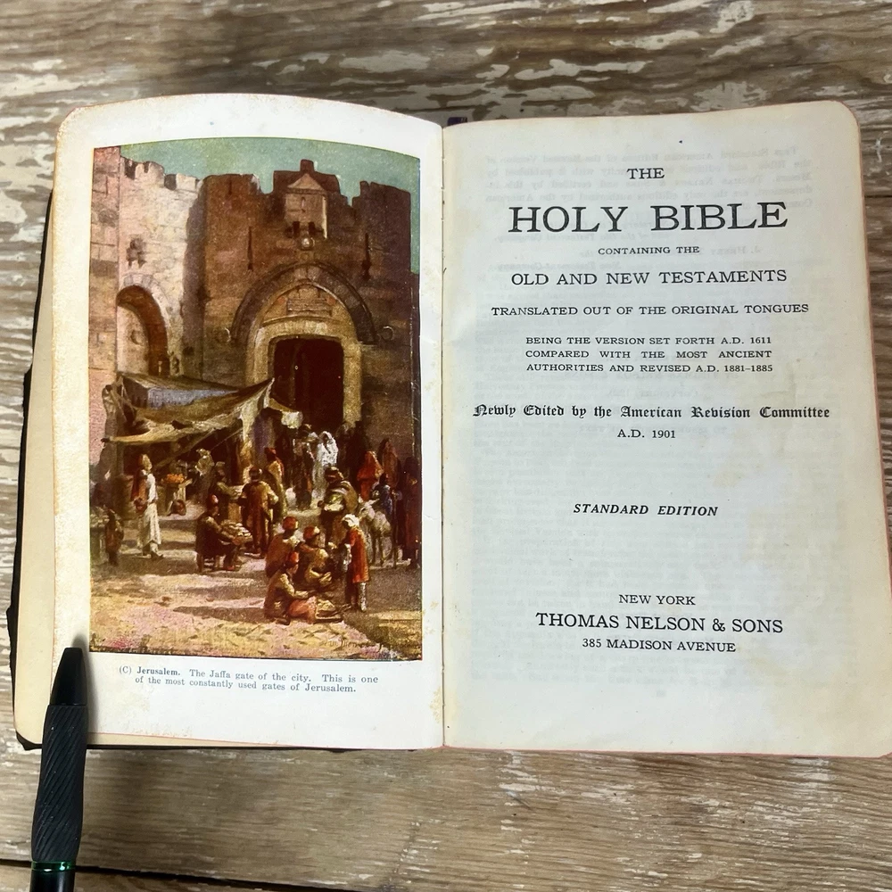 Vtg 1932 Bible With Guide American Standard Version Thomas Nelson Illustrated good vintage condition. Has some yellowing, minor dog ears, some staining. It is inscribed. Cover has some wear, edge wear. Binding is good. spine is good. Some minimal separating of 1st page from spine nice small compact size. Has a good feel in the hand leather cover has that wonderful old book smell 842 pages plus study aids "helps" in the back of 62 pages published by Thomas nelson, Norwood press, Norwood, Connecticut by International Council of Religious Education Standard American Edition of the Revised Version of the Bible Please check photos for condition as they are part of description Fast shipping All reasonable offers considered Please check my store for more fun items to bundle & save, Please msg with questions Thanks!