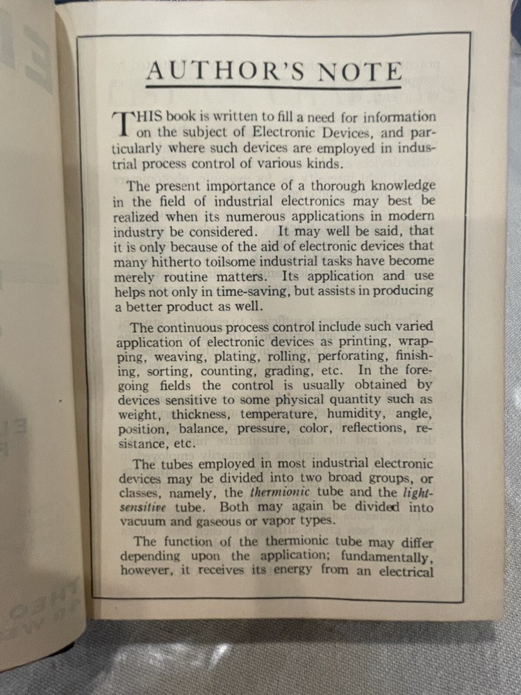 1952 Electronic Devices and thier application by E.P Anderson. Book is in fair condition. All pages and binding is attached.