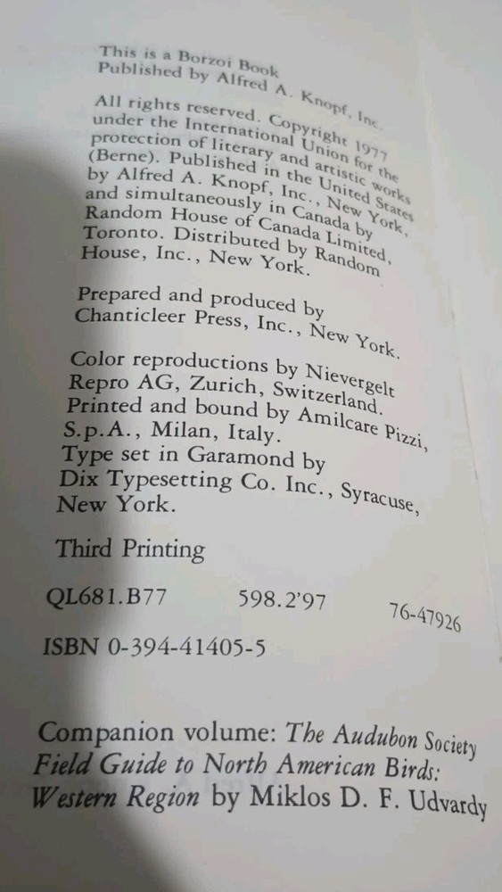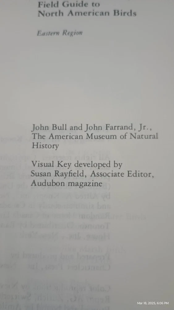 PLEASE LOOK OVER PHOTOS THOROUGHLY AND ASK ANY QUESTIONS BEFORE PURCHASING. Vintage 1977 The Audubon Society Field Guide to North American Birds in the Eastern Region. This faux leather bound book, with 775 pages, features illustrations and provides information on various birds found in the region. Written in English by authors John Bull and John Farrand Jr, this nonfiction guide serves as a valuable resource for birdwatching enthusiasts and those interested in animal and nature topics. It also includes a dust jacket and is intended for an adult audience, providing a comprehensive look at the avian species in the area.
