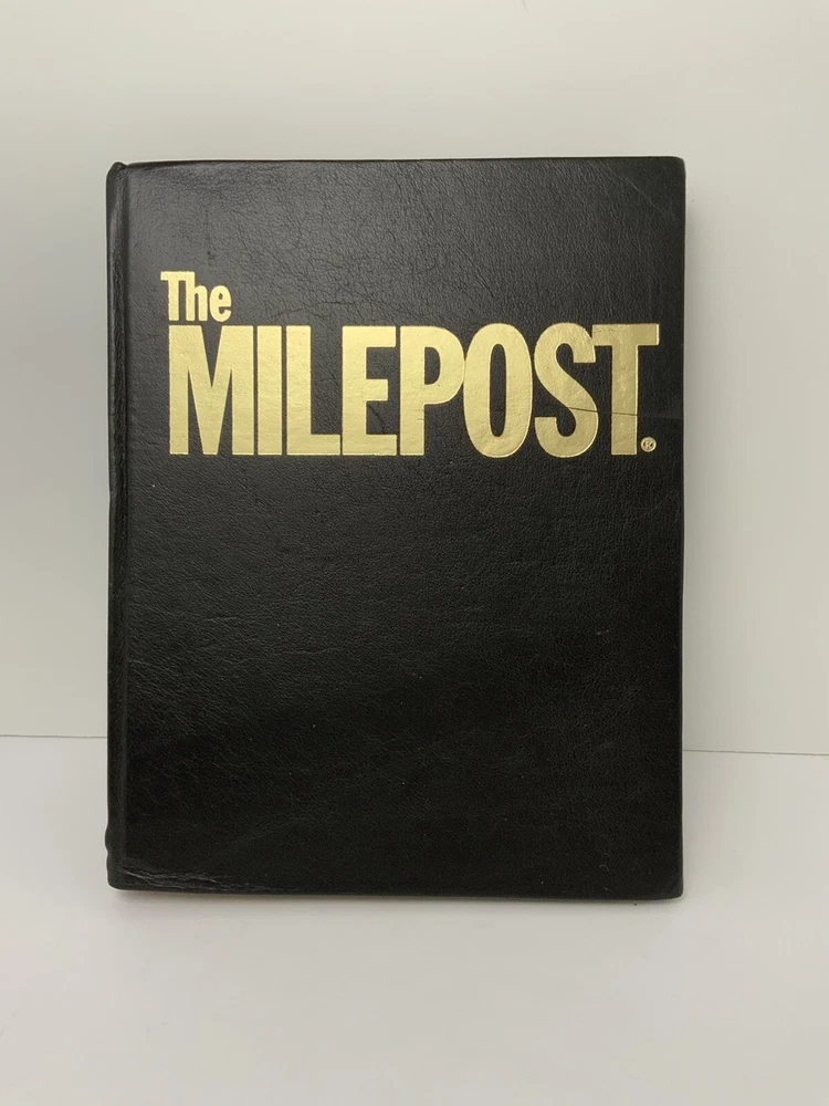 Vintage 50th Anniversary The Milepost Travel Guide. Alaska, Western Canada Reference Book. Black Leather Bound Collectors Edition. Measures approximately 11.25” tall and 8.75” wide. Very good condition. 768 pages.