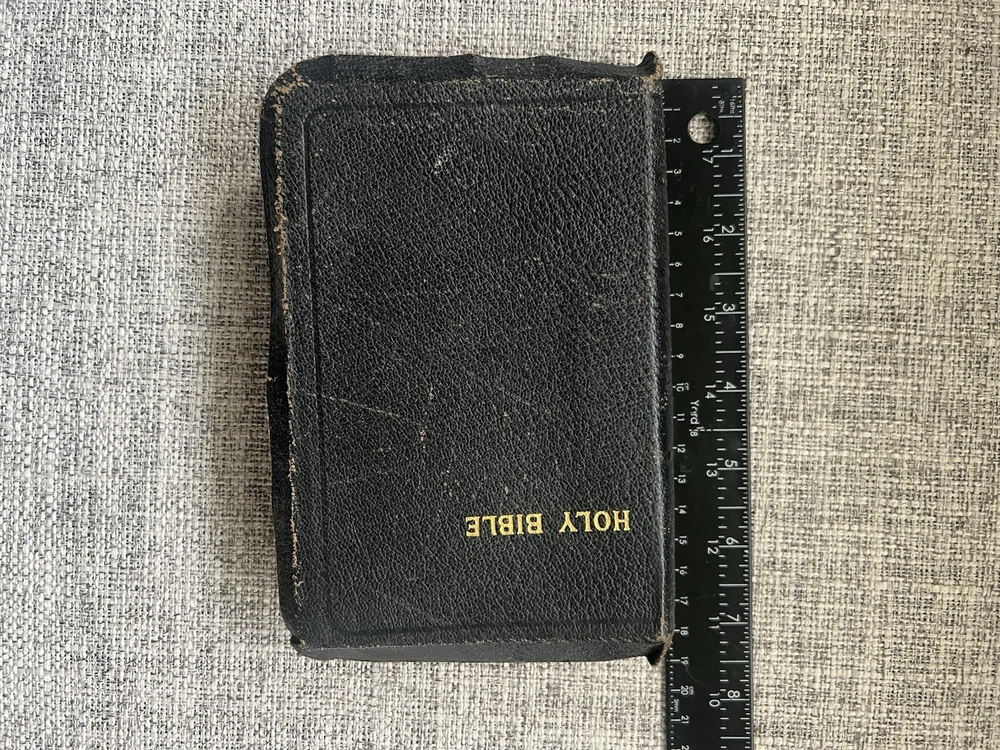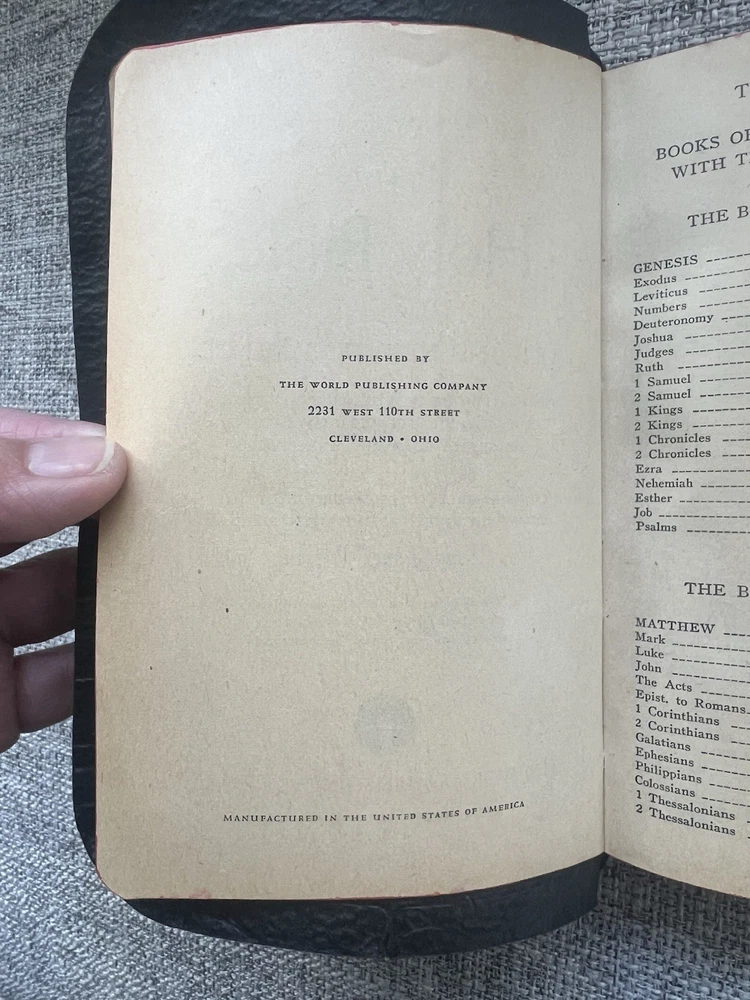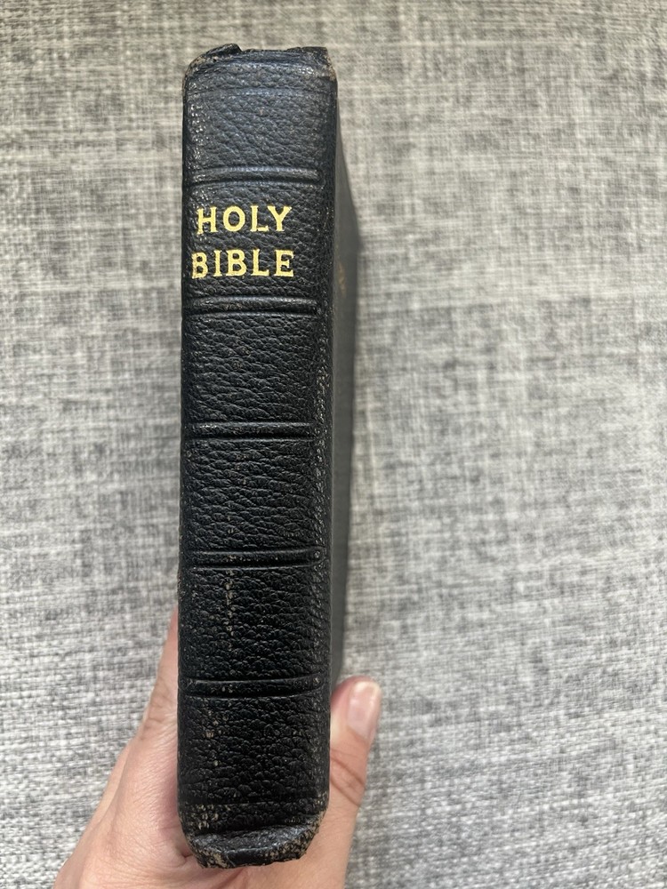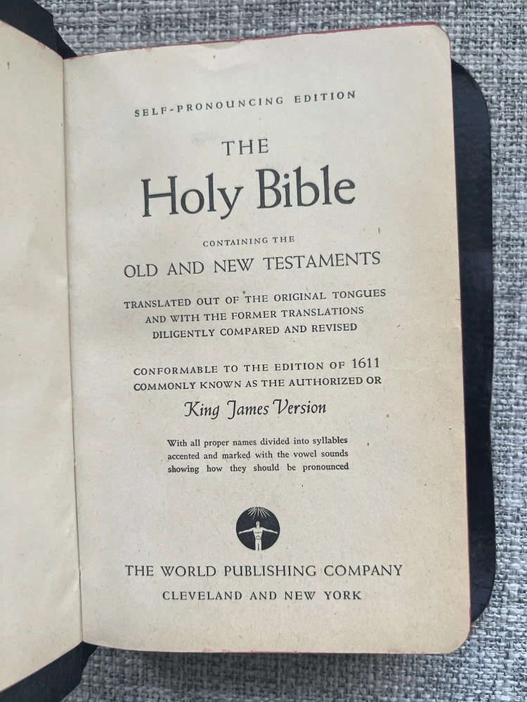 Vtg KJV Holy Bible New Old Text 1930s Black Leather World Publishing Name and date written on inside cover pages. General signs of wear/use for age.
