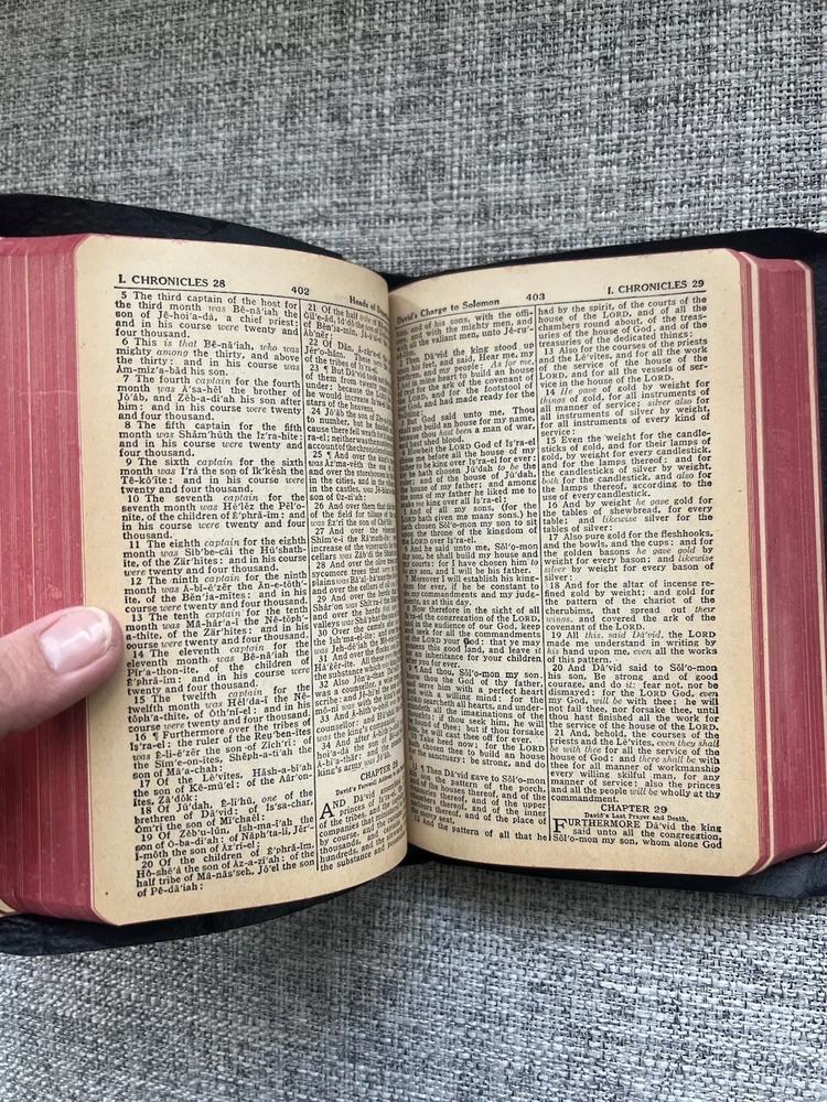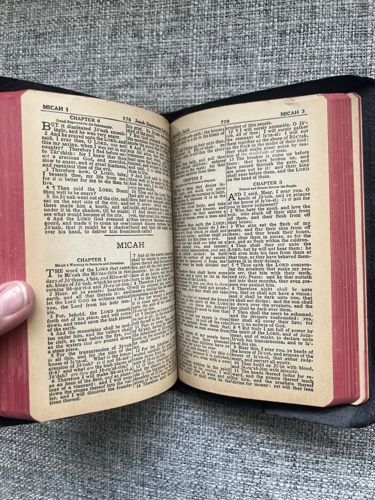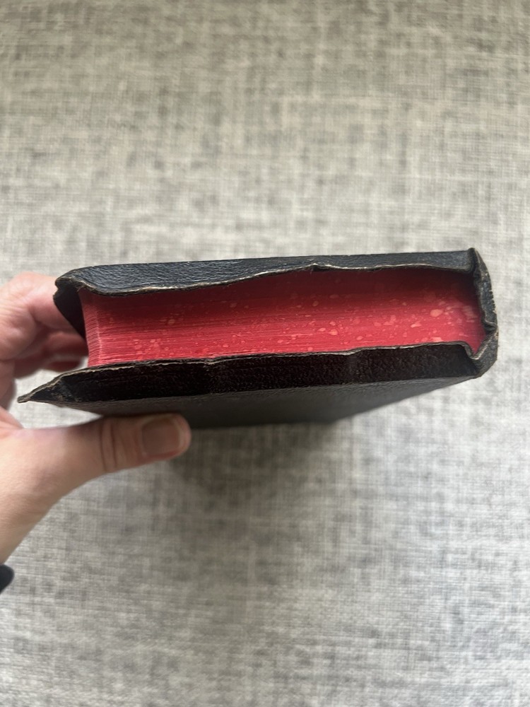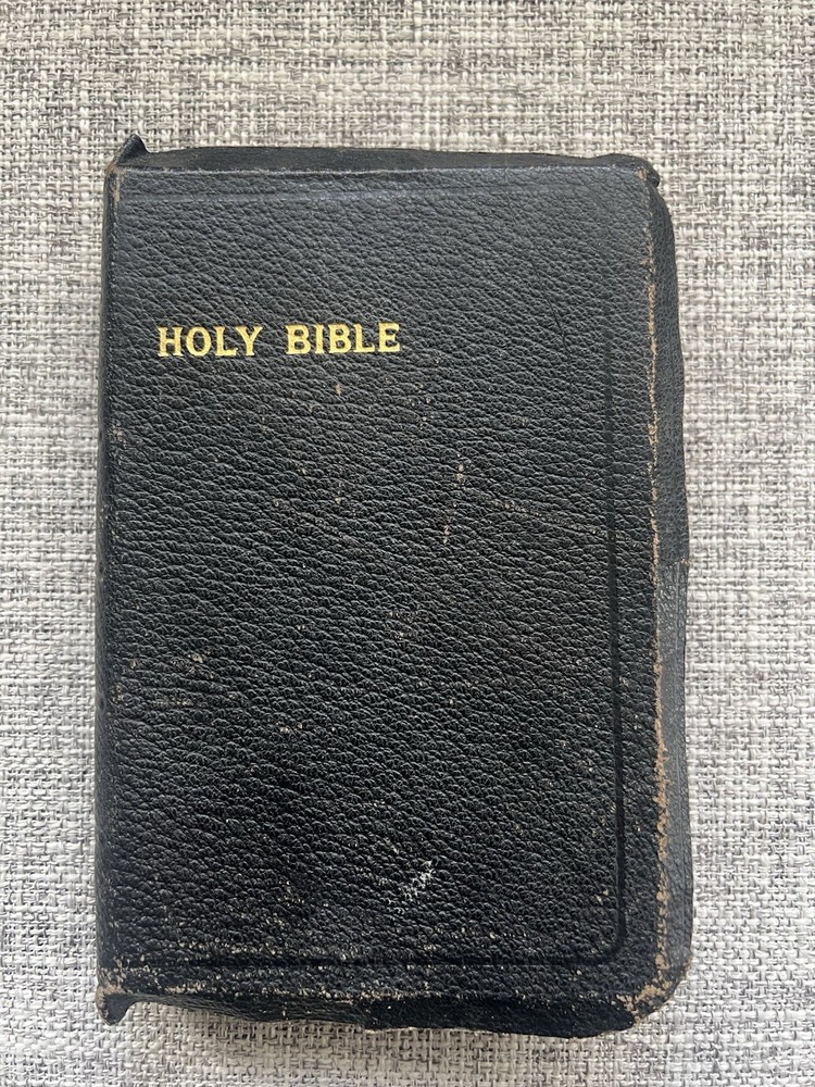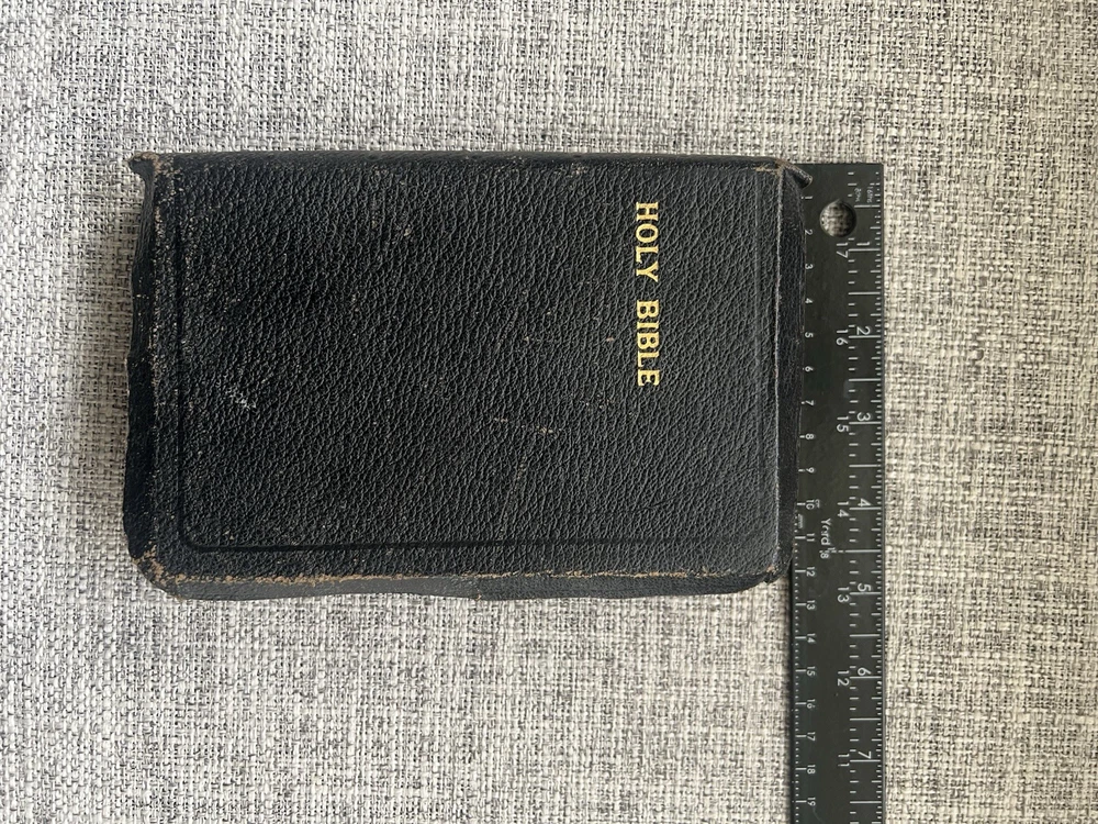 Vtg KJV Holy Bible New Old Text 1930s Black Leather World Publishing Name and date written on inside cover pages. General signs of wear/use for age.