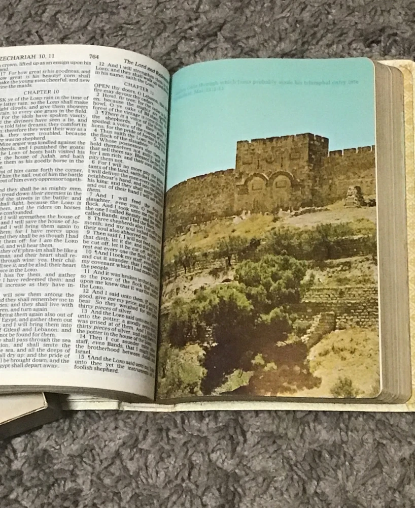 Vtg. Nelson Study Bible 1970 White Concordance Dictionary w/Box. The Bible is in nice shape, the cover shows some wear but the inside in very nice.