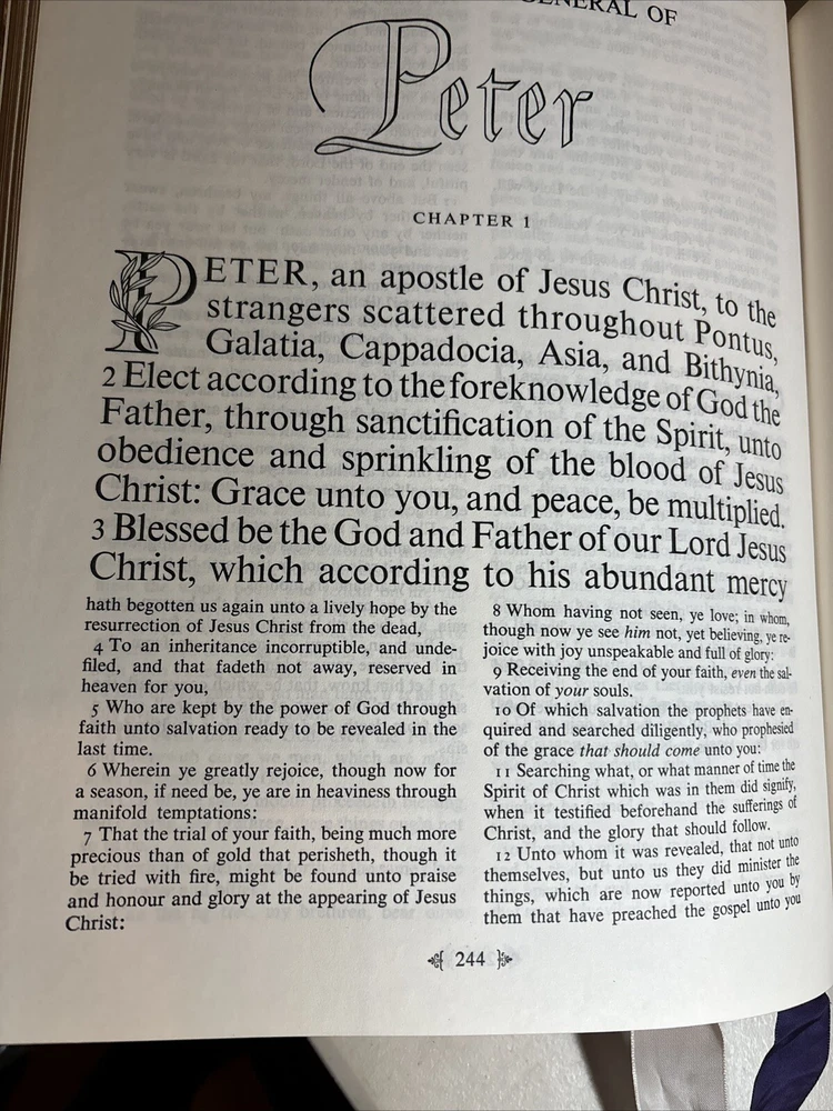 See pictures it counts as the description. This Bible is not perfect large print never written in check binding.