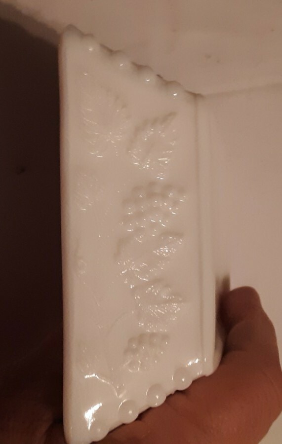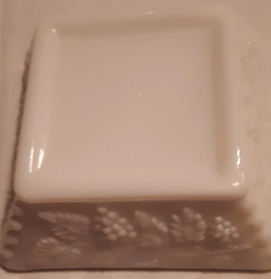 This vintage Westmoreland milkglass ash tray features a grape pattern. It is categorized as a tobacco jar and would be a charming addition to any tobacciana collection. The item is not handmade or modified, and there is no California Prop 65 warning associated with it.
