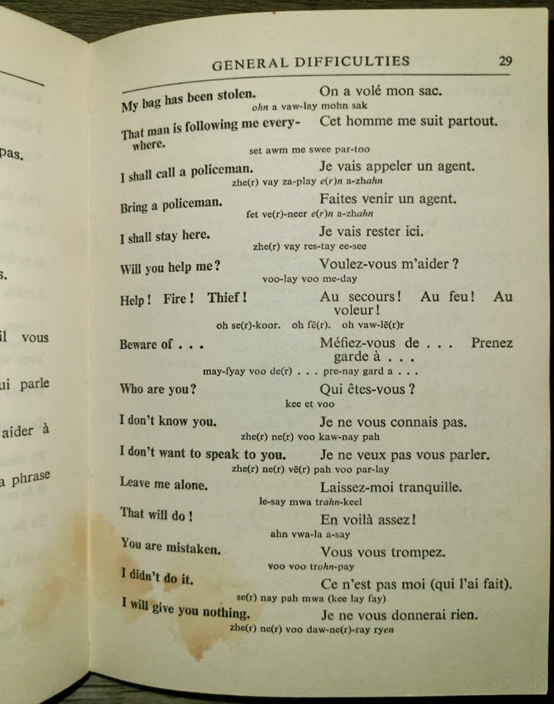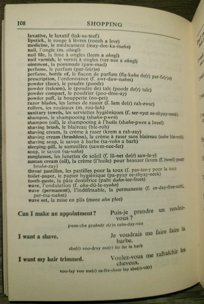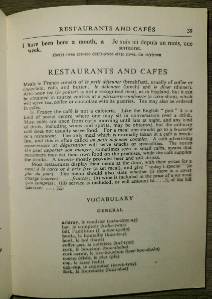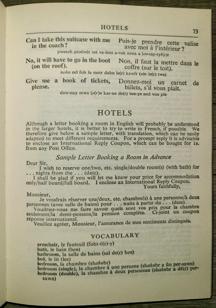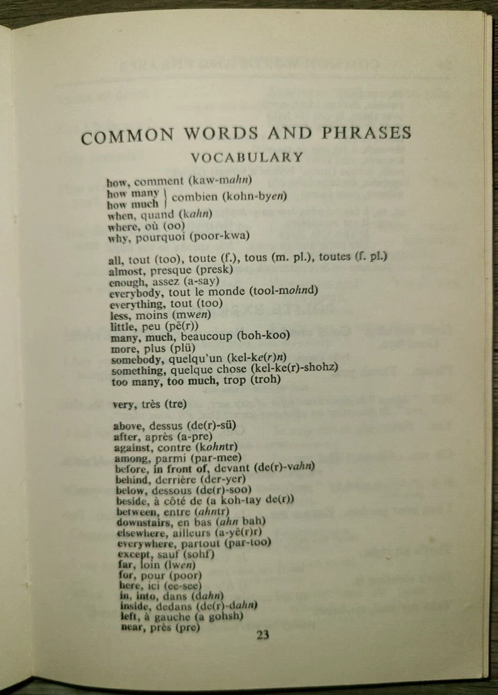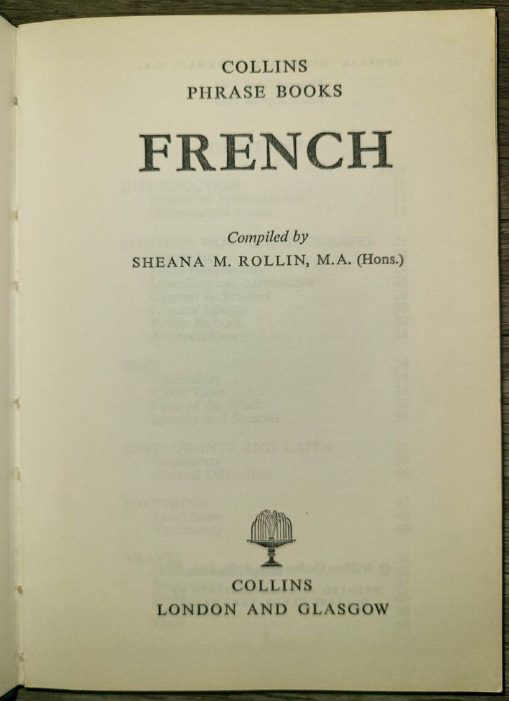 Vintage leatherbound book , Collins Phrase Books - French by Sheana M. Rollin, 1963. Published by Collins, London. Measures 4 1/4" x 6 1/8". Minor wear as shown in photos. Sent to you from my smoke and pet free household in the US. No returns except in cases of incorrect info (I do my best to list all defects clearly, but I do occasionally miss things). Please see my other listings - now with FREE domestic shipping on all items! Please note that all my orders ship within ONE business day after payment is received (no Saturday shipping).