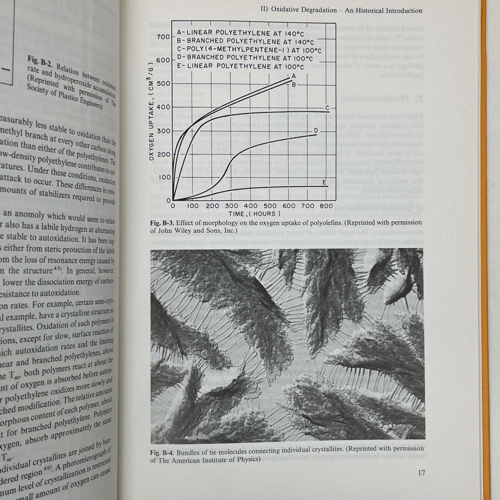 POLYMER DEGRADATION AND STABILIZATION Author: W. Lincoln Hawkins Title: POLYMER DEGRADATION AND STABILIZATION Publication: US: Springer Verlag, 1984 Description: Hardcover. Very Good / No DJ. Pages are clean and unmarked. Binding is square and tight. Orange boards are lightly soiled, scuffed and rubbed, with wear to edges - small dents, scuffing at spine ends and corners. Text block is foxed and soiled. No dust jacket. Seller ID: 50111 Subject: Science Atlanta Vintage Books has been serving our community of book lovers for over 30 years. We specialize in used, new, collectible, and vintage books. Terms All orders ship within two business days. All items are guaranteed to be as described or they may be returned within 30 days of receipt for a full refund. This listing was created by Bibliopolis.