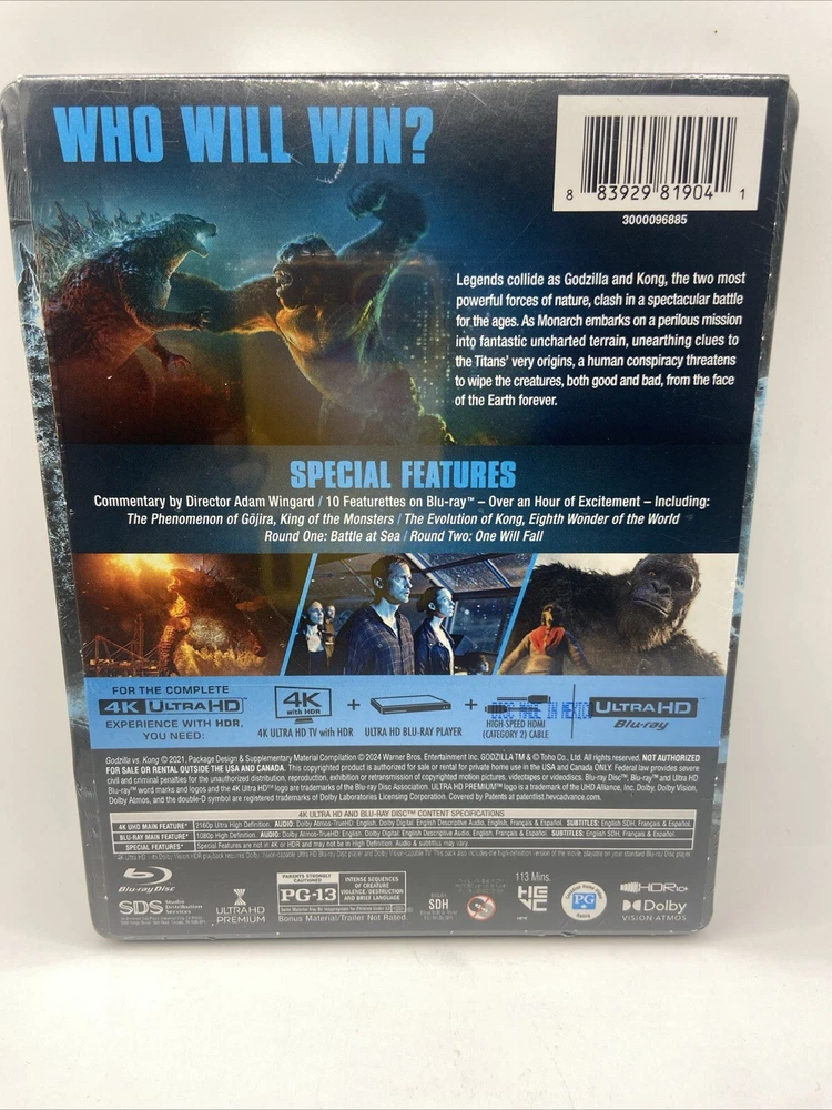 Experience the ultimate battle between two legendary monsters in the Warner Bros. Godzilla vs. Kong Steelbook edition. This 4K Ultra HD + Blu-ray set features an interactive experience that will transport you to the world of these iconic creatures. The steelbook design is sleek and durable, making it a must-have for any collector. This edition is perfect for fans of the Godzilla and Kong franchises, as well as those who appreciate high-quality video and audio formats. The features include a variety of aspects such as format, studio, and edition, making this set a unique addition to any movie or TV collection. Get ready to witness the battle of a lifetime with Godzilla vs. Kong Steelbook.