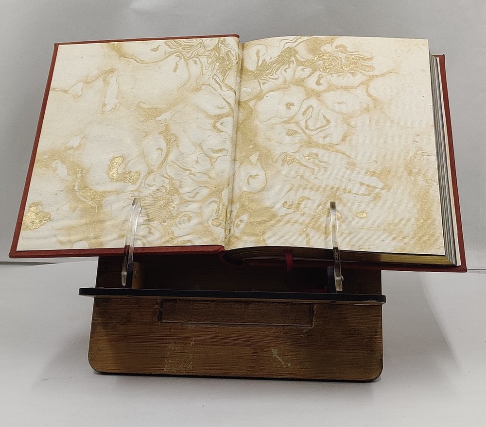 Absolutely PERFECT transaction! I ordered this book mid April, and when I hadn't seen any activity for a few days I decided to contact the seller (normally items paid are usually shipped within 2-3 days and this was going a week, so it raised a red flag). Due to my own ignorance, I was reassured immediately that the book's cover was being hand crafted and would take time, explaining the extra time. Long story short, this was worth the wait!Very responsive seller, HIGHLY recommended. THANK YOU!