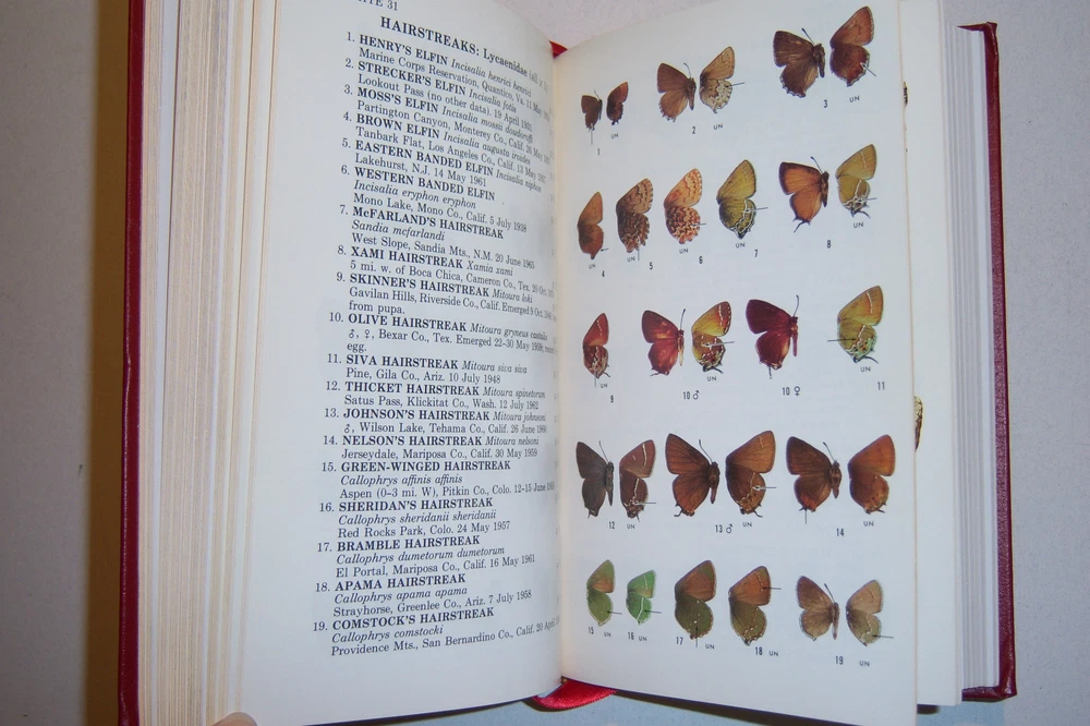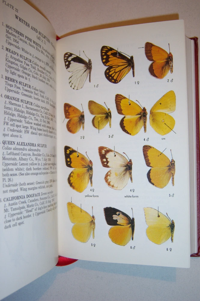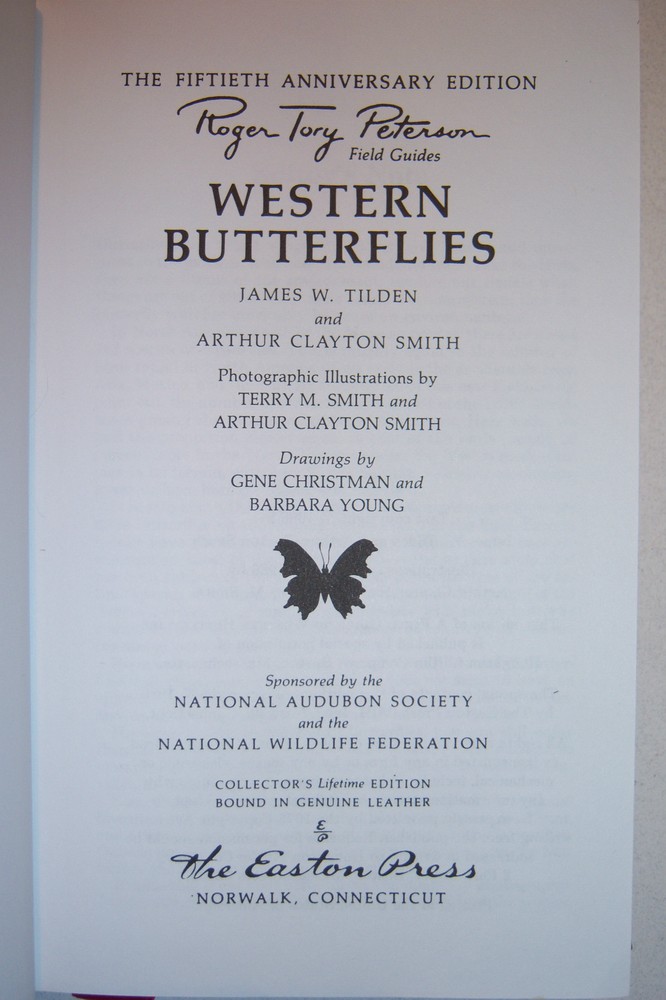 The Fiftieth Anniversary Edition Roger Tory Peterson Field Guides. WESTERN BUTTERFLIES James W. Tilden and Arthur Clayton Smith. Photographic Illustrations by Terry M. Smith and Arthur Clayton Smith. Drawings by Gene Christman and Barbara Young. Sponsored by the National Audubon Society and National Wildlife Federation. Collector's Lifetime Edition Bound in Genuine Leather The Easton Press. Norwalk, Connecticut. 1986 Book measures approx. 4 7/8" x 7 1/2" x 1 1/8" Page quality is very good throughout the book and they are supple and clean. Binding is tight and square. Embossed gilt titles and spine and front cover. Corners slightly bumped. Very colorful illustrations. Book is in a very nice condition. Includes Easton Press bookplate. Visit our ebay store for hundreds more antiquarian books, Vintage Comic Books, Original comic artworks, signed pieces of memorabilia and many more unique items. WE ALWAYS COMBINE SHIPPING ON LIKE ITEMS. You can request an invoice to pay from with reduced shipping on it OR you can just pay, and we will refund excess postage when we print the shipping label.