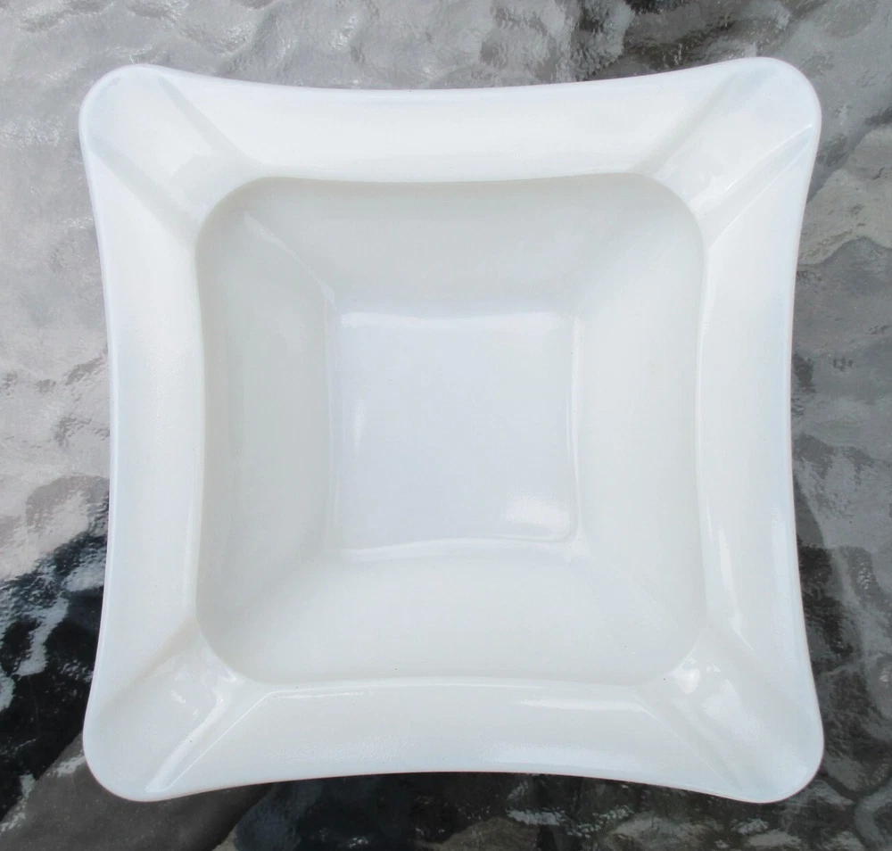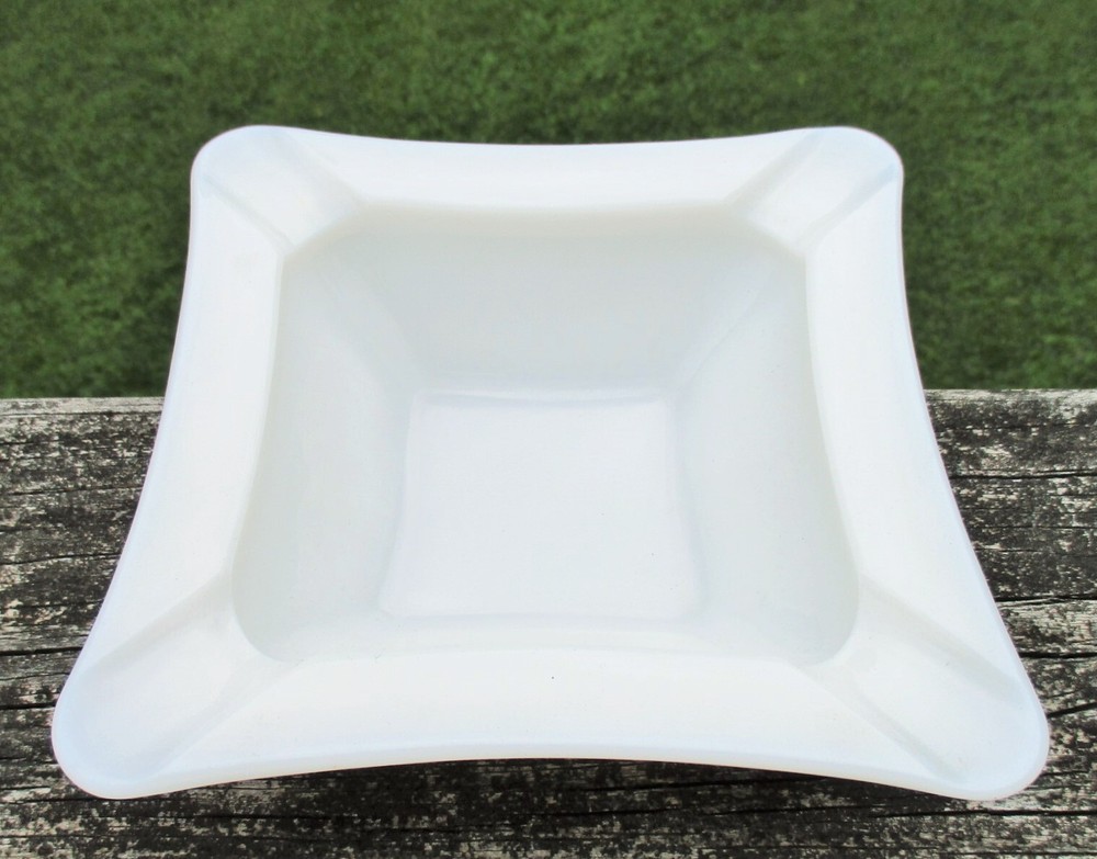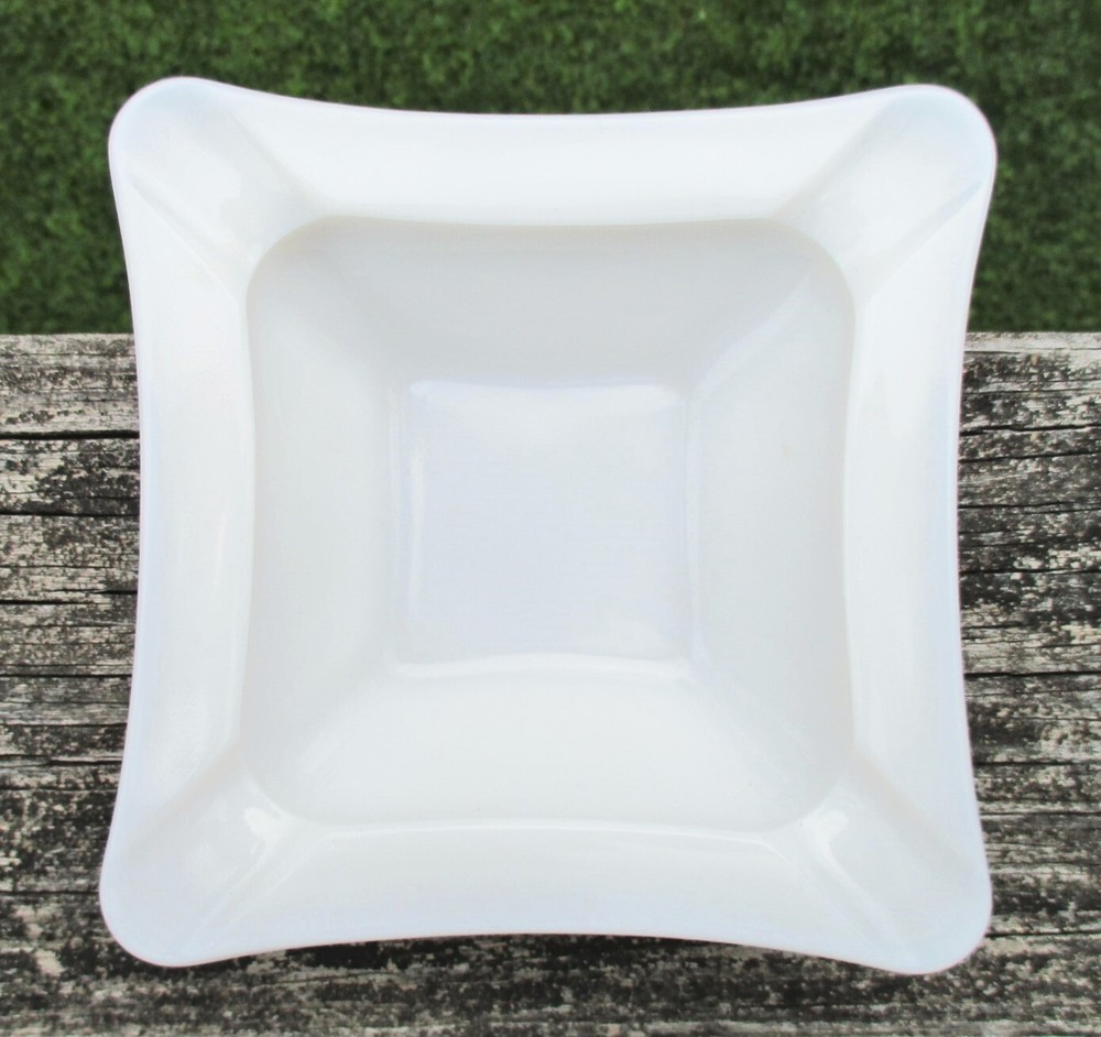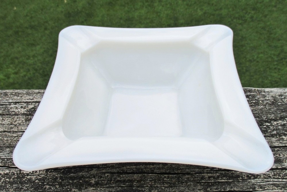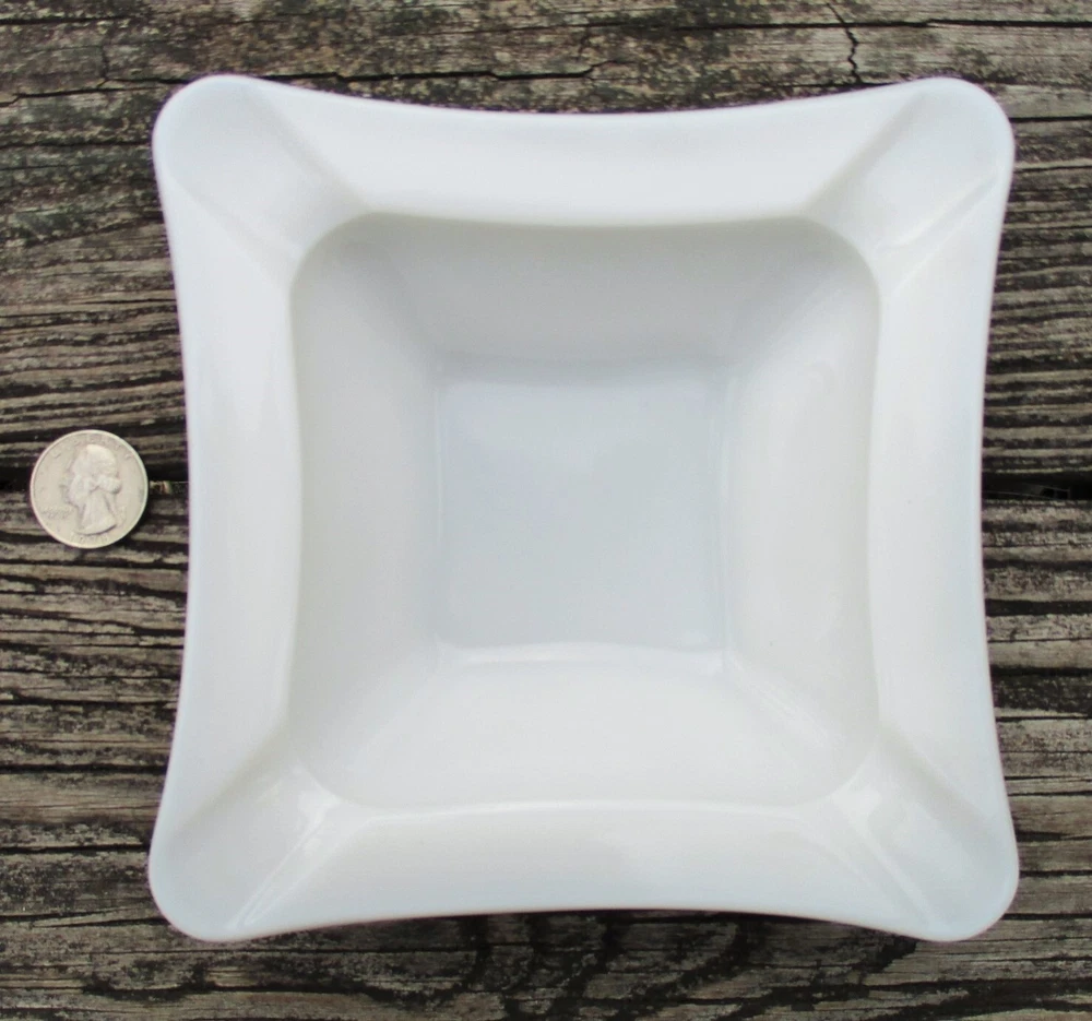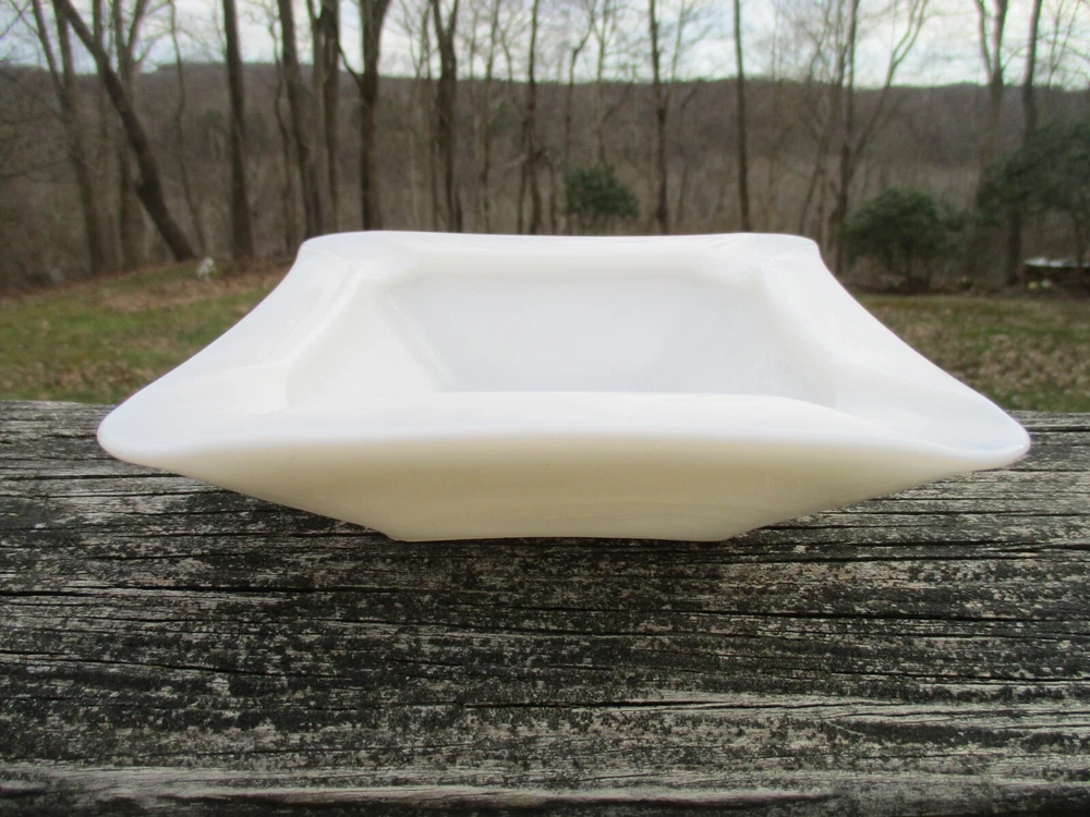 Westmoreland Square Milk Glass Ashtray 5 3/4" One milk glass ashtray. Square with curved sides. 4 corner rests. Measures 5 3/4" square and 1 1/2" high at edge. No chips or cracks. Clean and shiny! Some straw marks typical of this glass type. Please view and enlarge all photos for further details. Auction is for one, both are in one image to show that they match as a pair if interested in both . Thank you for looking!