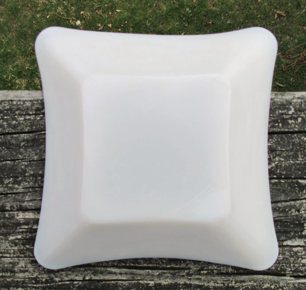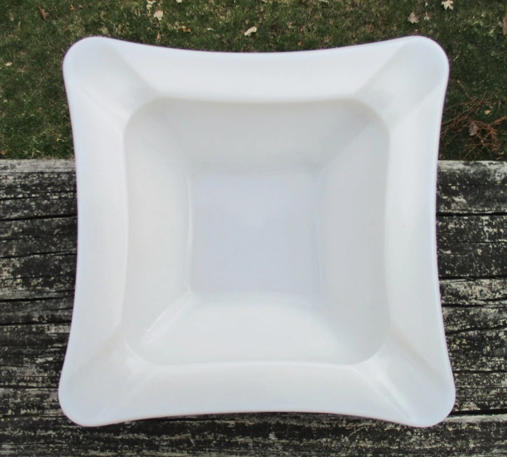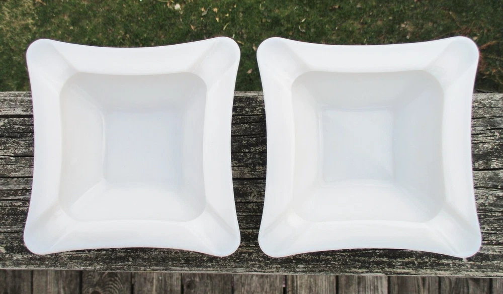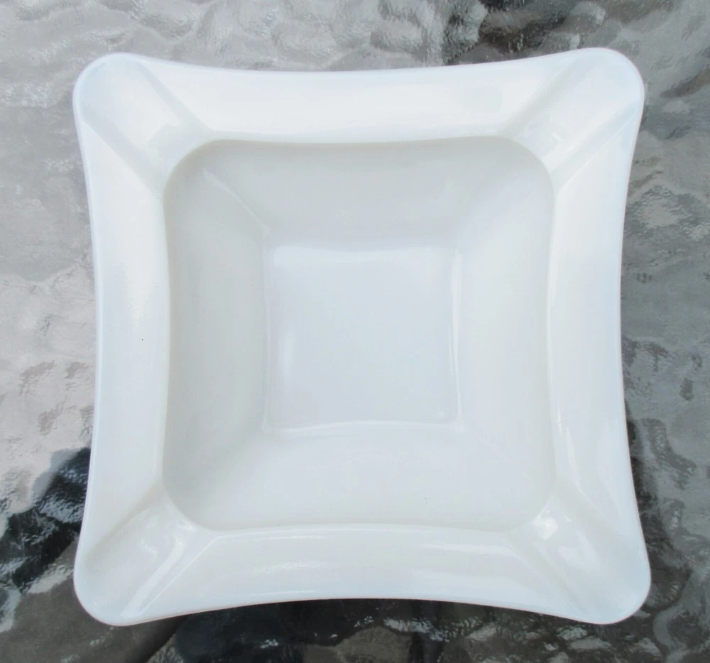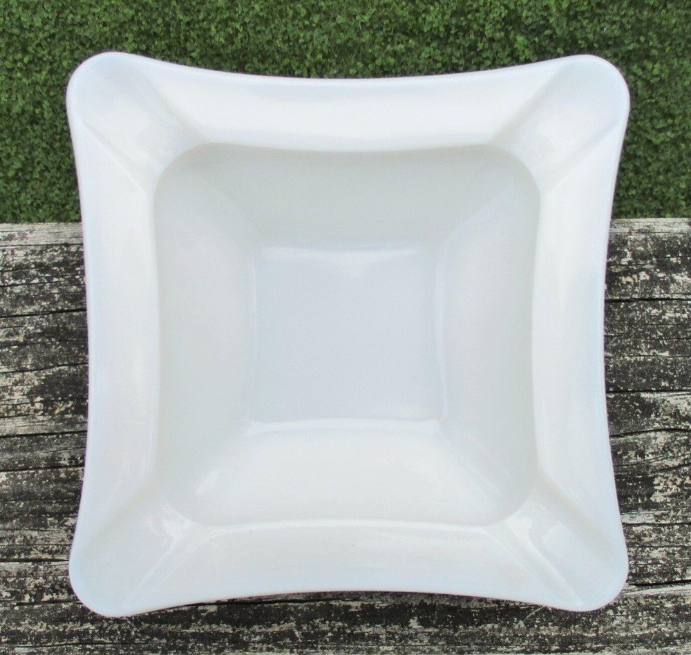 Westmoreland Square Milk Glass Ashtray 5 3/4" One milk glass ashtray. Square with curved sides. 4 corner rests. Measures 5 3/4" square and 1 1/2" high at edge. No chips or cracks. Clean and shiny! Some straw marks typical of this glass type. Please view and enlarge all photos for further details. Auction is for one, both are in one image to show that they match as a pair if interested in both . Thank you for looking!