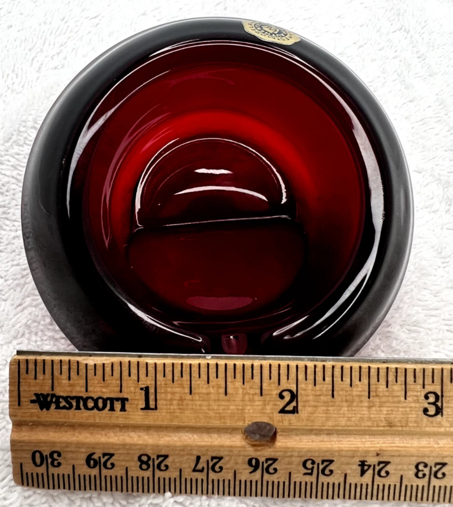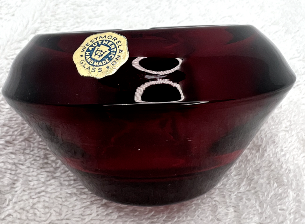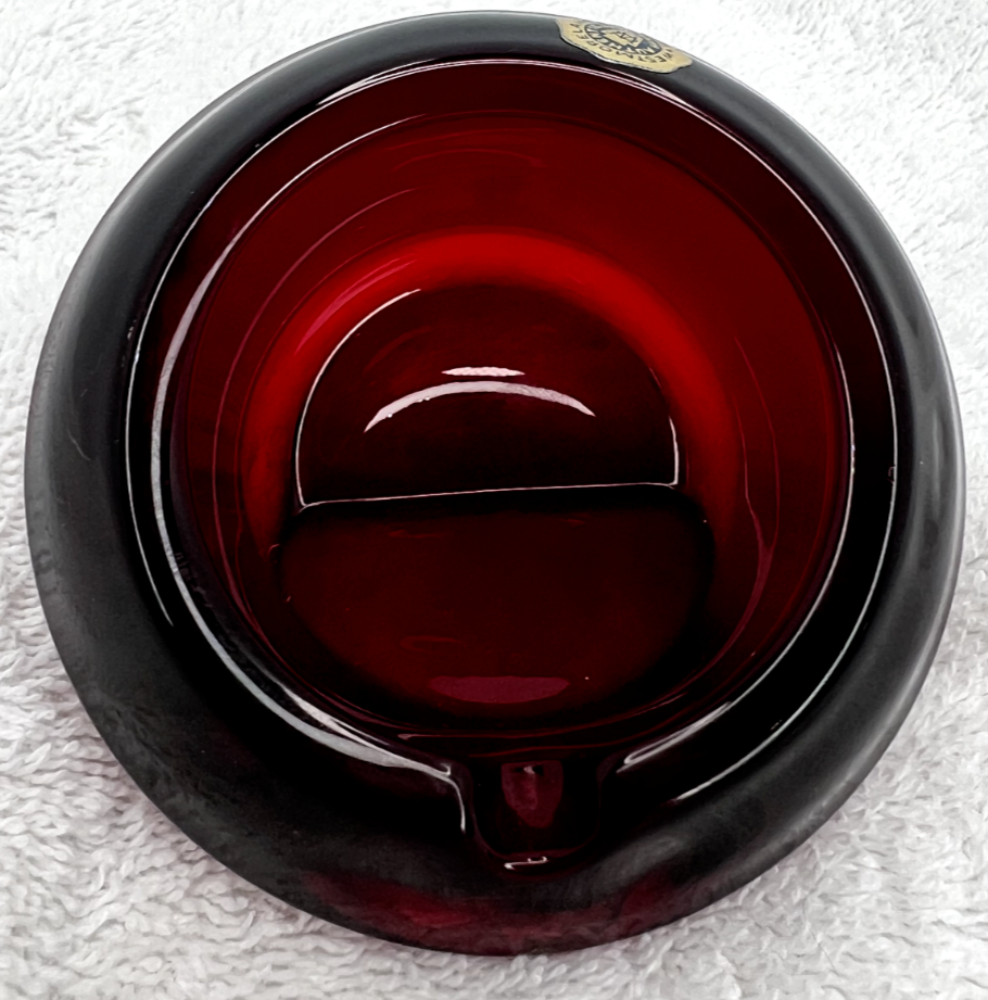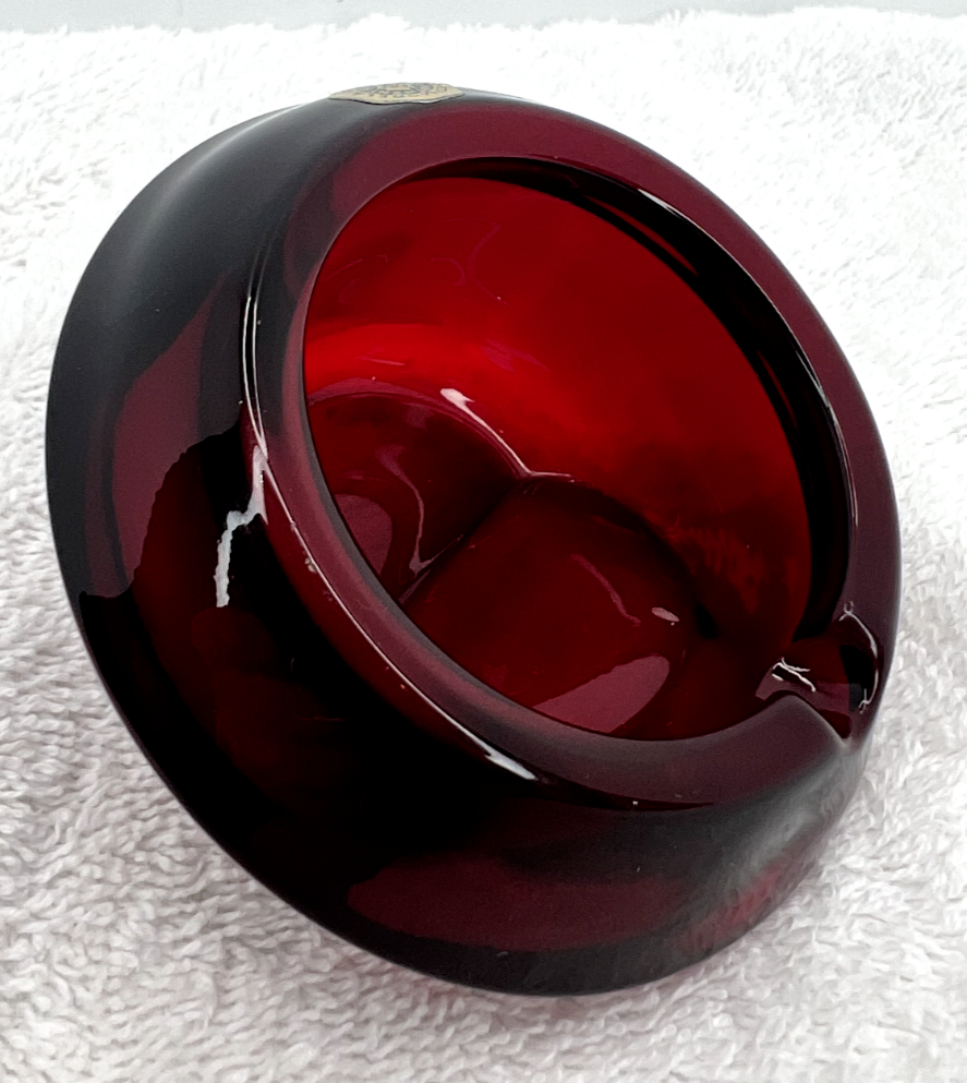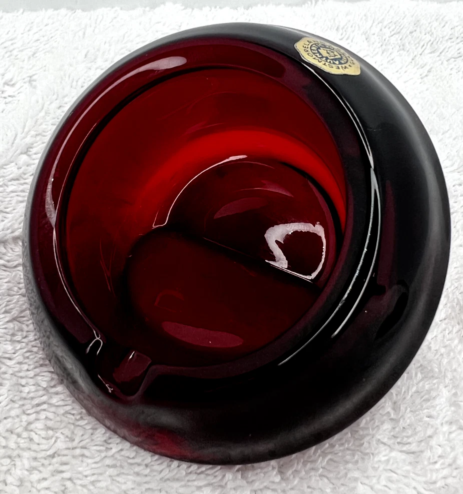 Westmoreland Glass Ruby Red Orb Ashtray 1960s Atomic Era Ashtray Set Circa 1950’s to 1960’s Ashtray by Westmoreland Glass, USA. Personal size orb ashtrays in ruby red made with quality vintage glass. They look like little spaceship. Made during the race to space era. Weighs 1/2 lb and measure 3.5″ round and 2.5″ tall. Fit comfortably in palm of hand. All in excellent condition. The ruby ashtray retains the original Westmoreland Glass label. Very nice condition - no chips or cracks noted. See photos for final condition. ===================== All sales are final. Returns are not accepted unless required by E-Bay policy - please review descriptions and condition before ordering. If you have any questions on an item, please send us a message. All items will be shipped per EBay policy, but usually within 2 days, if not sooner. Thank you for reviewing of our items. Please visit our Ebay store for more interesting collectables Star-Brite Collectables
