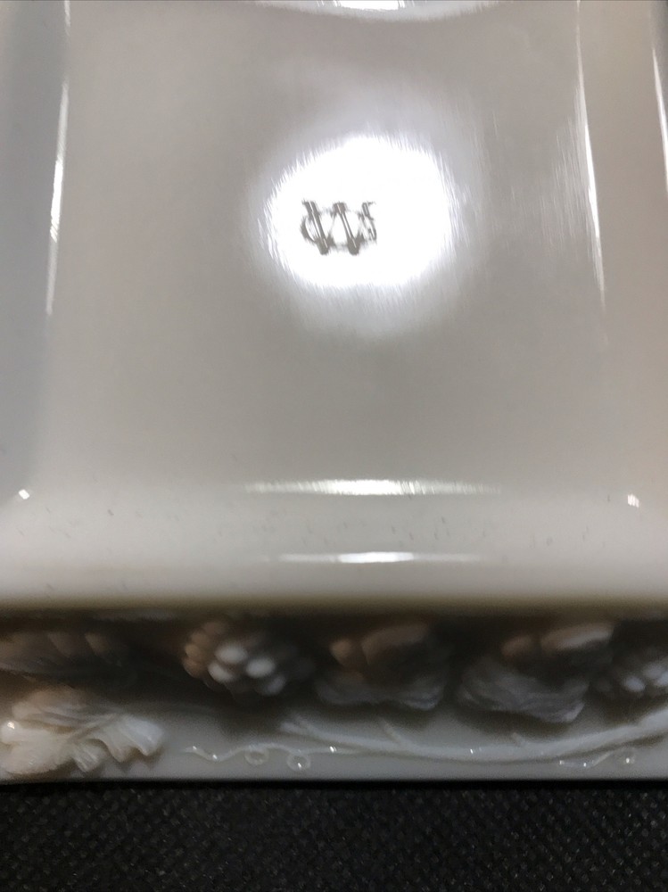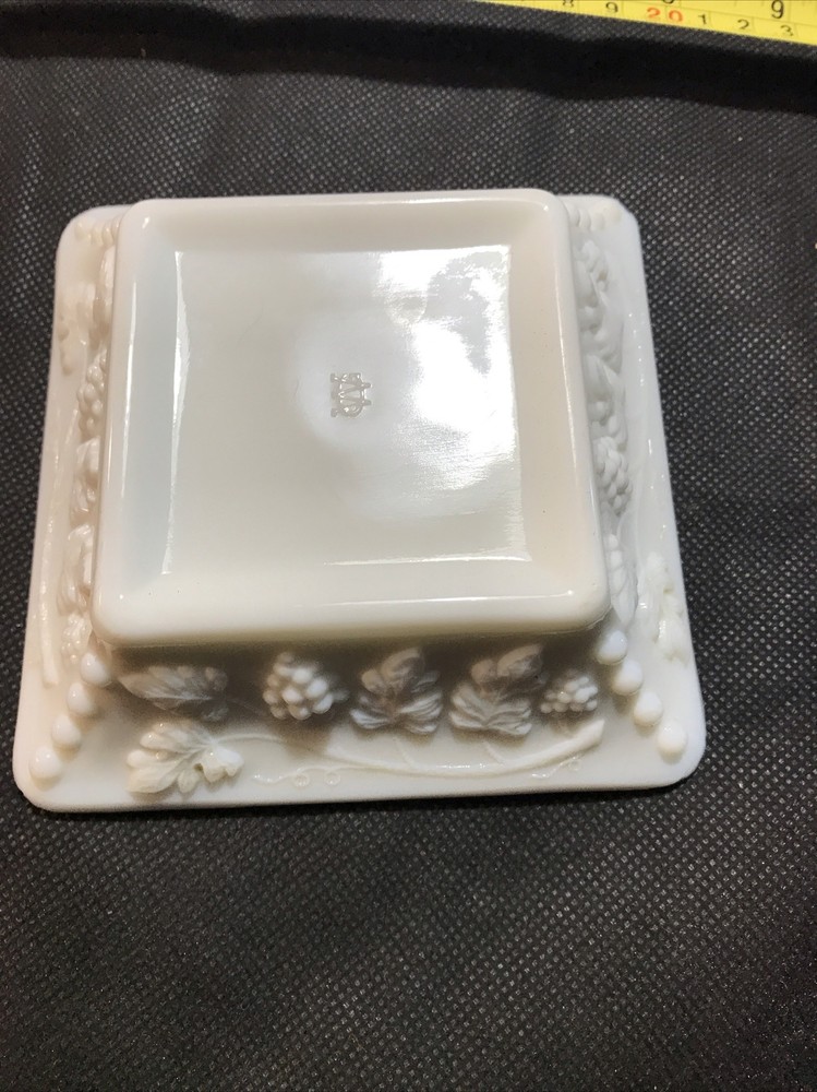 This vintage Westmoreland milk glass ashtray is a beautiful addition to any Mid-Century Modern decor. Made in the United States, this paneled grape patterned ashtray is crafted from high-quality glass with an impressed backstamp. The white color of the glass complements any room's color scheme and the ashtray is perfect for any smoker in your life. The brand, Westmoreland, is known for creating high-quality glassware that stands the test of time. Don't miss out on your chance to own this stunning piece!