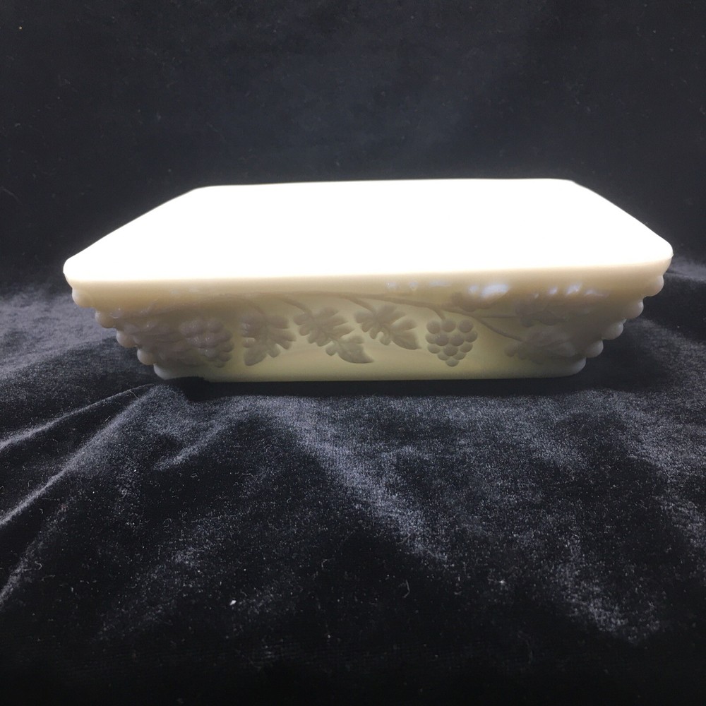 Has a chip on one of the corners right where the cigarette would sit. Westmoreland Milk Glass Cigarette/Joint Ashtray Grape Leaves 5" Vintage 1970’s....