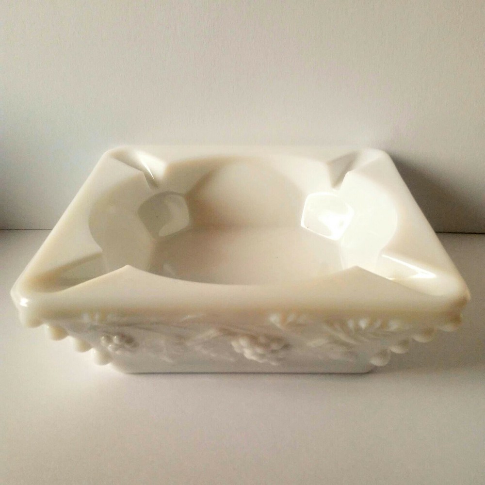 Westmoreland Milk Glass Grape Pattern Ash Tray. 4" across. Shipped with USPS Priority Mail.