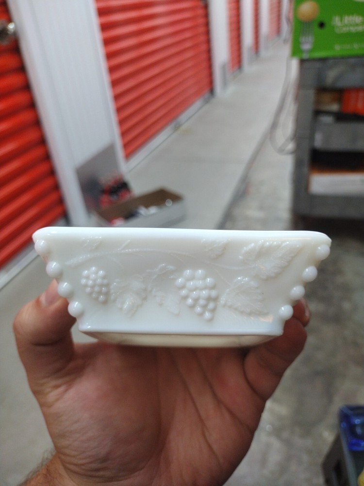Westmoreland Milk Glass Opaque White Beaded Paneled Grape 4" Ashtray Ash Tray....